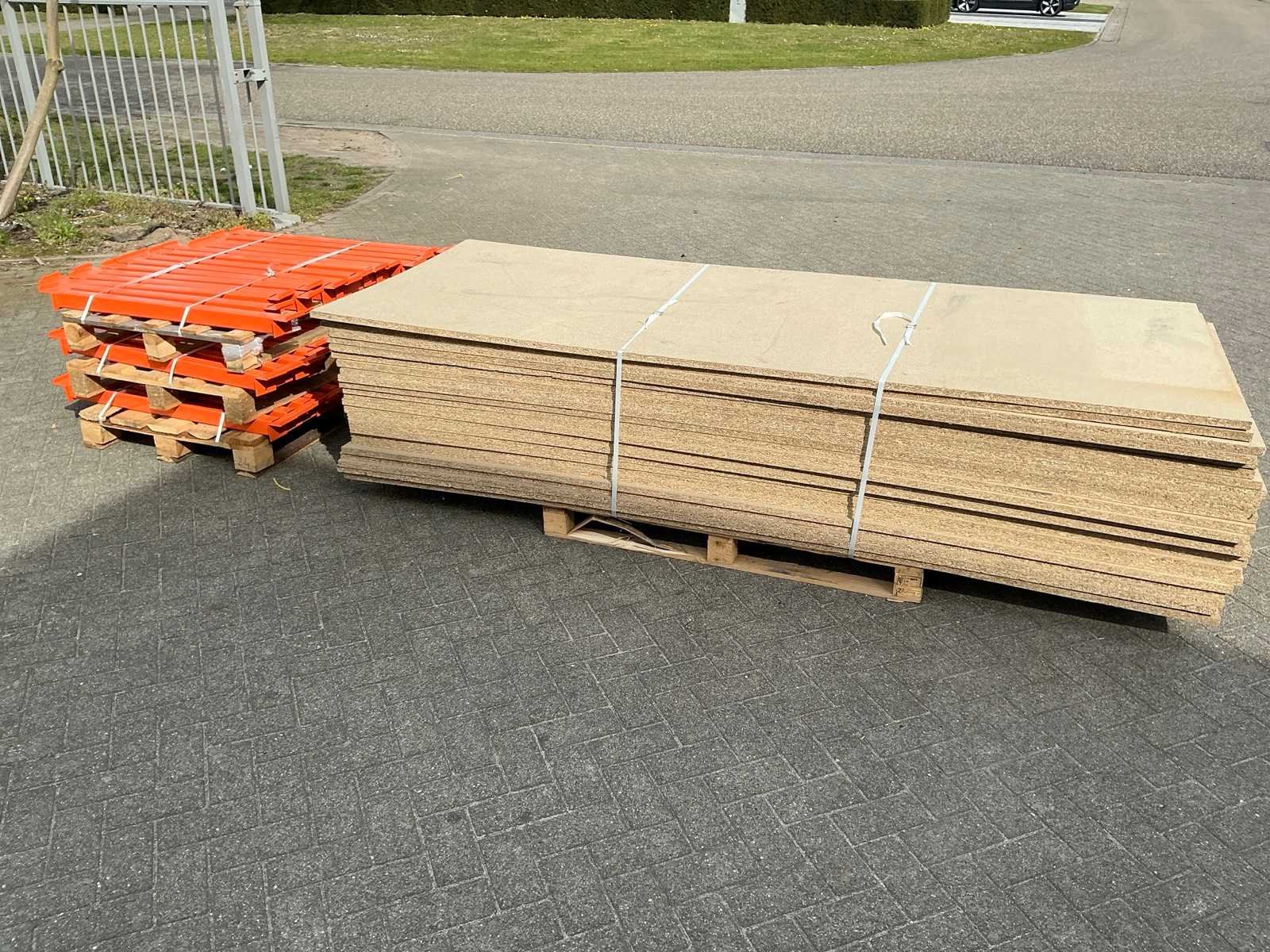 16 legplanken 268x110cm. 32 tussenleggers 111,5cm.