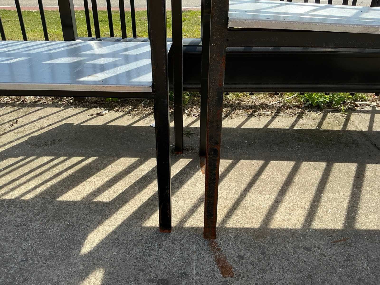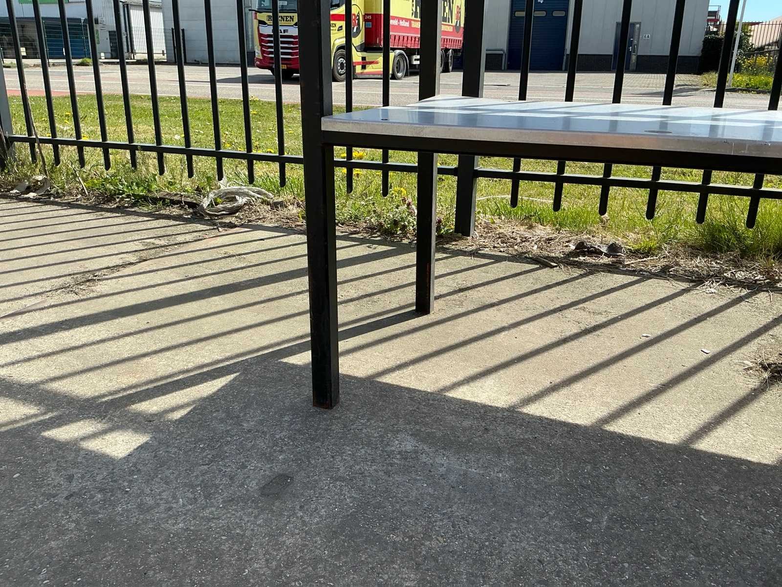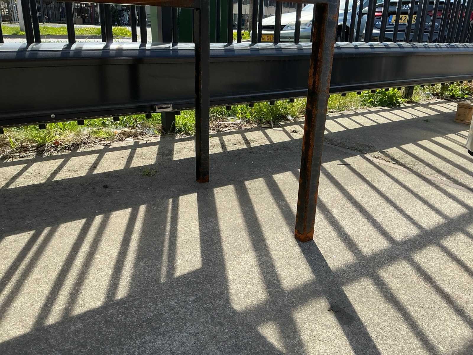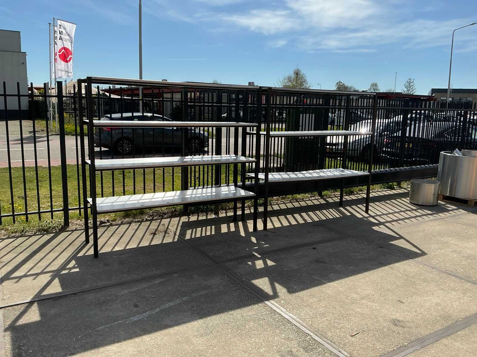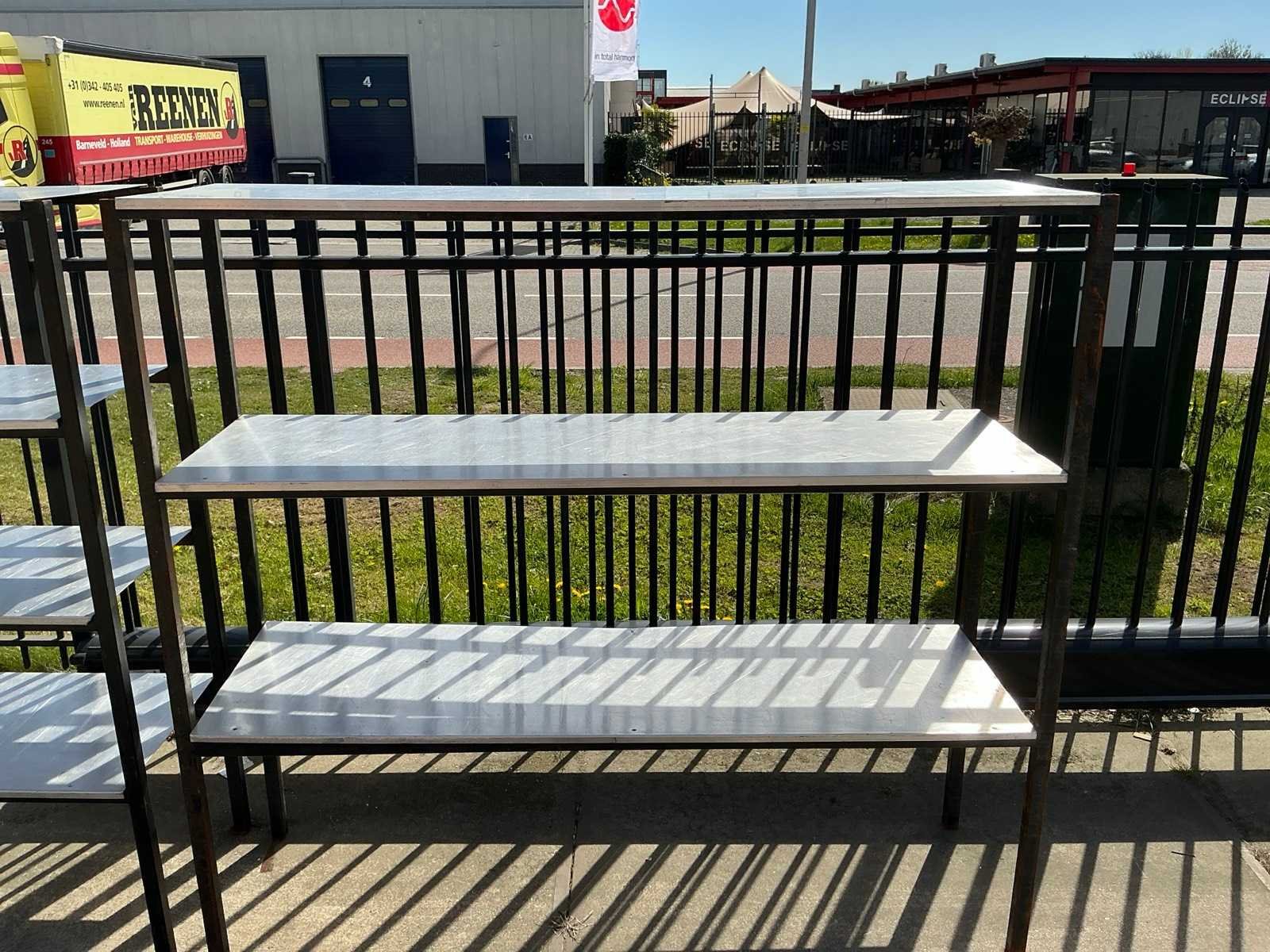 1 blad zit los, stalen poten zijn verroest Sectie afm. b: 2080mm Sectie diepte: 575mm Sectie afm. h: 1900mm Aantal legborden: 7 Materiaal: Staal,IJzer Lengte: 57.5cm Breedte: 208cm Hoogte: 190cm