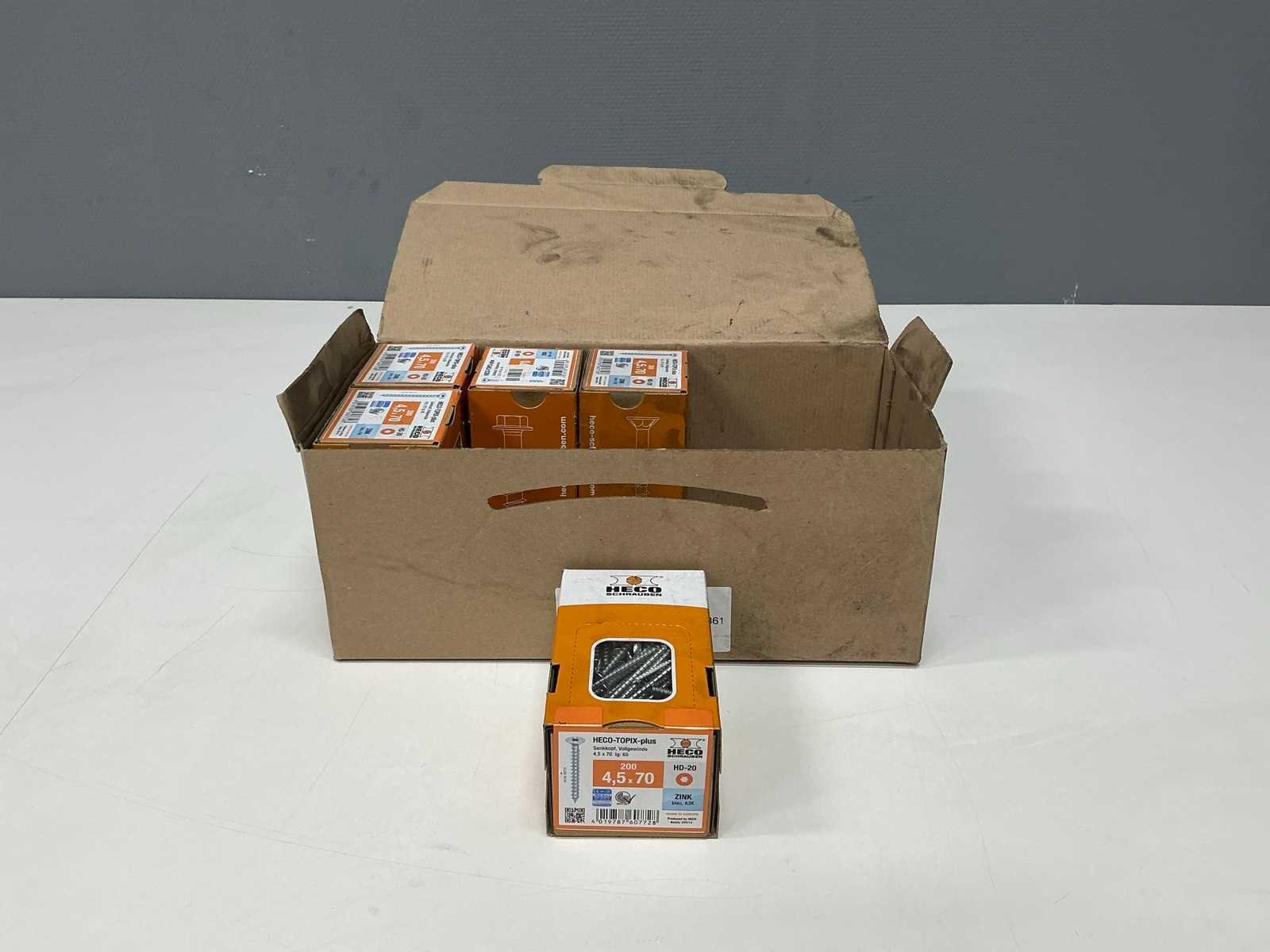 Verzonken kop, volledig schroefdraad, 4,5x70 mm 200 stuks per doos, 10 dozen Merk: Heco Type: Topix Plus Materiaal: Zink