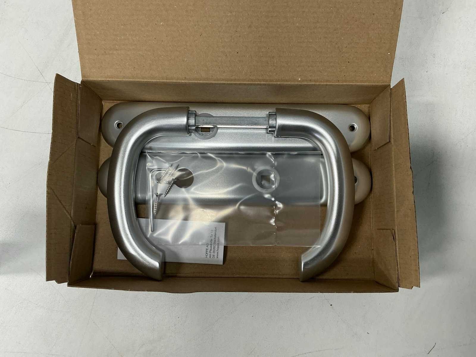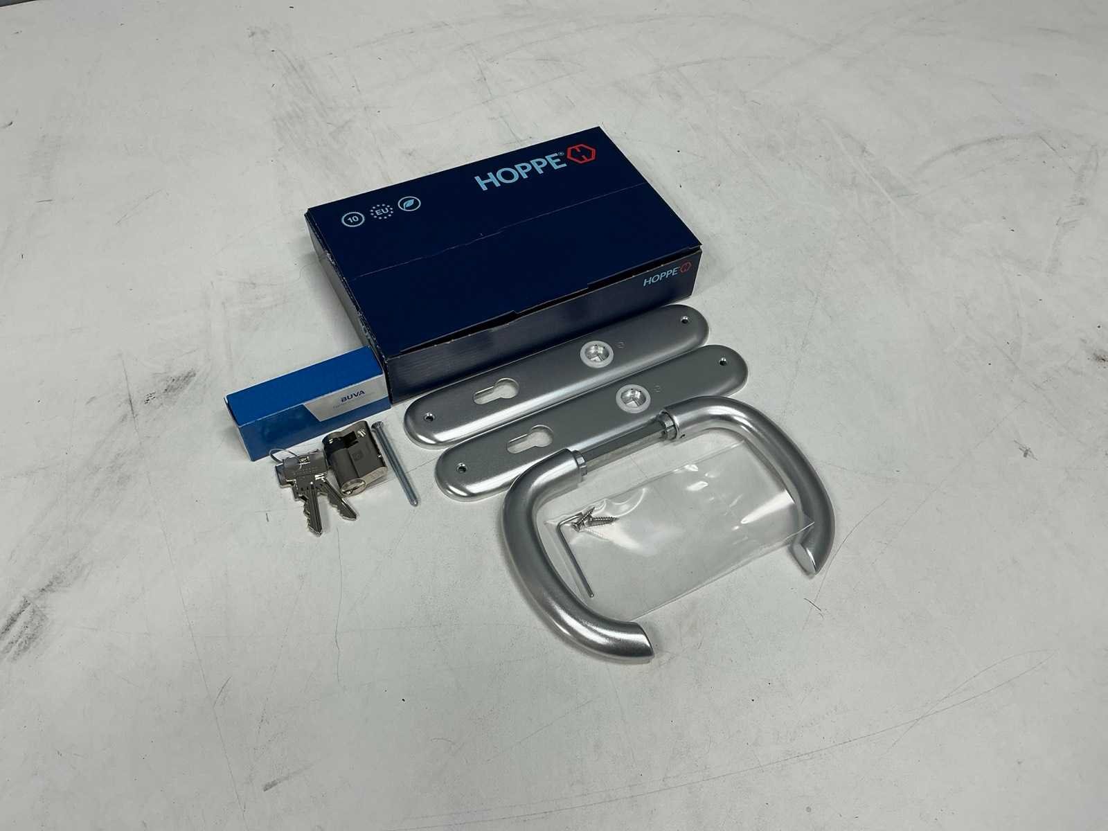 Een compleet setje Deurbeslag Hoppe; deurschild,klink Buva; deurslot Merk: Hoppe Model: Marseille Product type: 1138/273P Kleur: Zilver Materiaal: Aluminium