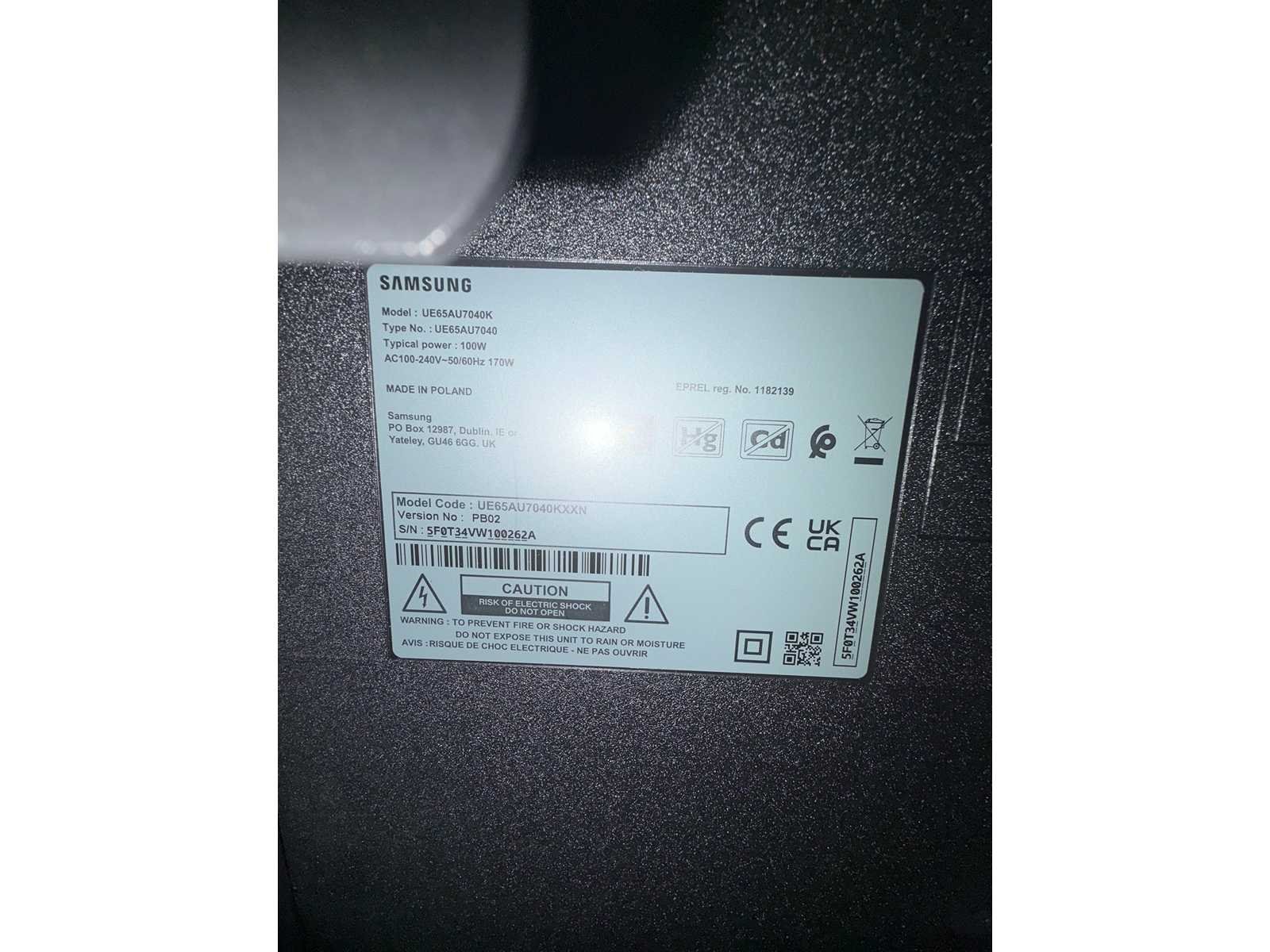 Merk: Samsung Model: UE65AU7040K Beelddiagonaal: 65''