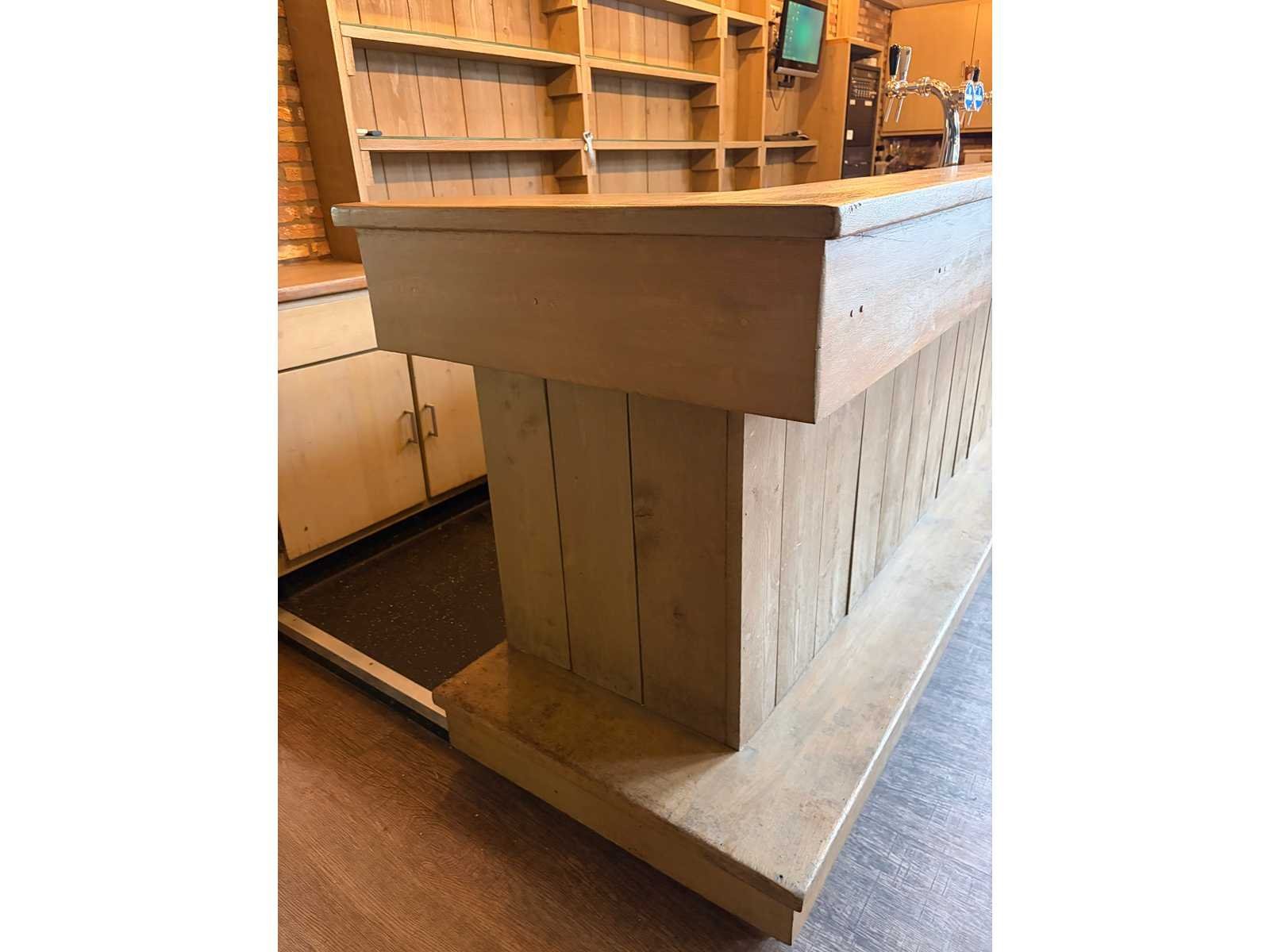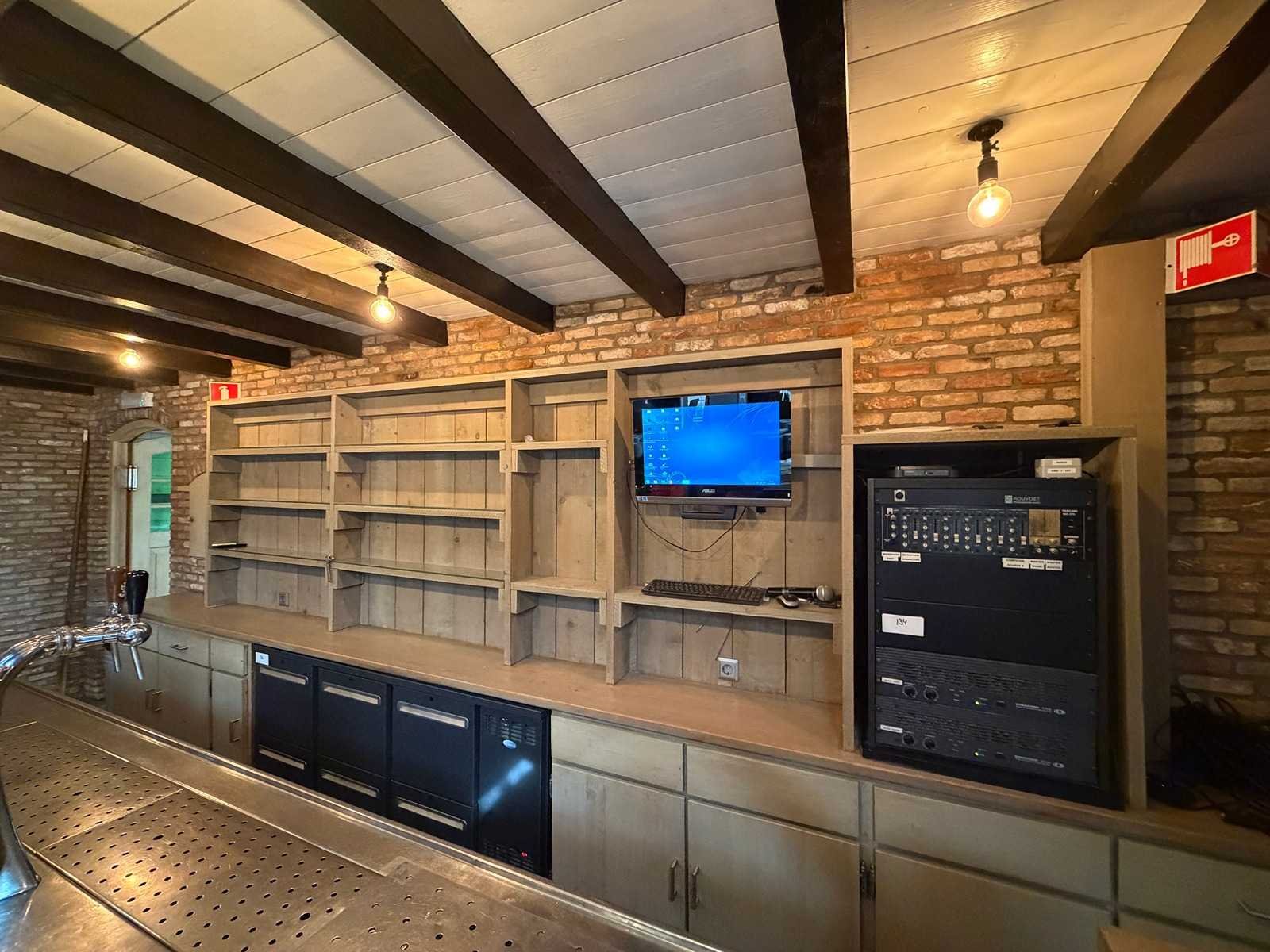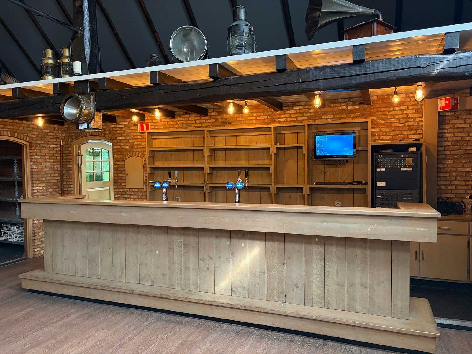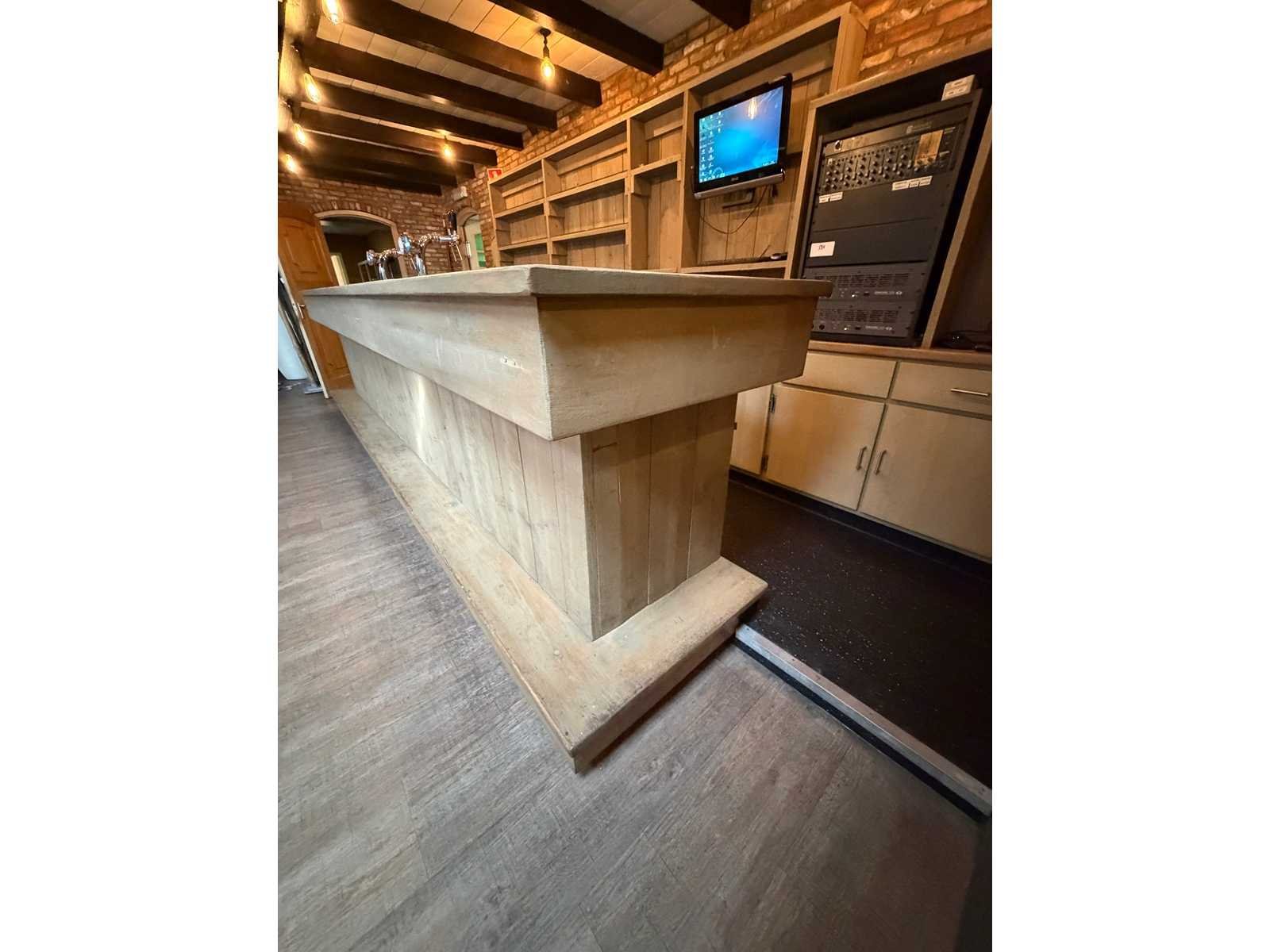 Compleet barmeubel met 2 dubbele tapkranen, achterwand, lekblad, spoelbak, etc.