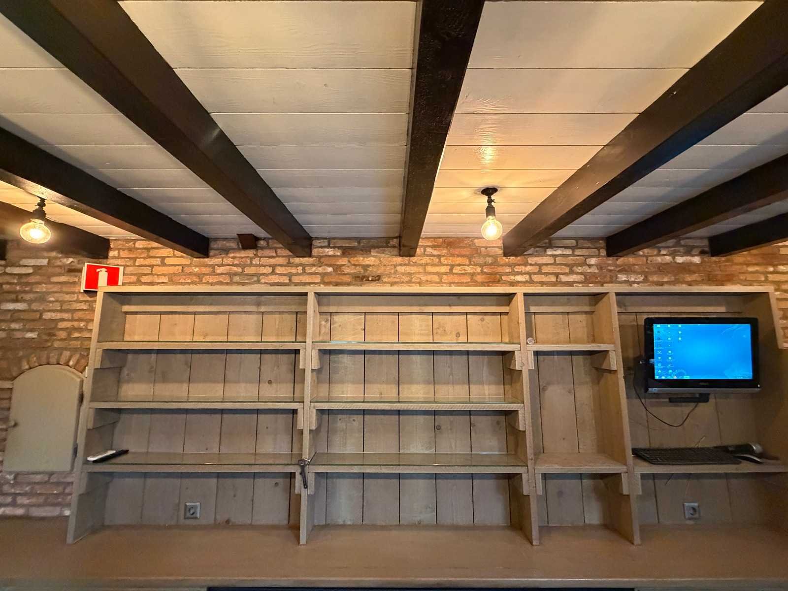 Afmeting bovenkant achterwand ca. L415 x B17 x H120cm. Totale afmeting L: 473cm Totale afmeting Breedte: 90cm Totale afmeting Hoogte: 110cm