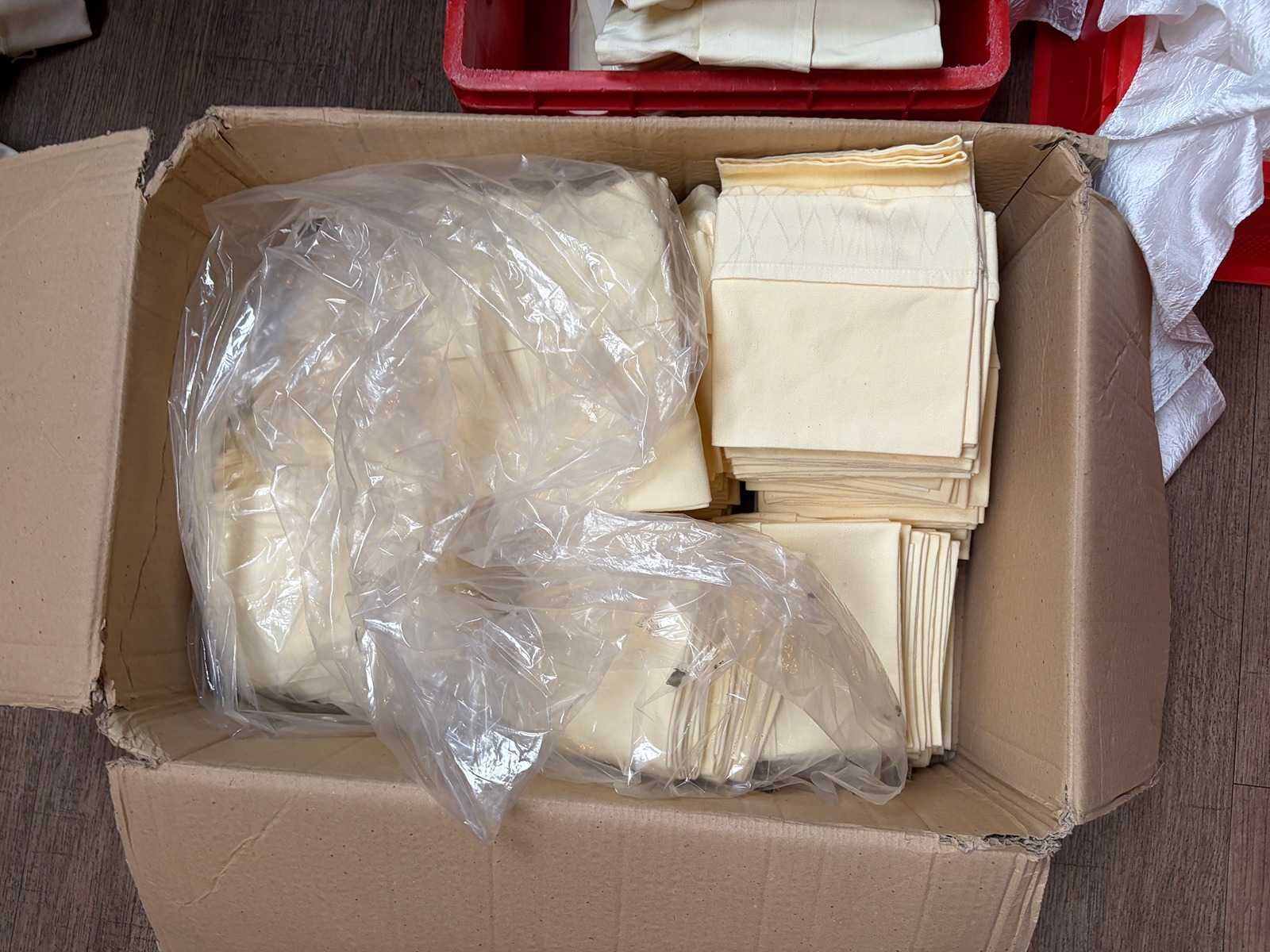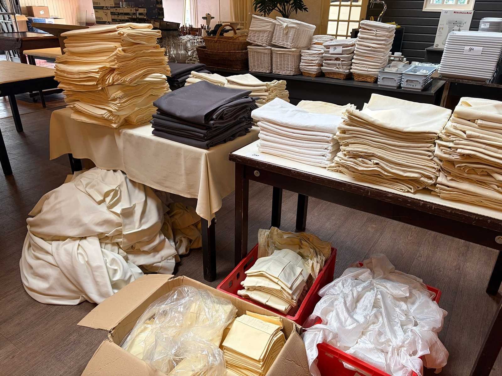 Partij tafel linnengoed en gordijnen