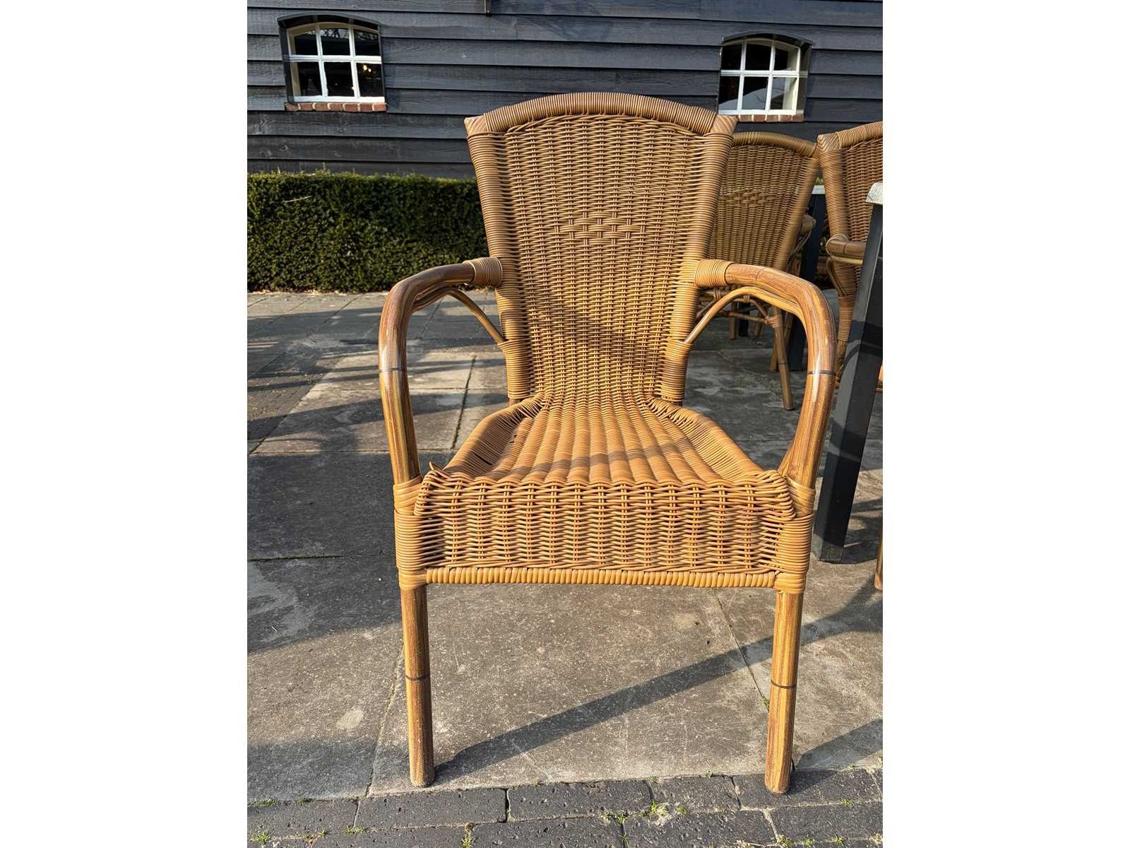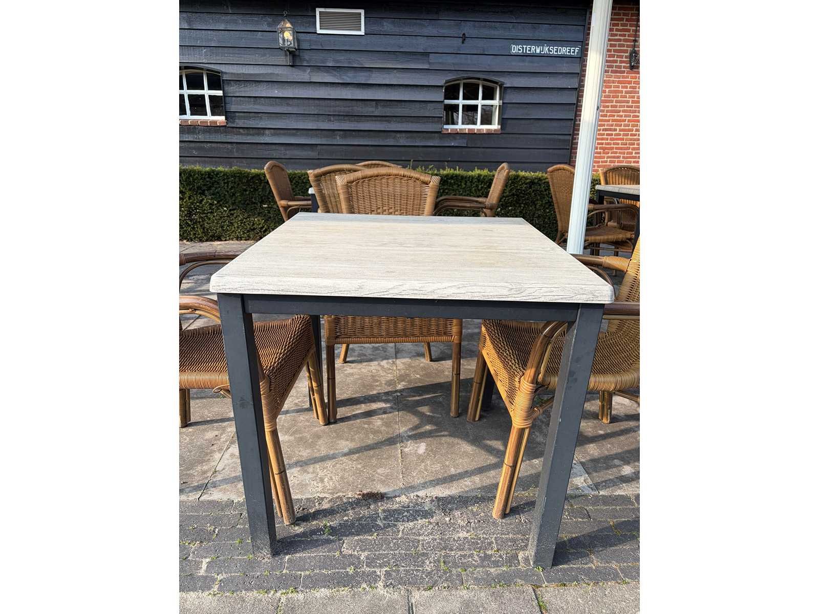 Afmeting terrastafel ca. L80 x B80 x H75 cm. Afmeting terrasstoel ca. L55 x B50 x H85 cm. Merk: De Arend