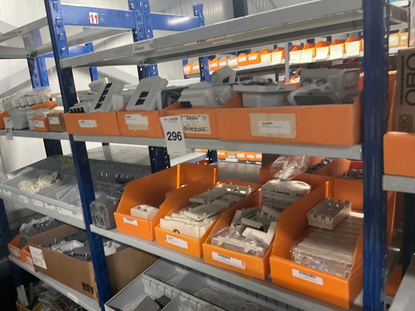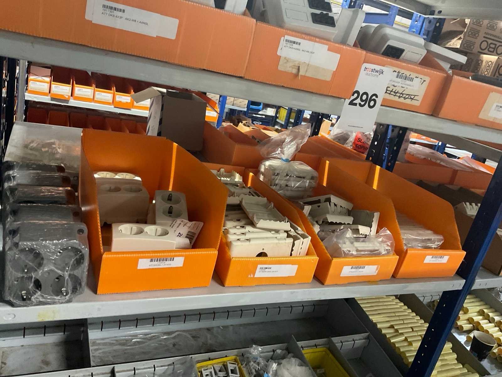 W.o. Opbouwdozen; deksels etc uit 5 schappen van de stelling