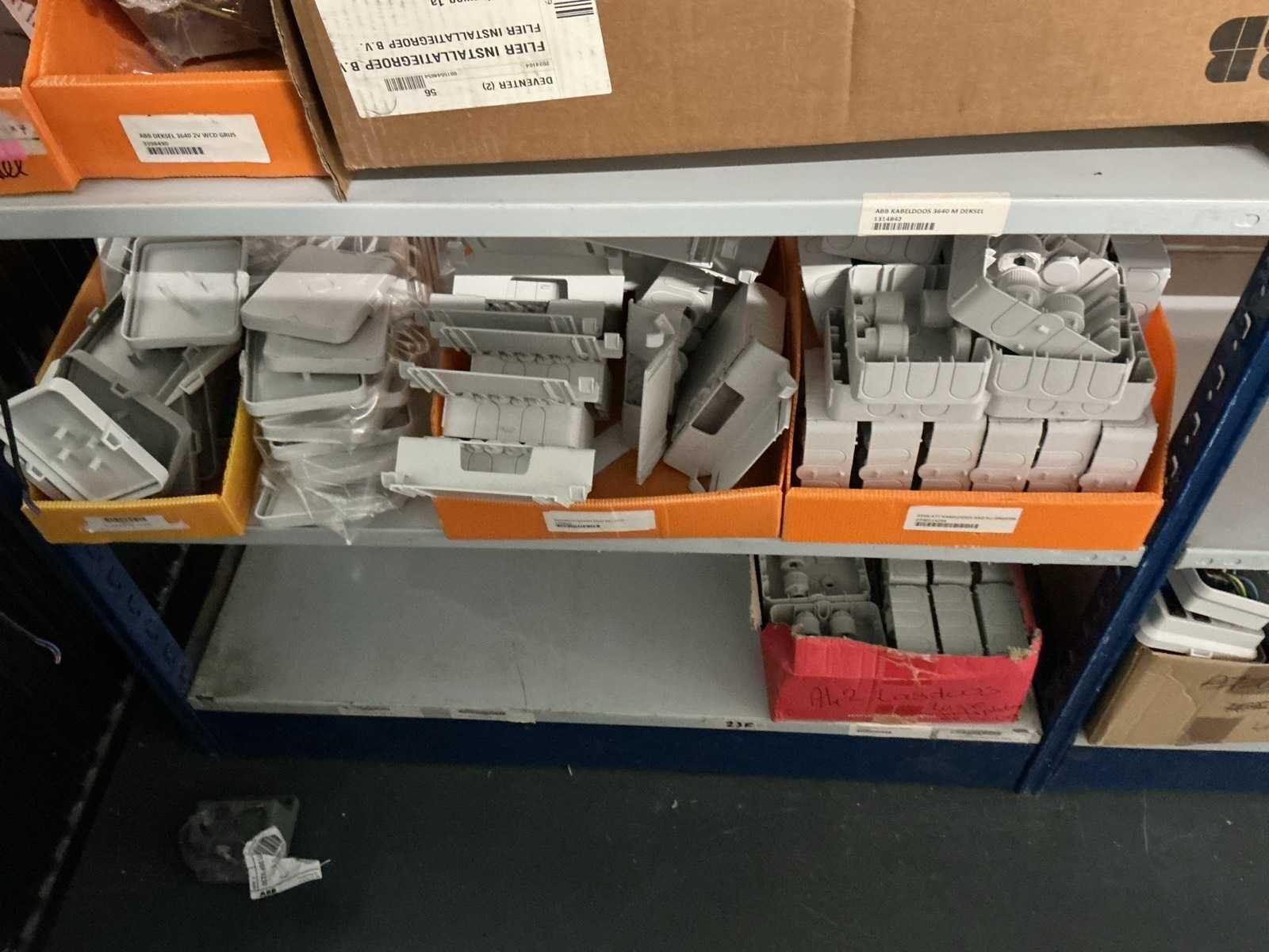 W.o. Kabeldozen; opbouwdozen; deksels uit 5 schappen van de stelling