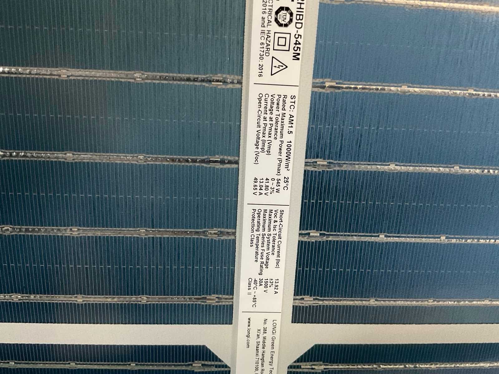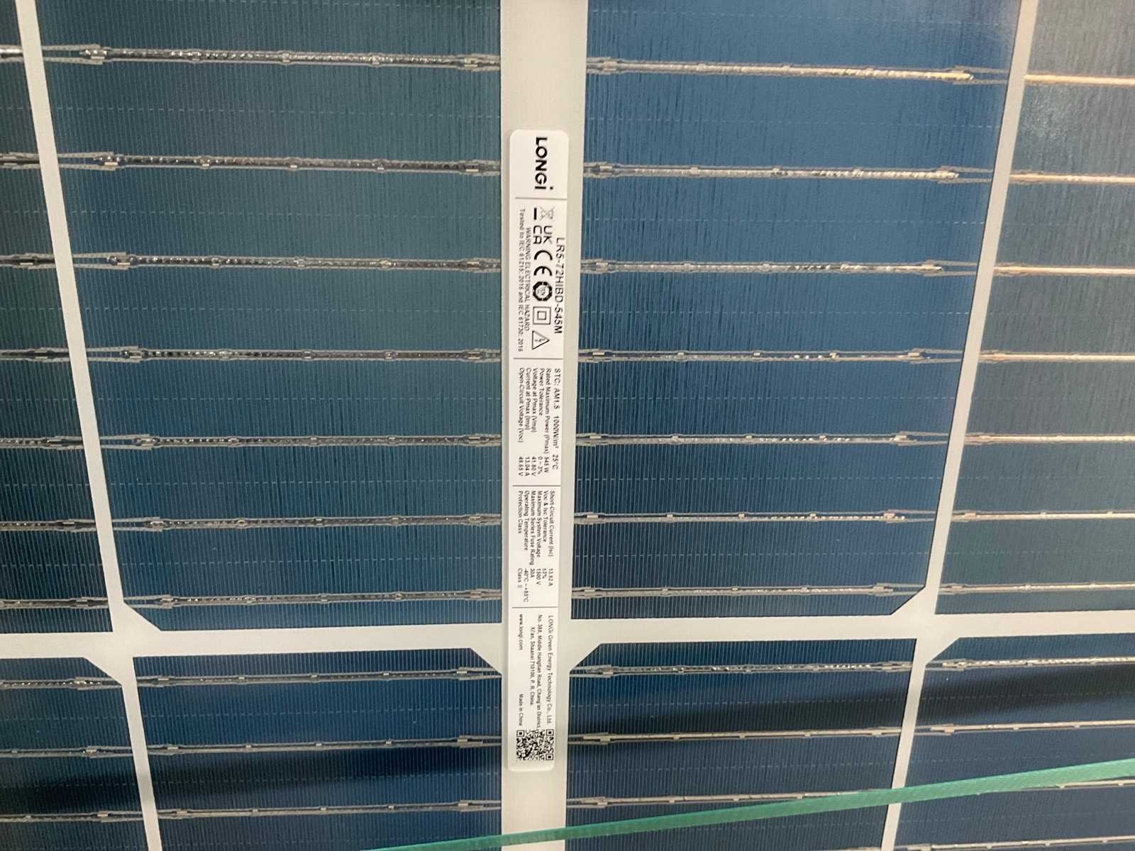 Merk: Longi Type: LR5-72HIBD-545M Max. dc power: 545W Totale afmeting L: 2280mm Totale afmeting Breedte: 1135mm