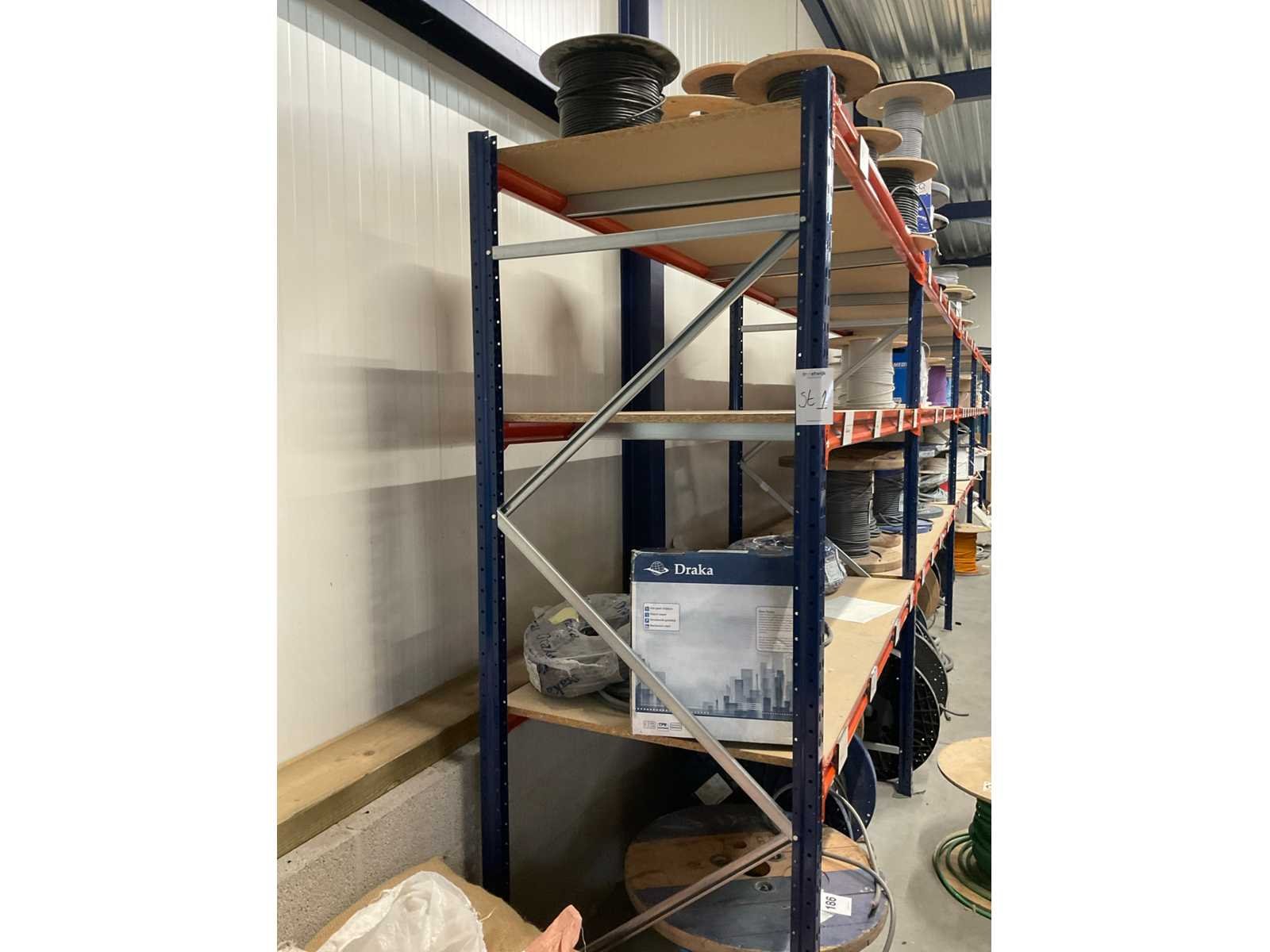 Staanders 80x225 cm; liggers 185 cm; dragers en legborden; Door koper zelf ter plaatse te demonteren; zonder de inhoud; afhalen op afspraak Aantal secties: 5 Aantal staanders: 6 Aantal liggers: 30 Aantal legborden: 15 Demontabel: true