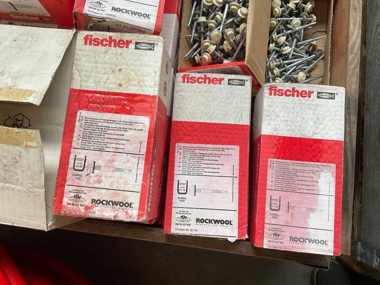 Partij paneel en betonschroeven en pluggen
