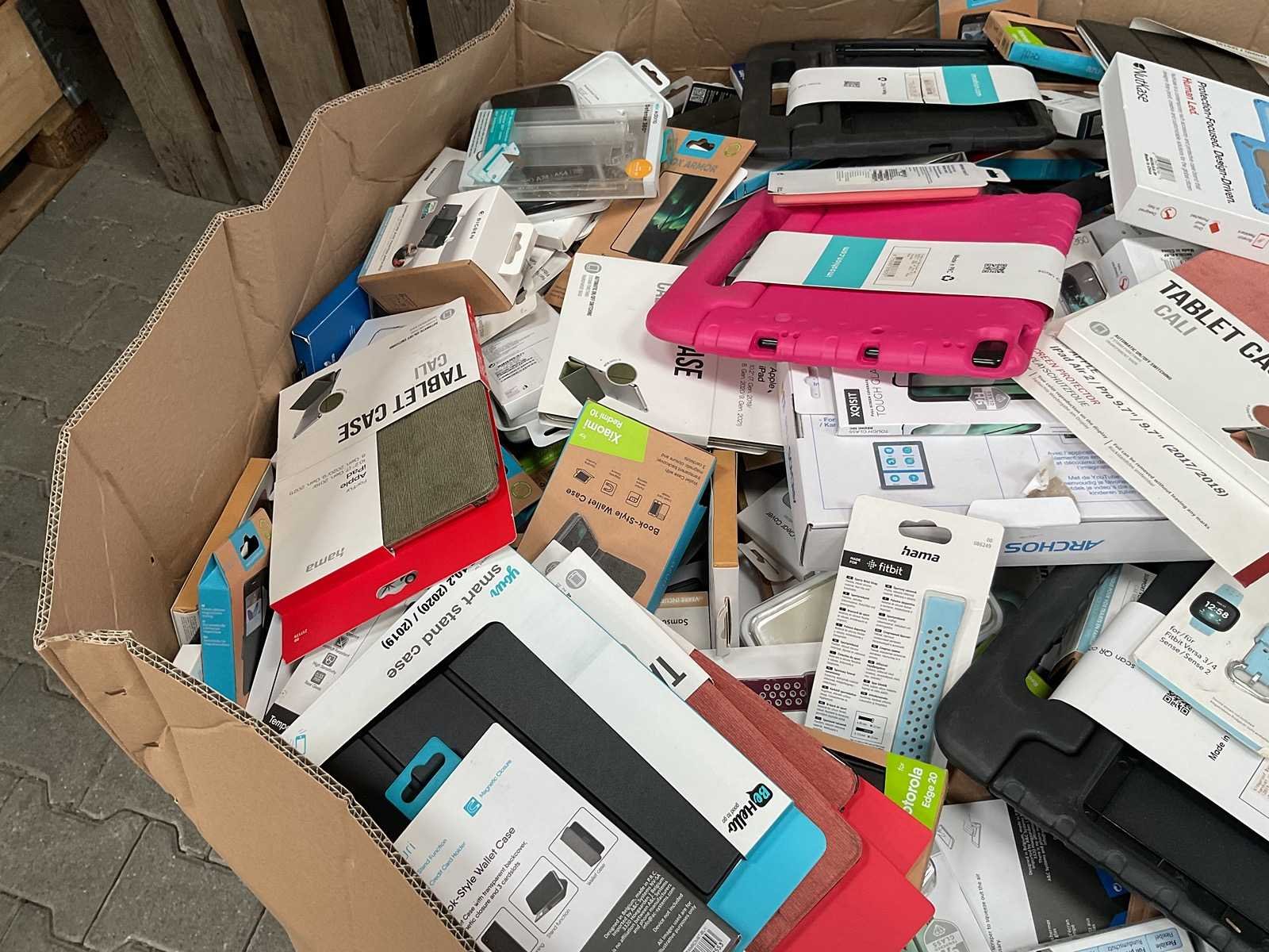 Partij pallet box met telefoon, tablets hoesjes en telefoon houders. Screen protectors, horloges banden.