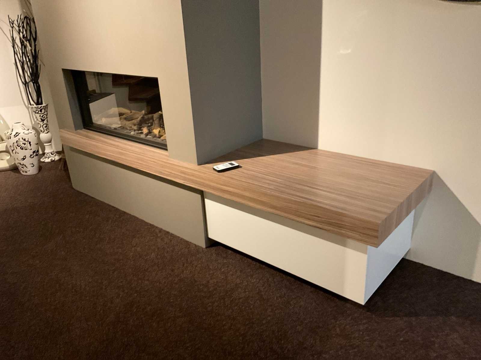 Met houtstammenset en afstandsbediening; onderbouw kast zebrano gefineerd en hoogglans wit met klepdeur; LET OP: haard door koper zelf ter plaatse te demonteren; wanden reeds gedemonteerd; lift aanwezig Merk: Bellfires Model: Horizon Bell small Lengte: 100 Breedte: 42