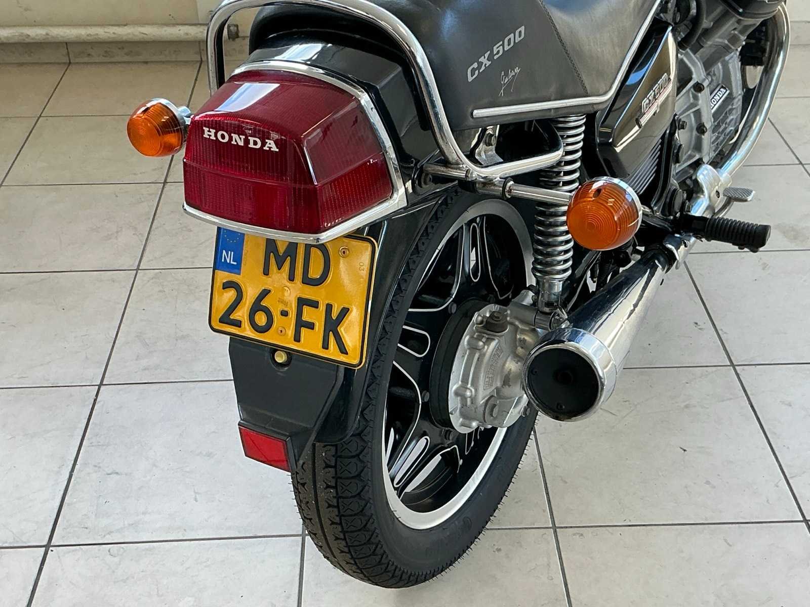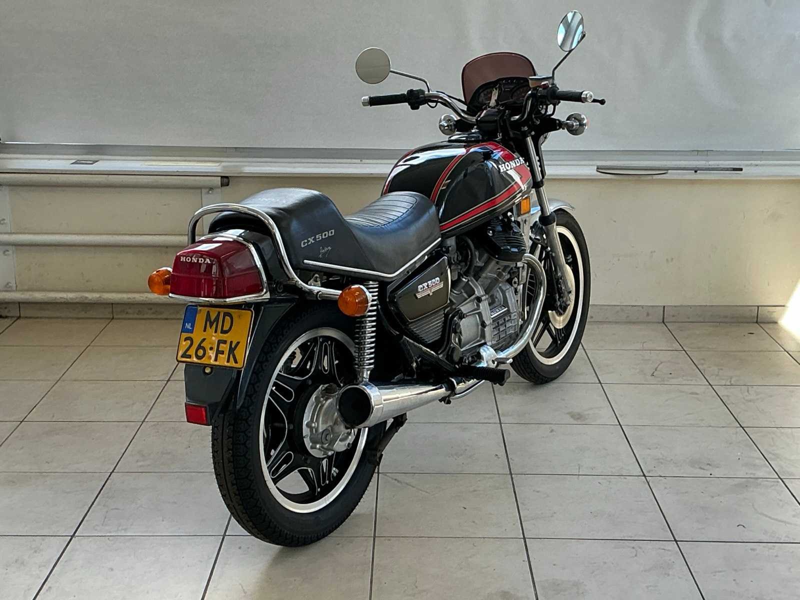 Merk: Honda Model: Tour Type: CX 500 E/500 Kenteken: MD-26-FK Brandstof: Benzine Chassisnummer: CX5002301156 Cilinderinhoud: 496cc Datum eerste toelating: 1981-06-05 Vermogen (kW): 37kW Kleur: niet van toepassing Afgelezen kilometerstand: 44640km Transmissie: Handgeschakeld (5) Bruto BPM (NL): 0€ Rest BPM: 0€ Bouwjaar: 1981