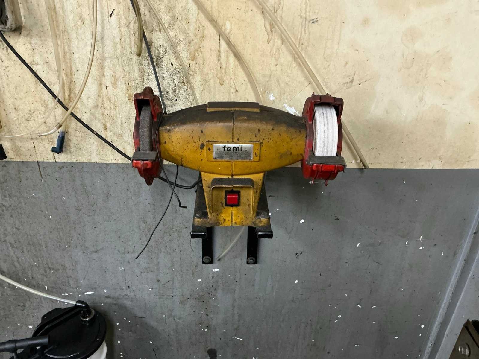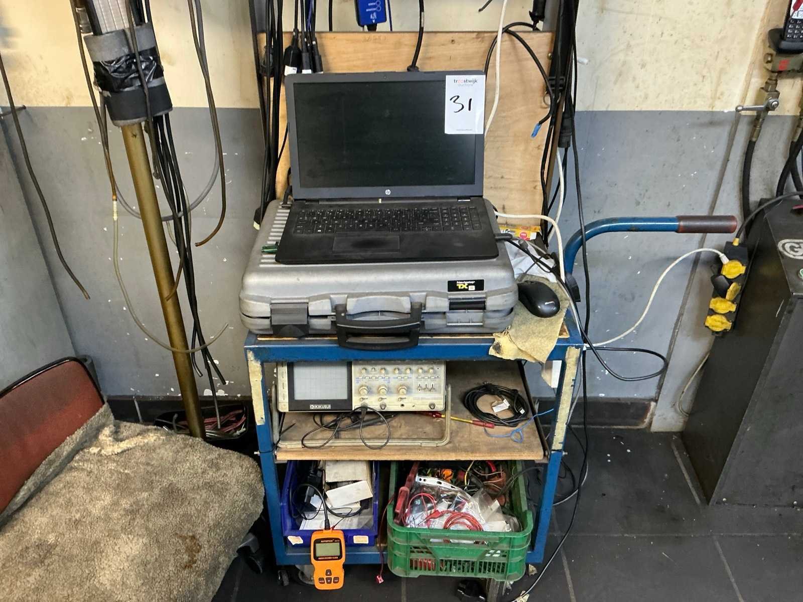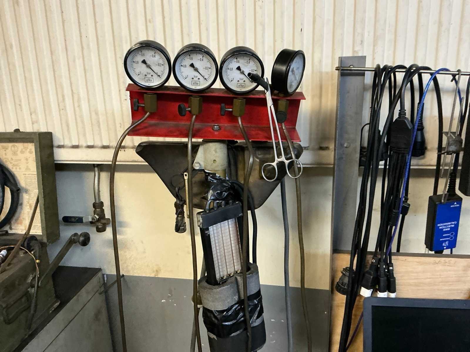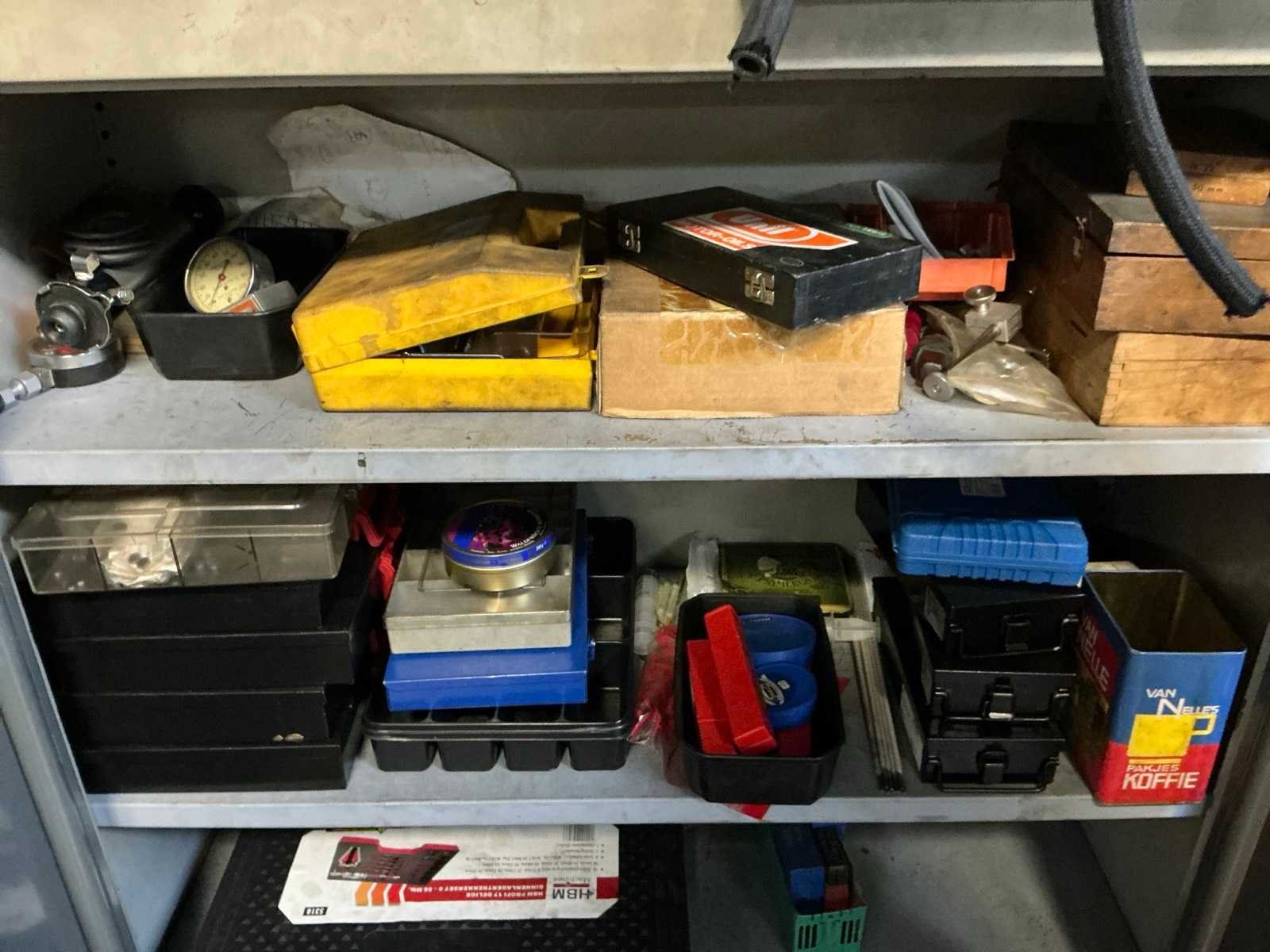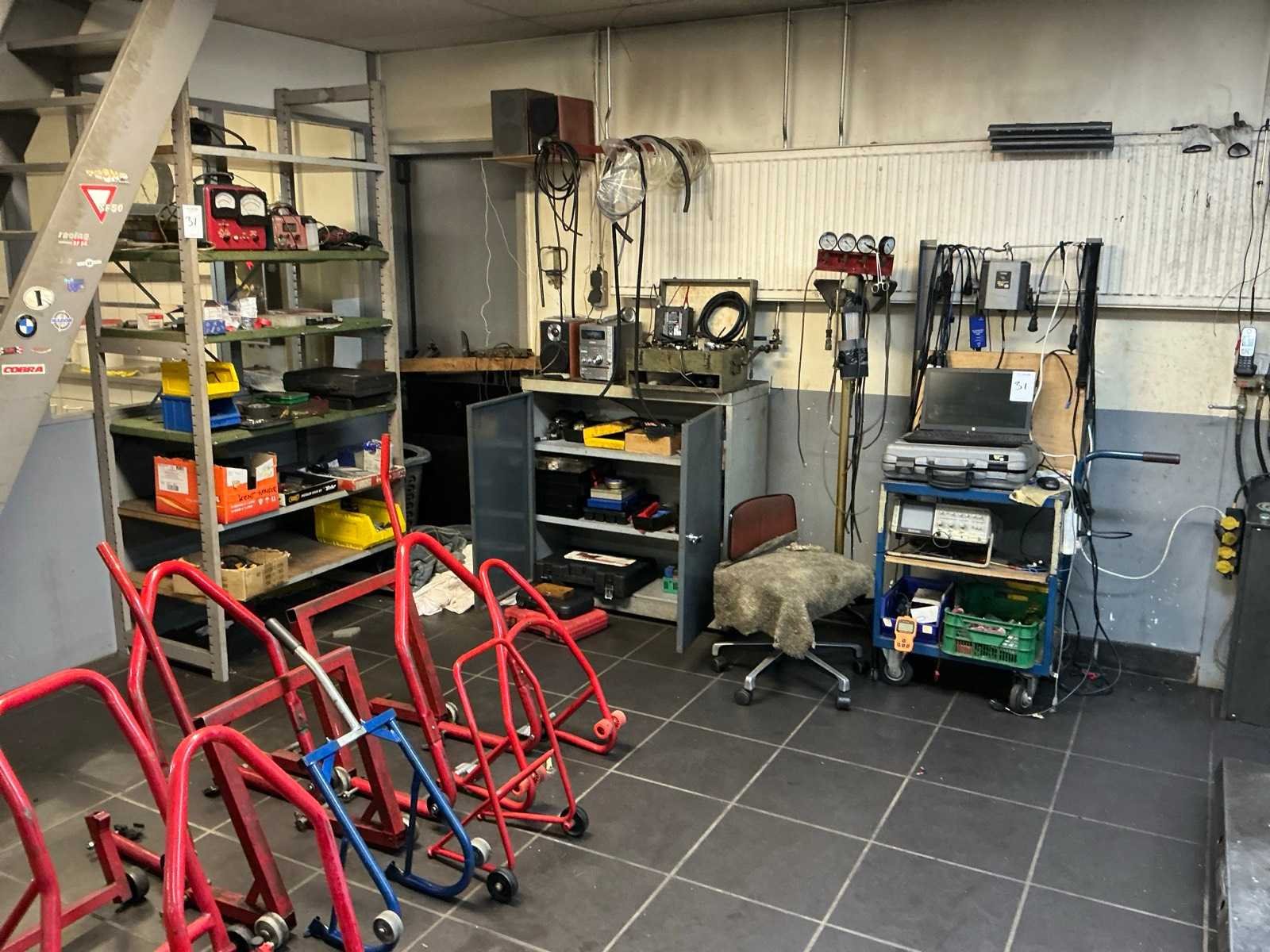 Bestaande uit: divers diagnose apparatuur, bougietester, werktafels, motorbokken en divers gereedschap. Slijpmachine dient gedemonteerd te worden.