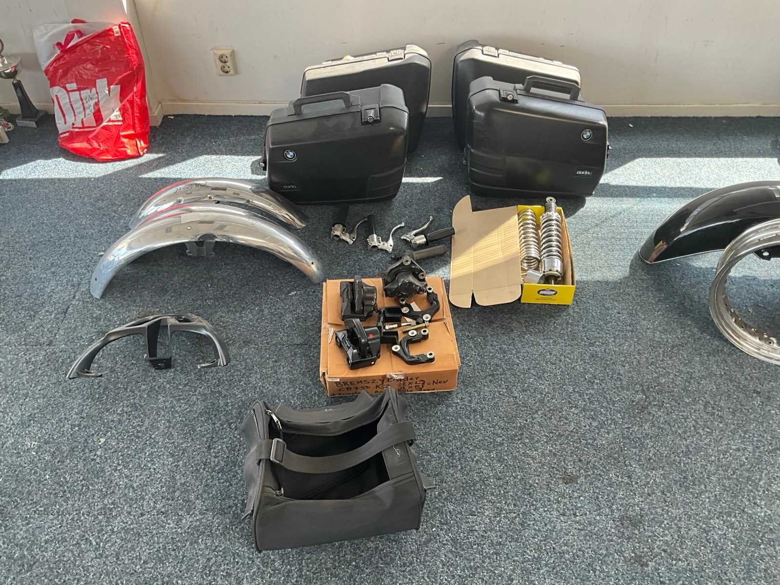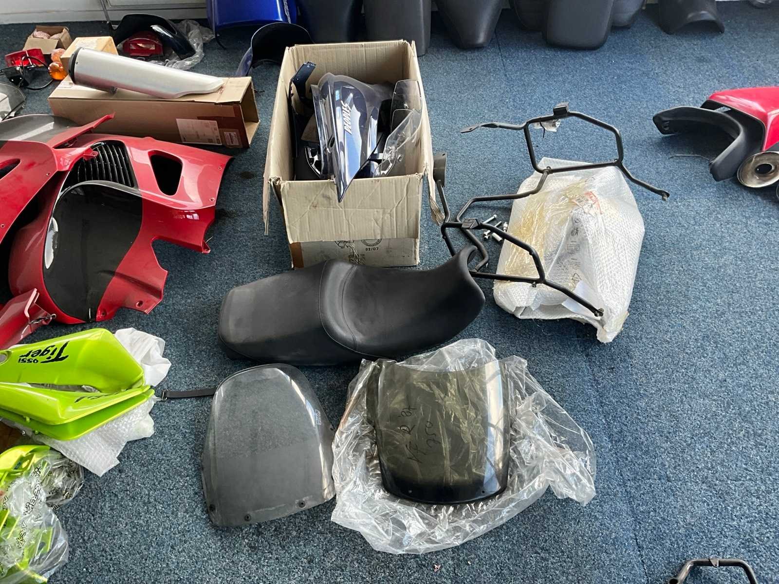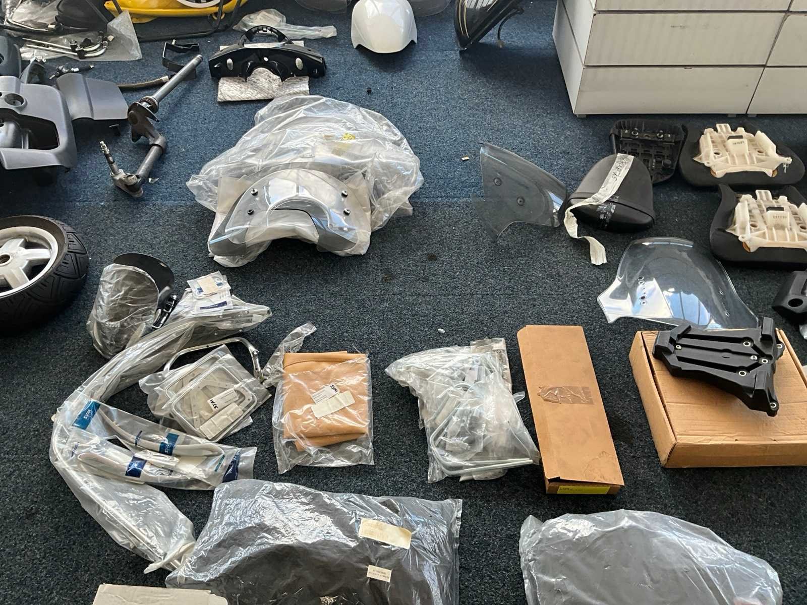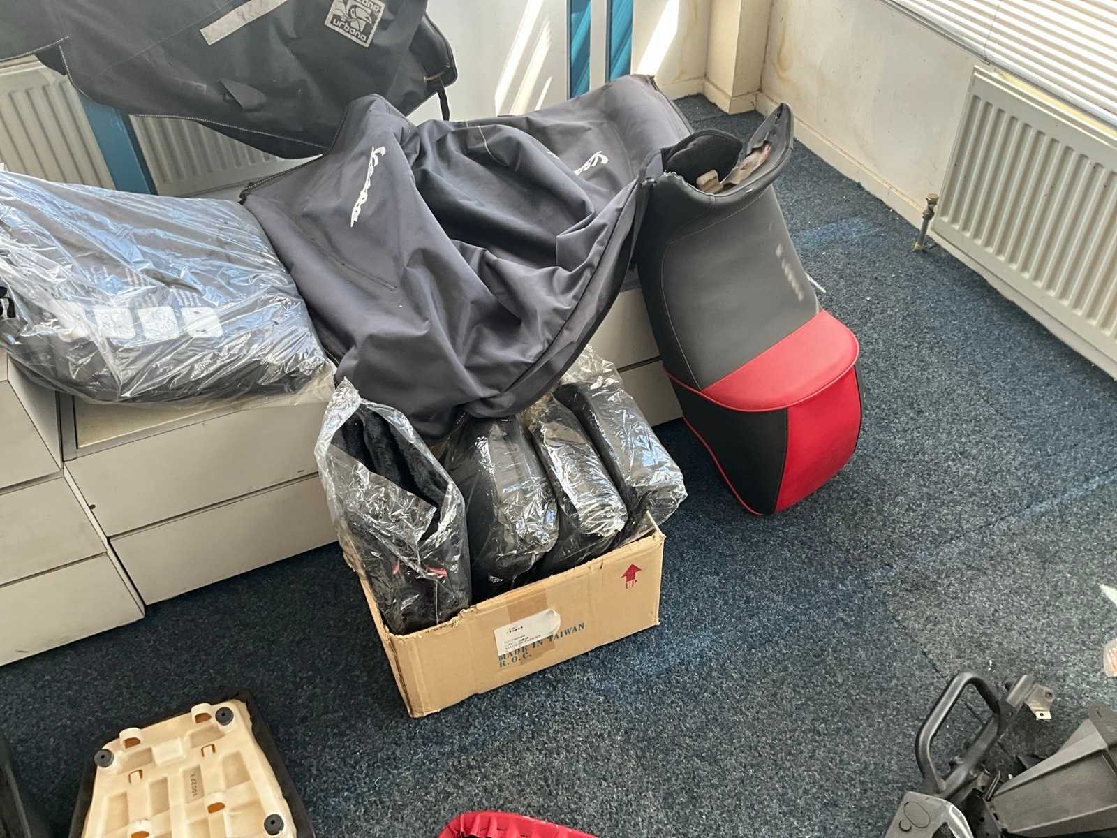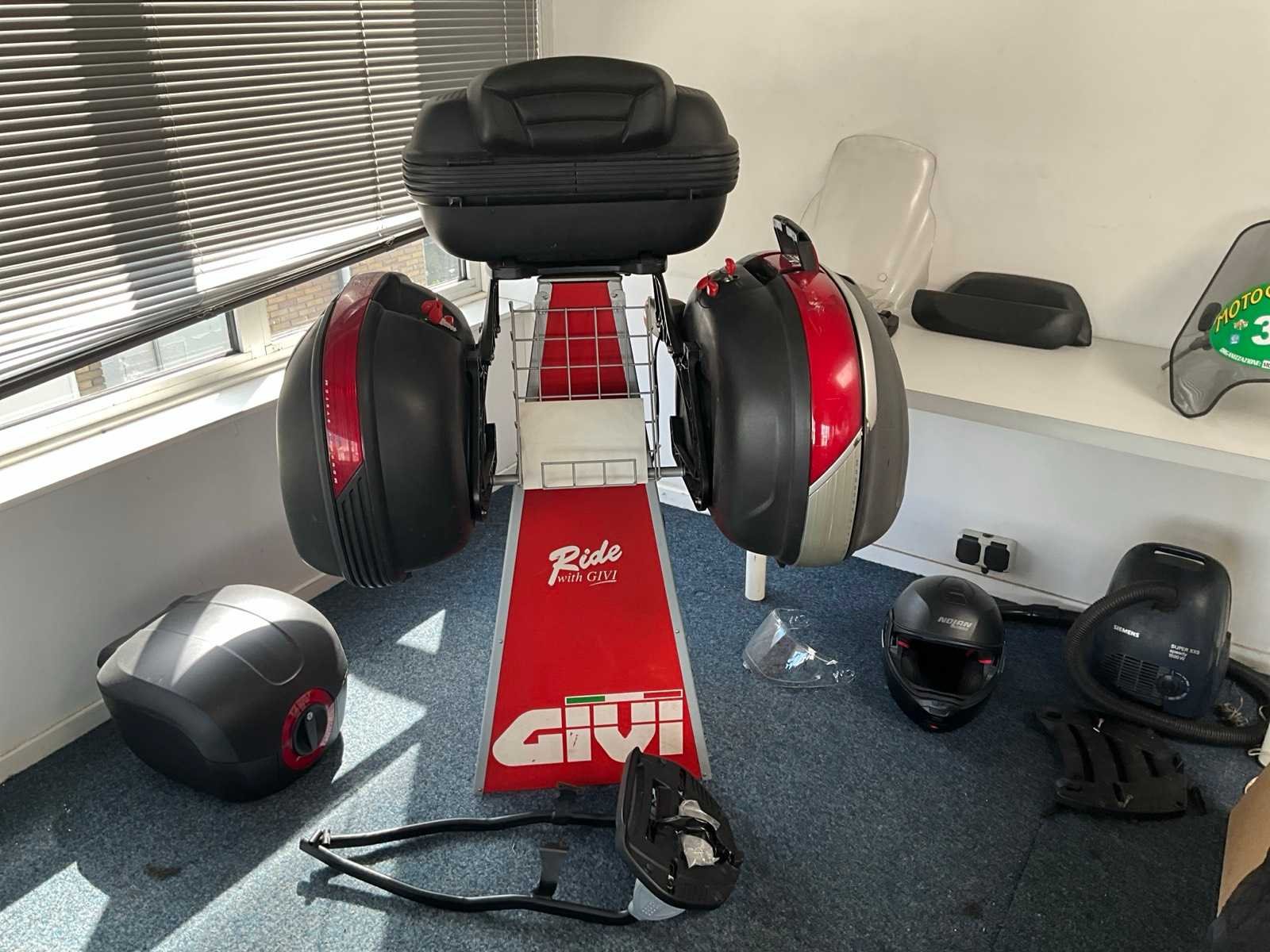Betreft de inhoud van de verdieping; bestaande uit onder andere: motorzadels, kappen, uitlaten / collectoren, spiegels, koffers, Triumph benzinetank, motorkleding, MT Helmets motorhelmen (urban design, FU401SV ATOM SV, Le Mans 2 SV, Avenue SV), wanddecoratie, stellingen