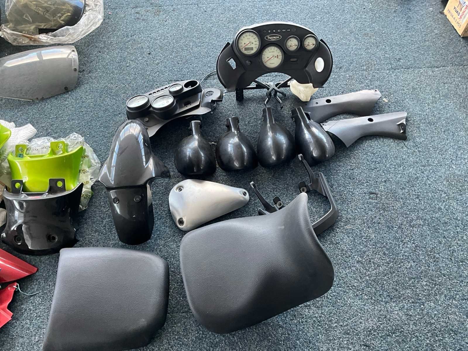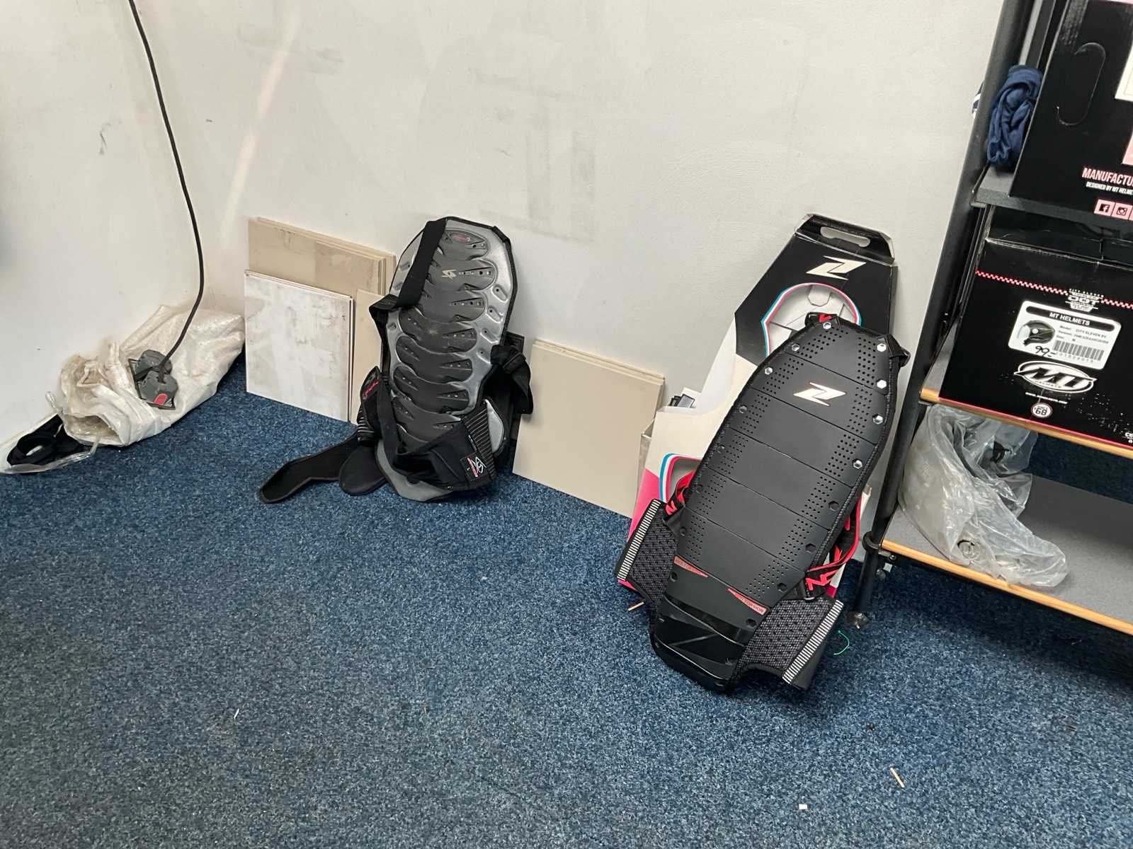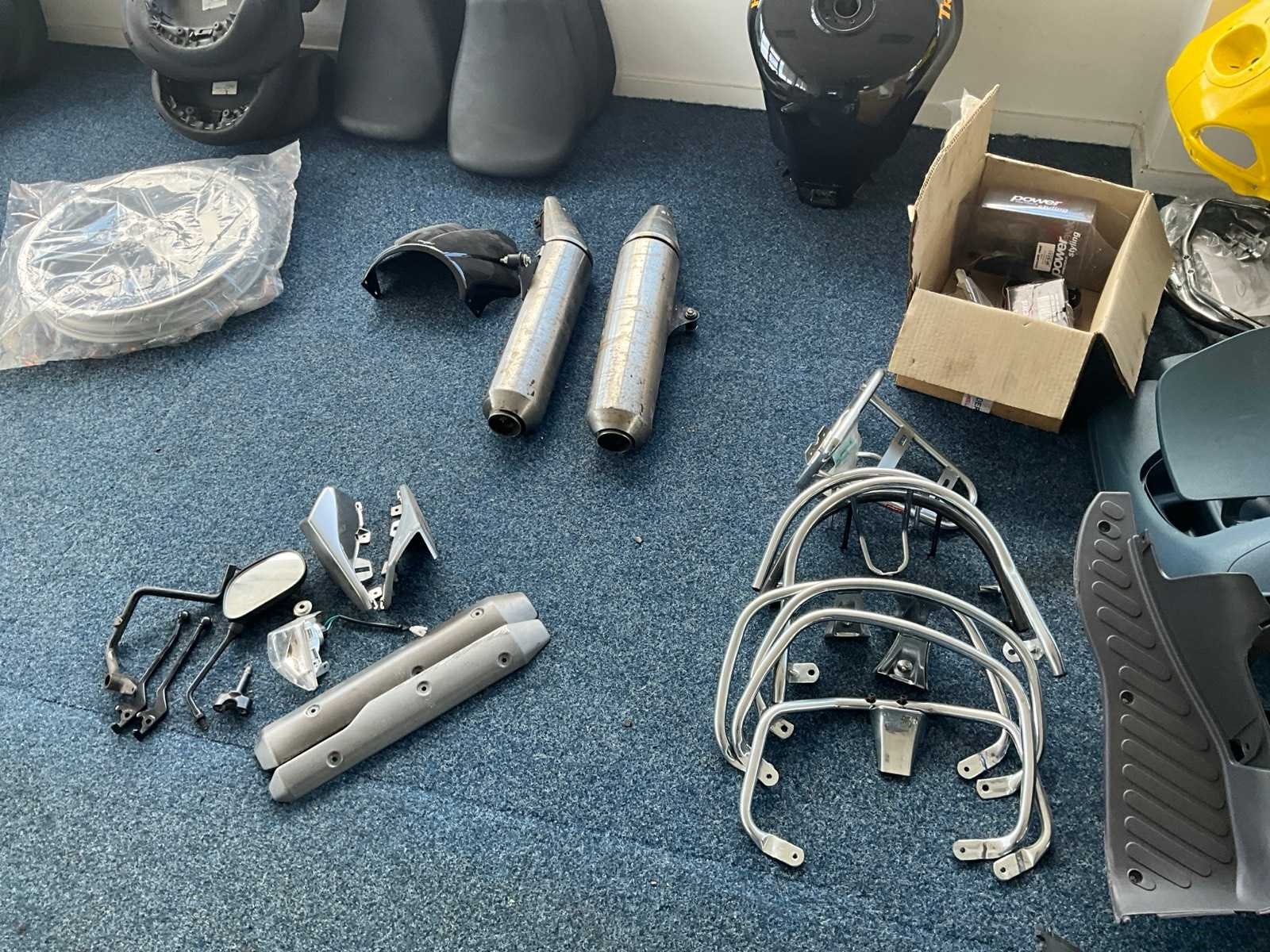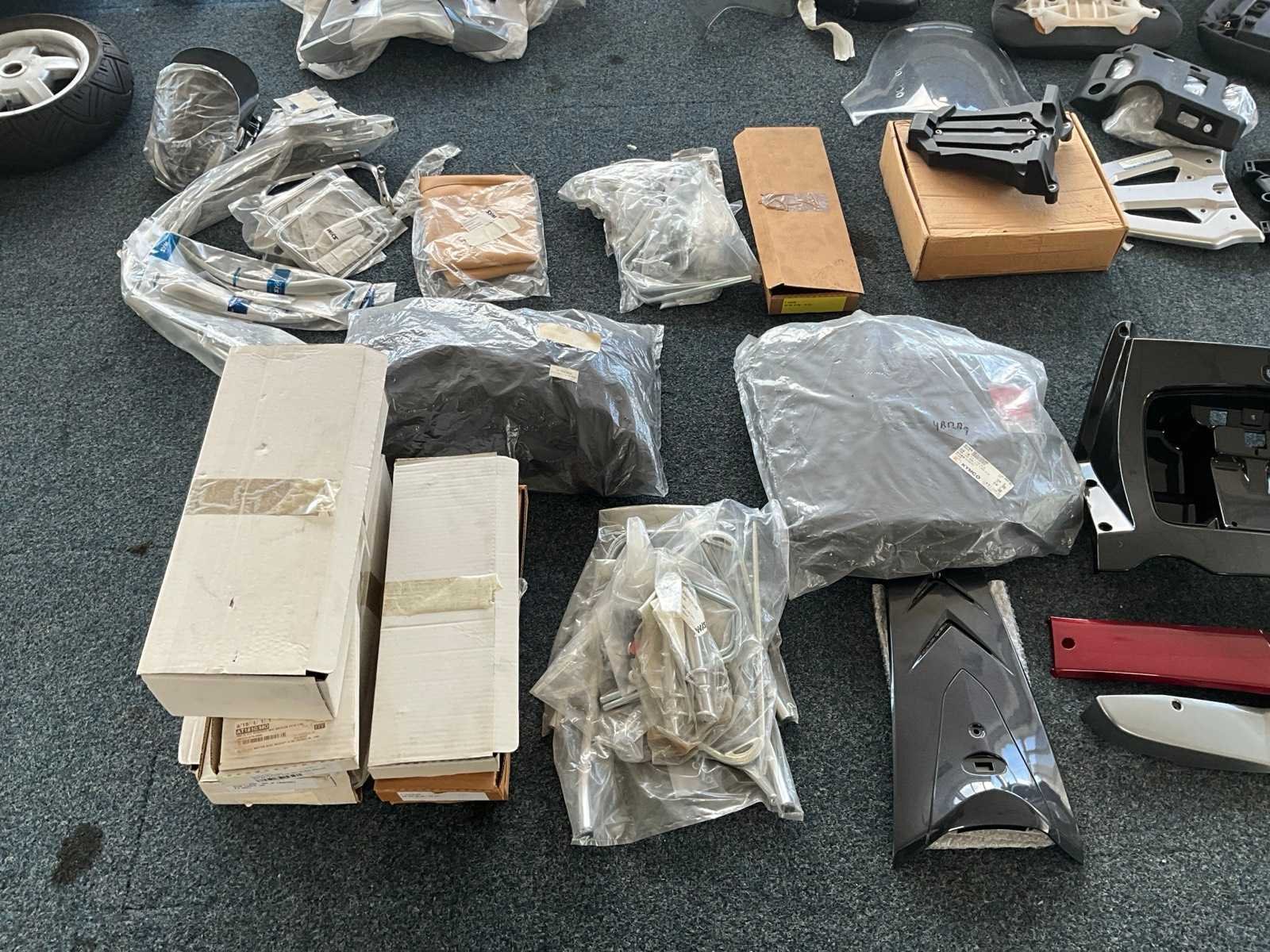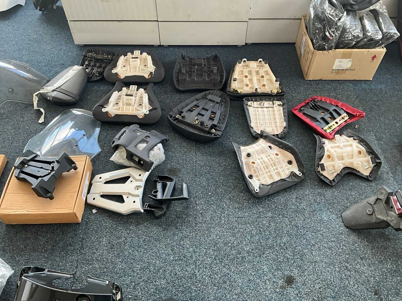 Betreft de inhoud van de verdieping; bestaande uit onder andere: motorzadels, kappen, uitlaten / collectoren, spiegels, koffers, Triumph benzinetank, motorkleding, MT Helmets motorhelmen (urban design, FU401SV ATOM SV, Le Mans 2 SV, Avenue SV), wanddecoratie, stellingen