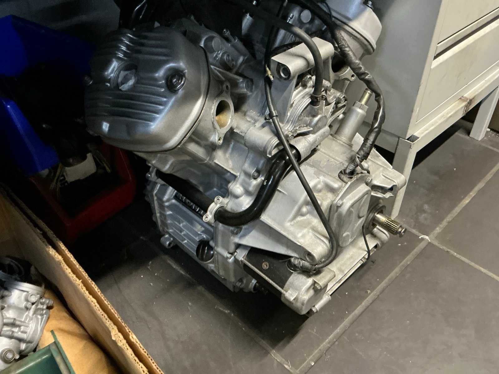 Werkplaatsinventaris, gereedschap en diverse motorblokken.