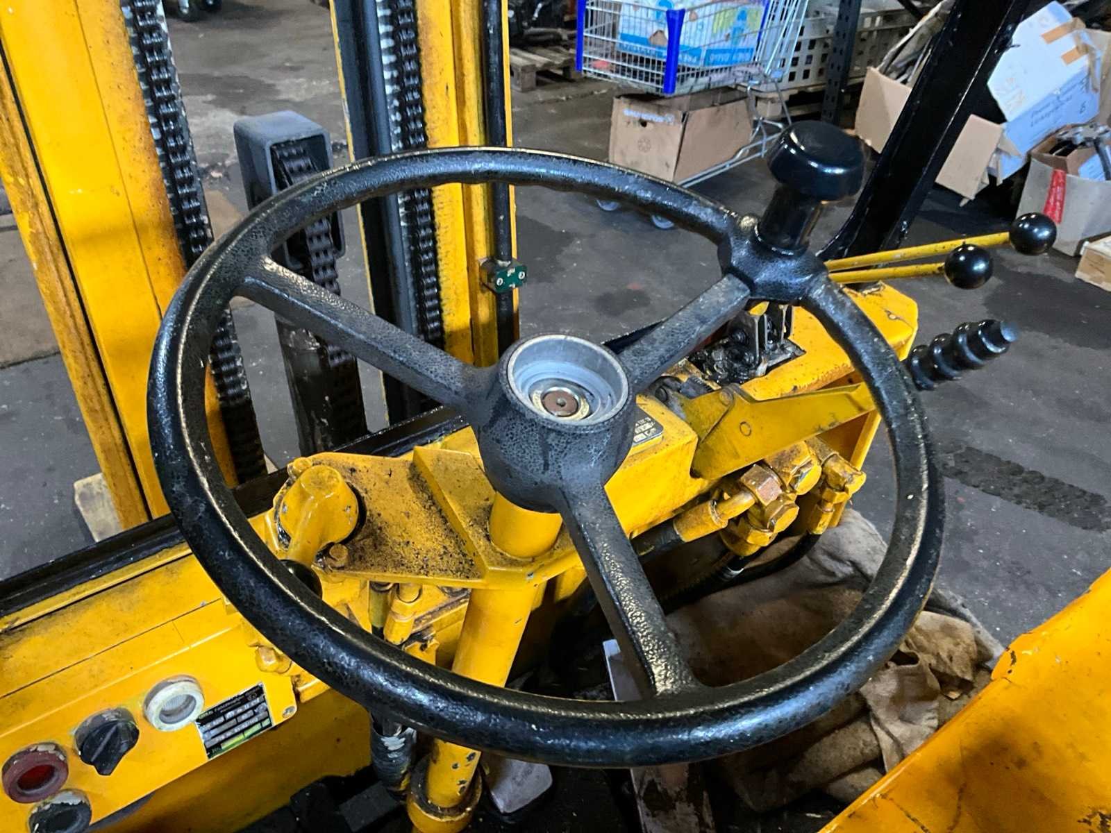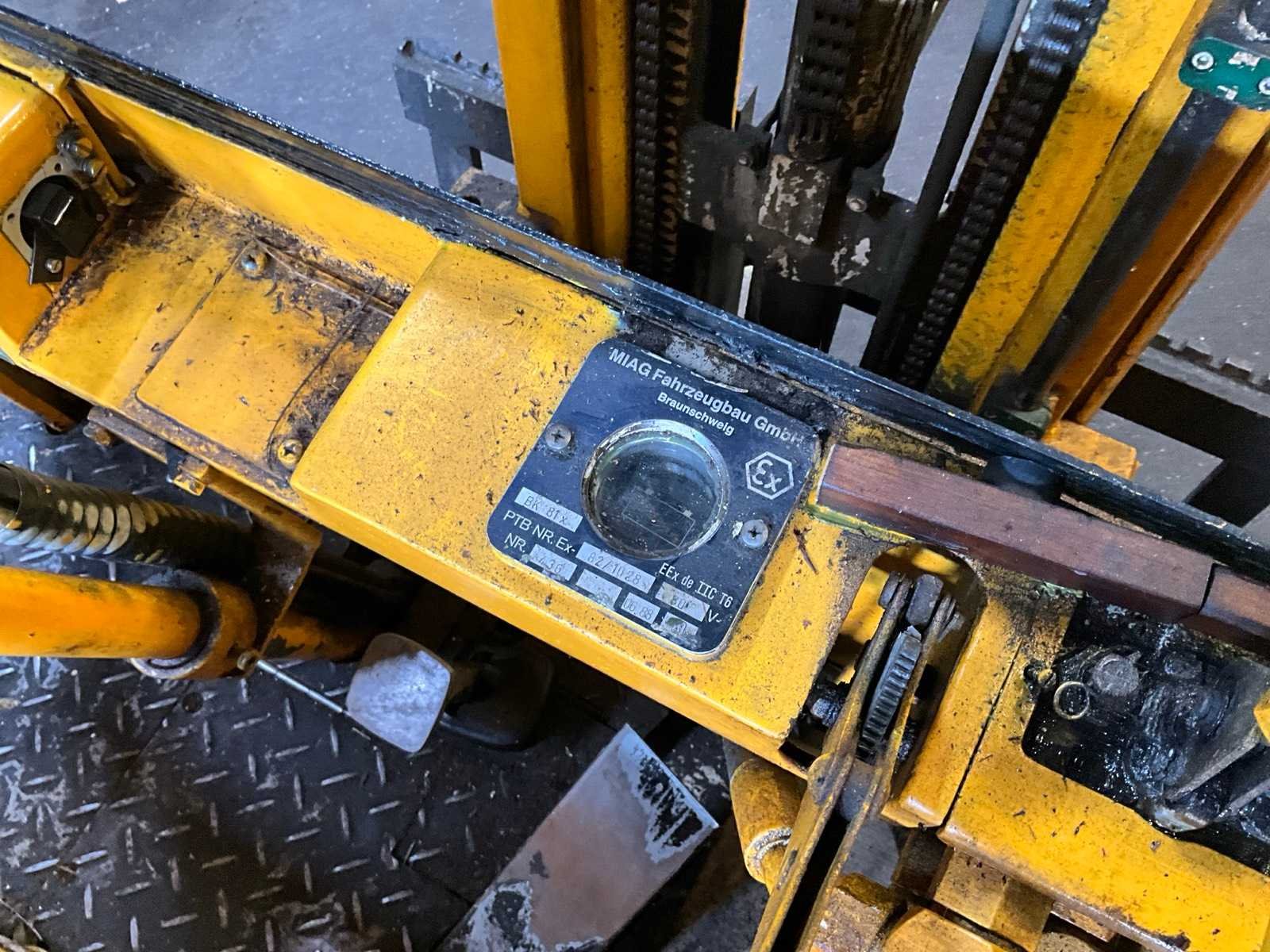 Merk: Miag Type: EFG 20x1 Bouwjaar: 1988 Brandstof: Elektrisch Aantal wielen: 4 Accu lader: true Triple mast: true Eigen gewicht: 4100kg Hefvermogen: 2000kg