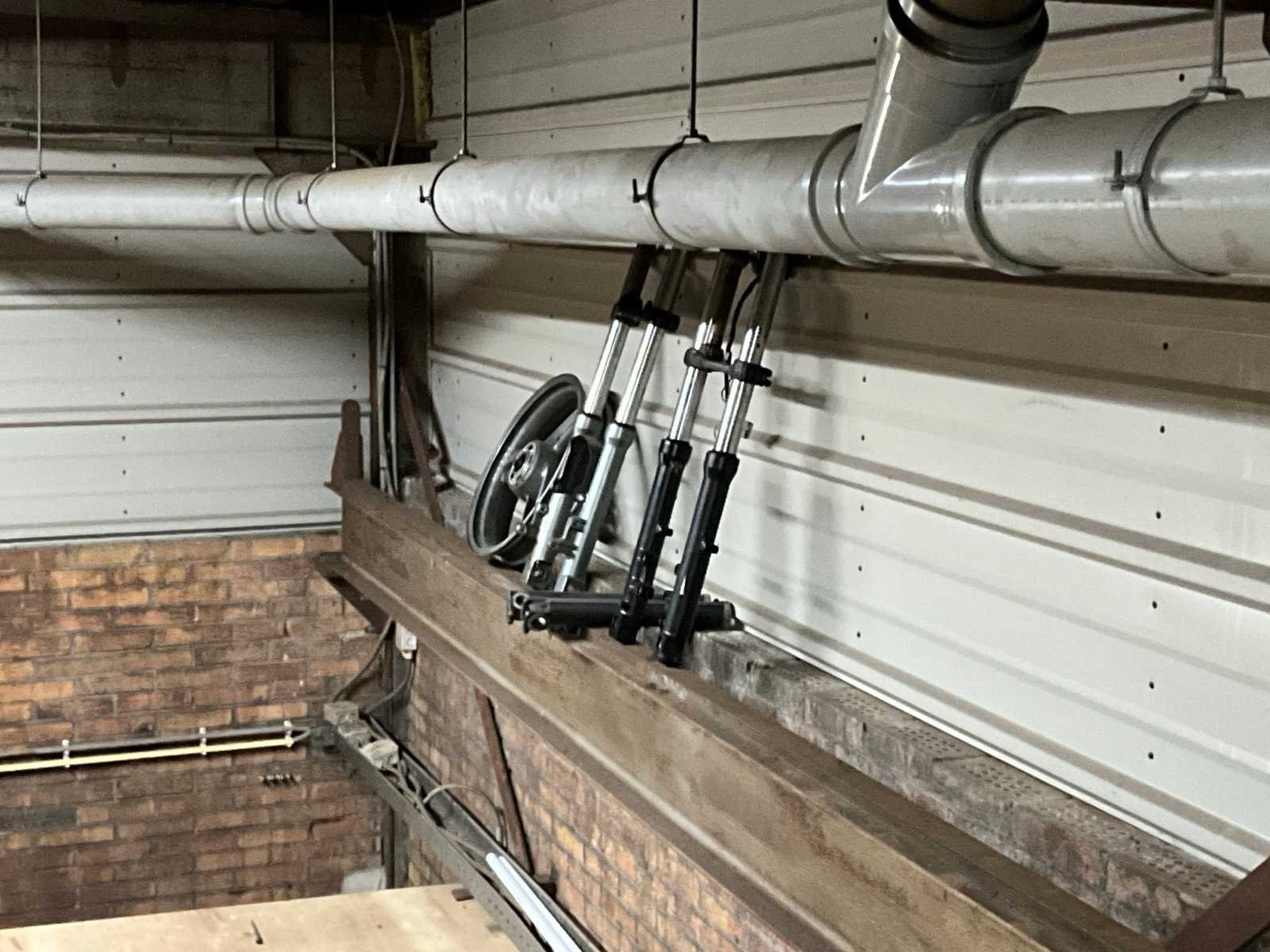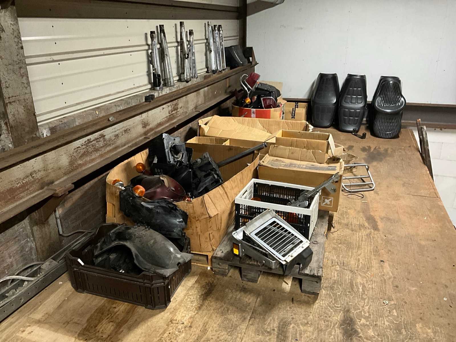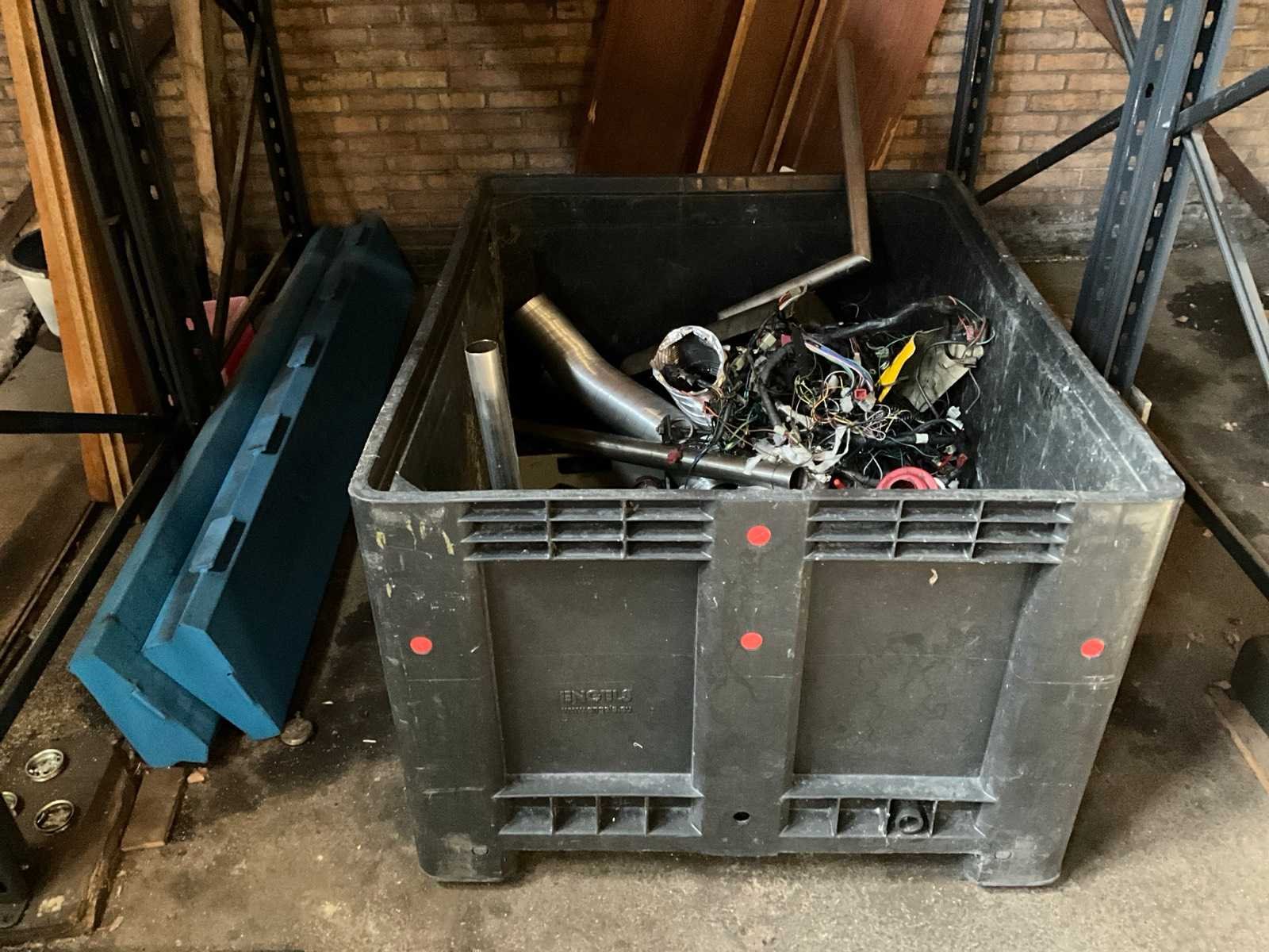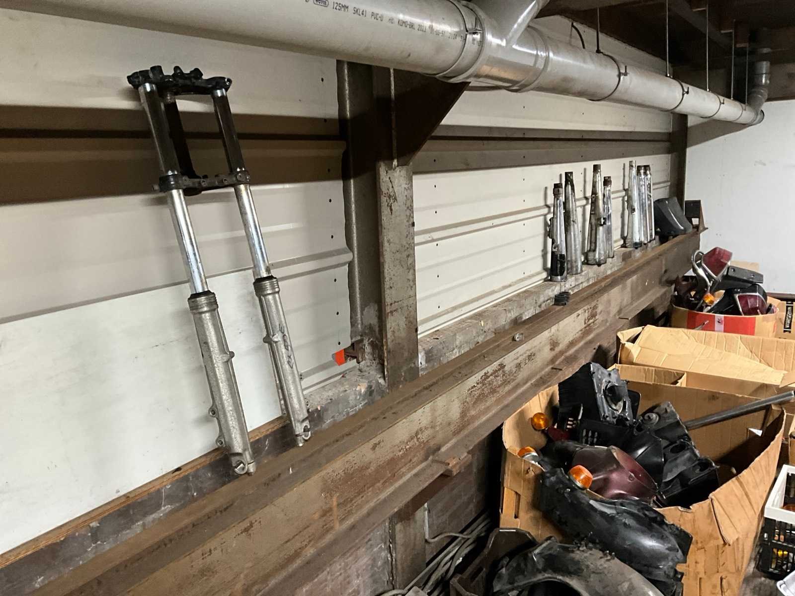 Liggers hebben diverse lengtes; inhoud ruimte bestaat onder andere uit: diverse motoronderdelen (motor, velgen, kappen, snelheidsmeters, uitlaten, zadels, etc), palletstelling, steenkruiwagen, huishoudtrap, Wanzl plateauwagen, pallets, rijplaten, Futura 130 lastransformator Aantal secties: 11 Sectie diepte: 1100mm Sectie afm. h: 2700mm Aantal staanders: 20 Aantal liggers: 65 Demontabel: true