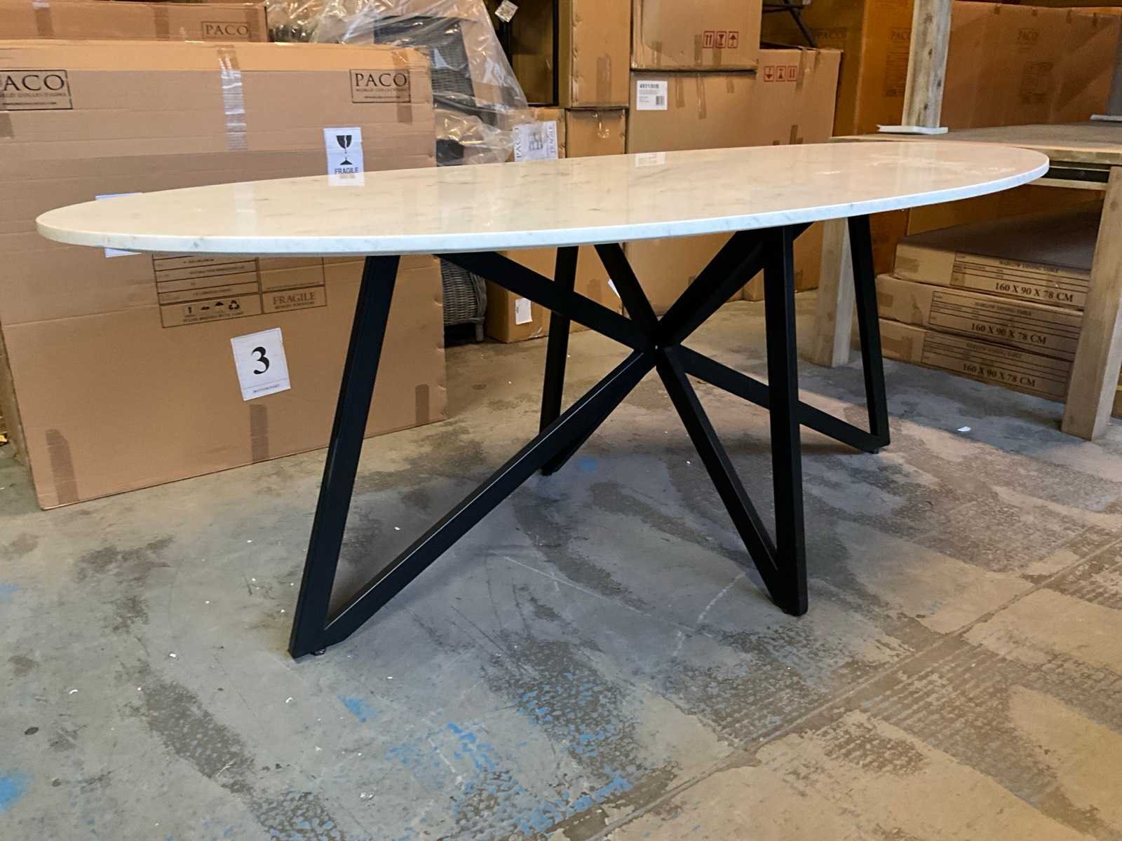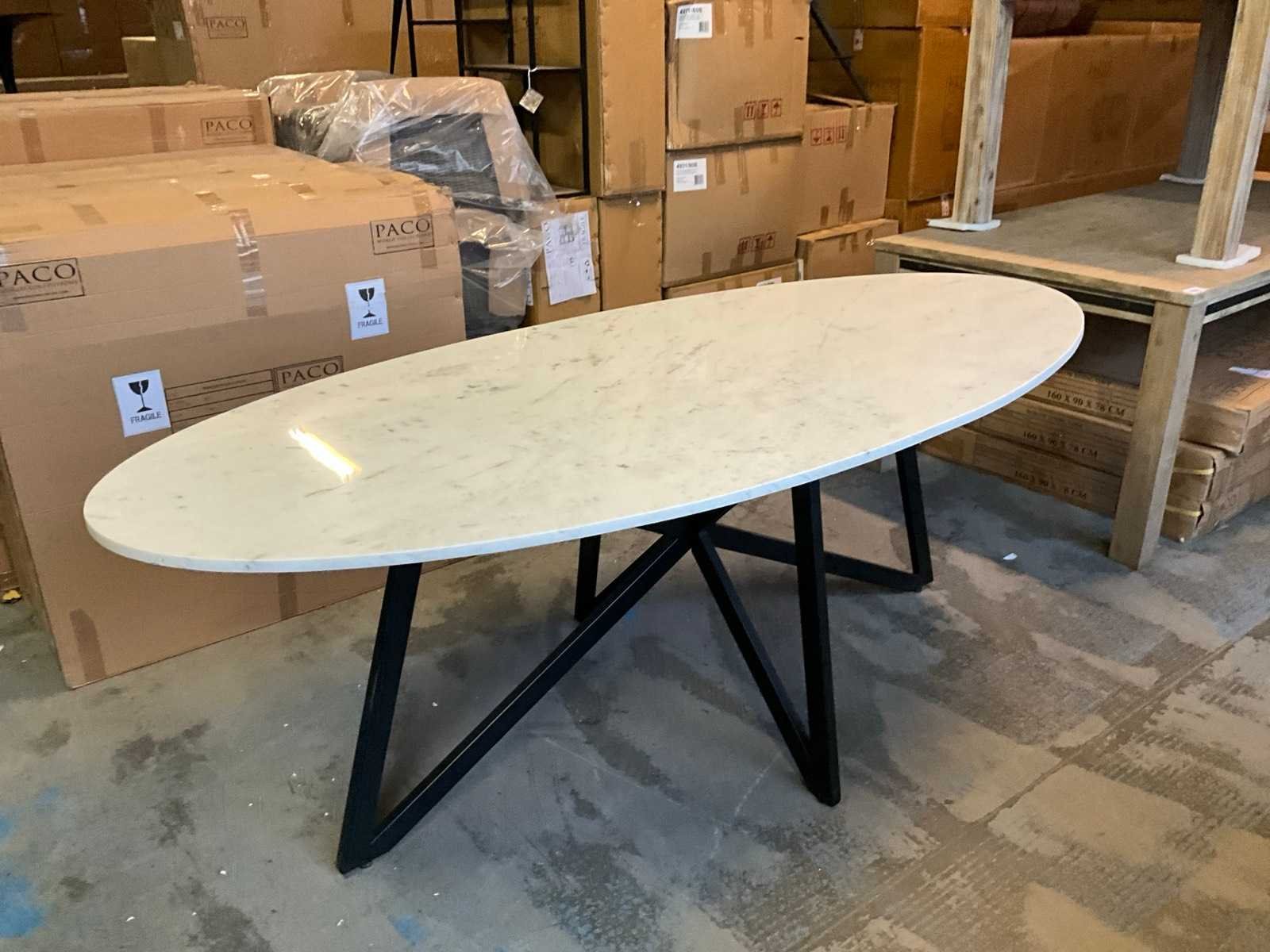 Ovale eetkamertafel met marmeren blad