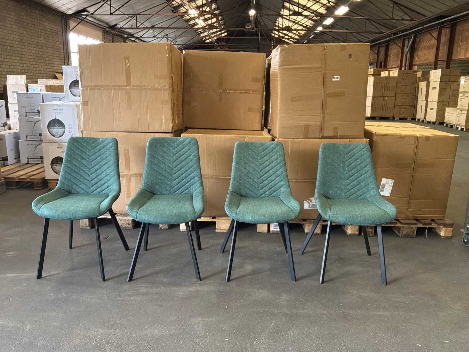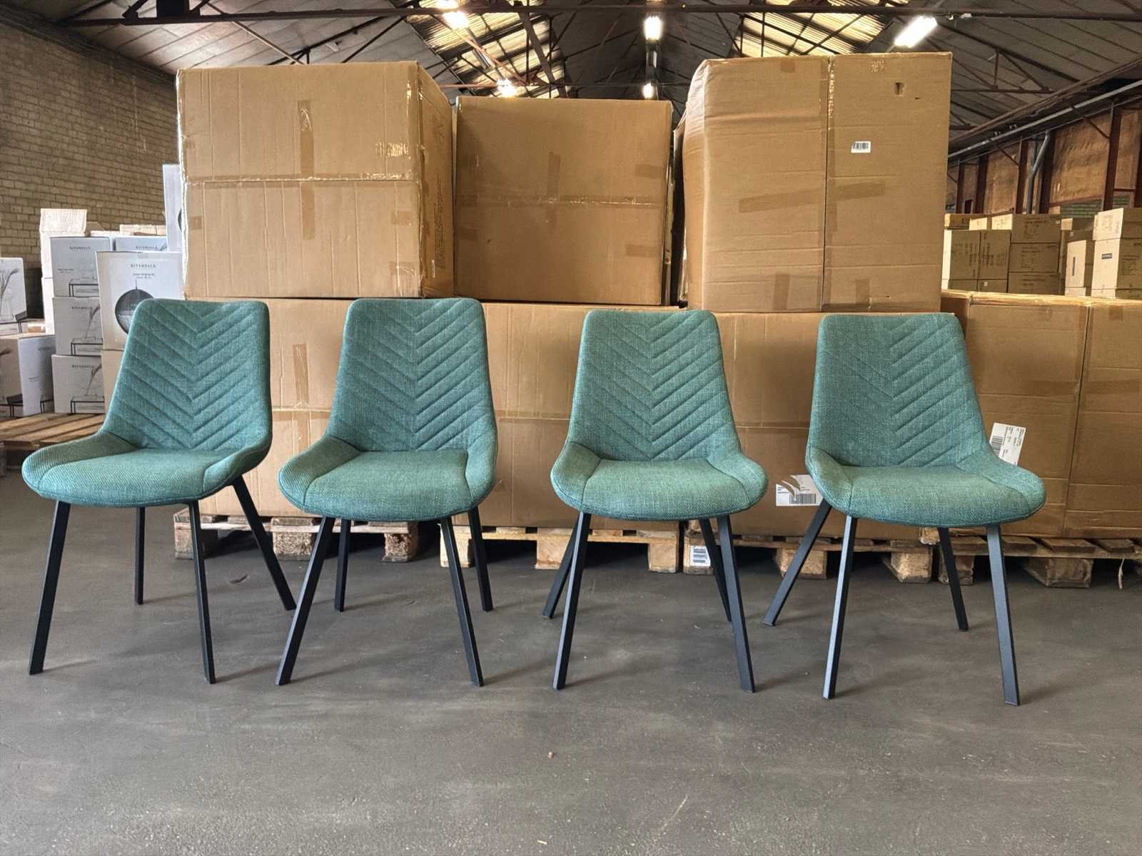 Kavel bevindt zich in doos, 4 stuks per doos. Model: Montego Kleur: Groen Materiaal: Stof