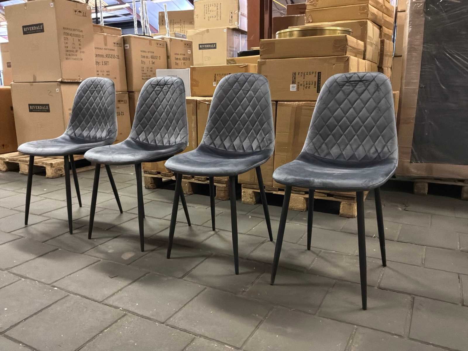 Kavel bevindt zich in doos. 4 stuks per doos, 2 dozen. Model: Florida Kleur: Grijs Materiaal: Stof
