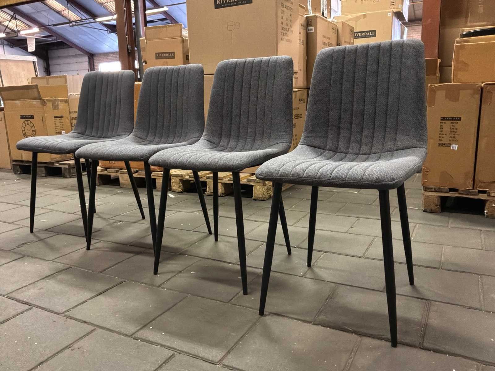 Kavel bevindt zich in doos. 4 stuks per doos. Model: Texas Kleur: Grijs Materiaal: Stof