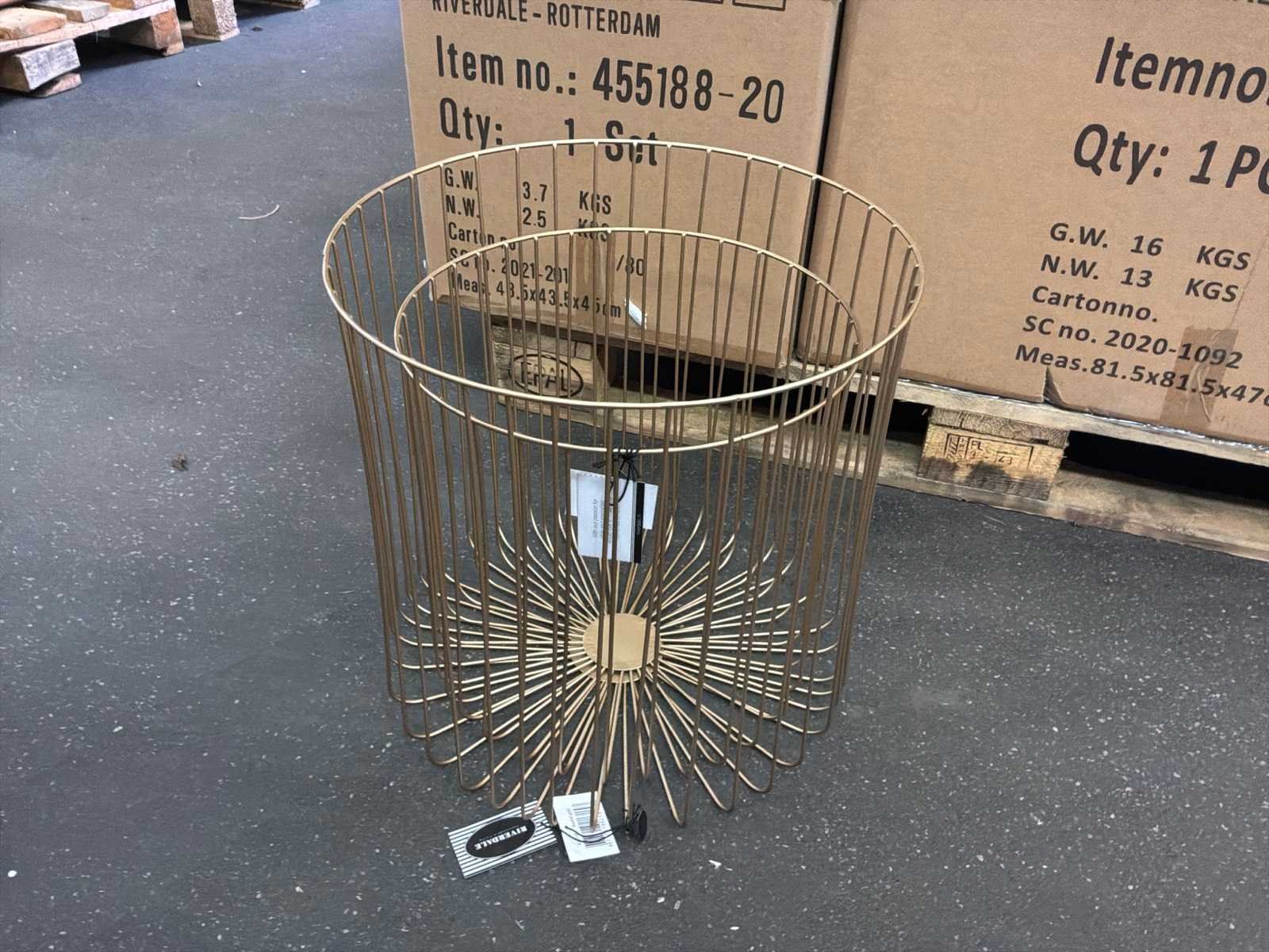 Kavel bevindt zich in doos. Merk: Riverdale Kleur: Goud Lengte: 42cm Breedte: 42cm Hoogte: 42cm