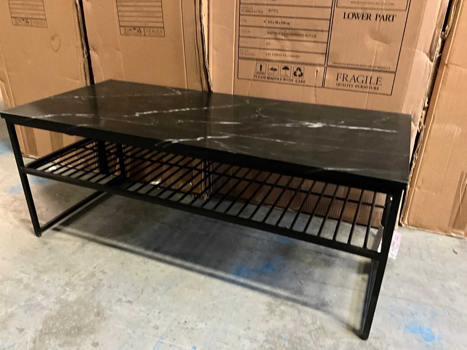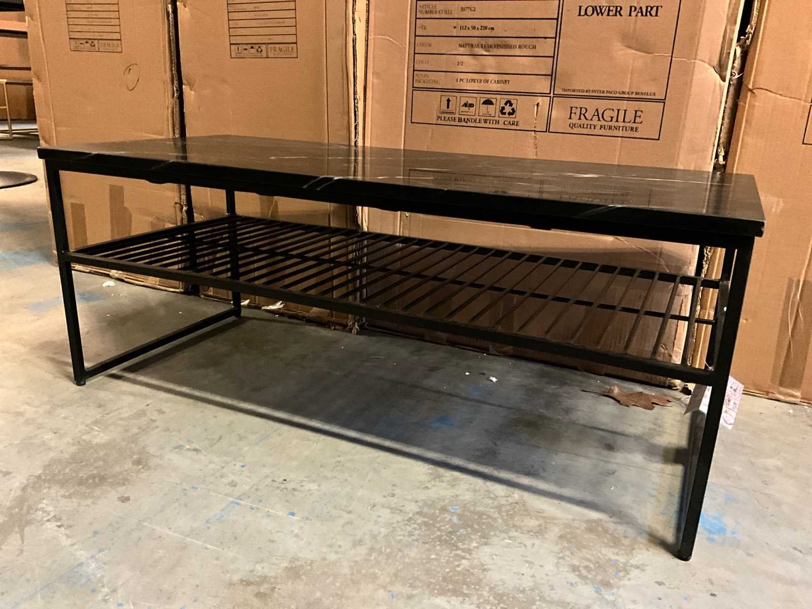 Marmeren blad Stalen onderstel Artikel bevindt zich in doos. Model: Muzes Lengte: 90cm Breedte: 40cm Hoogte: 35cm