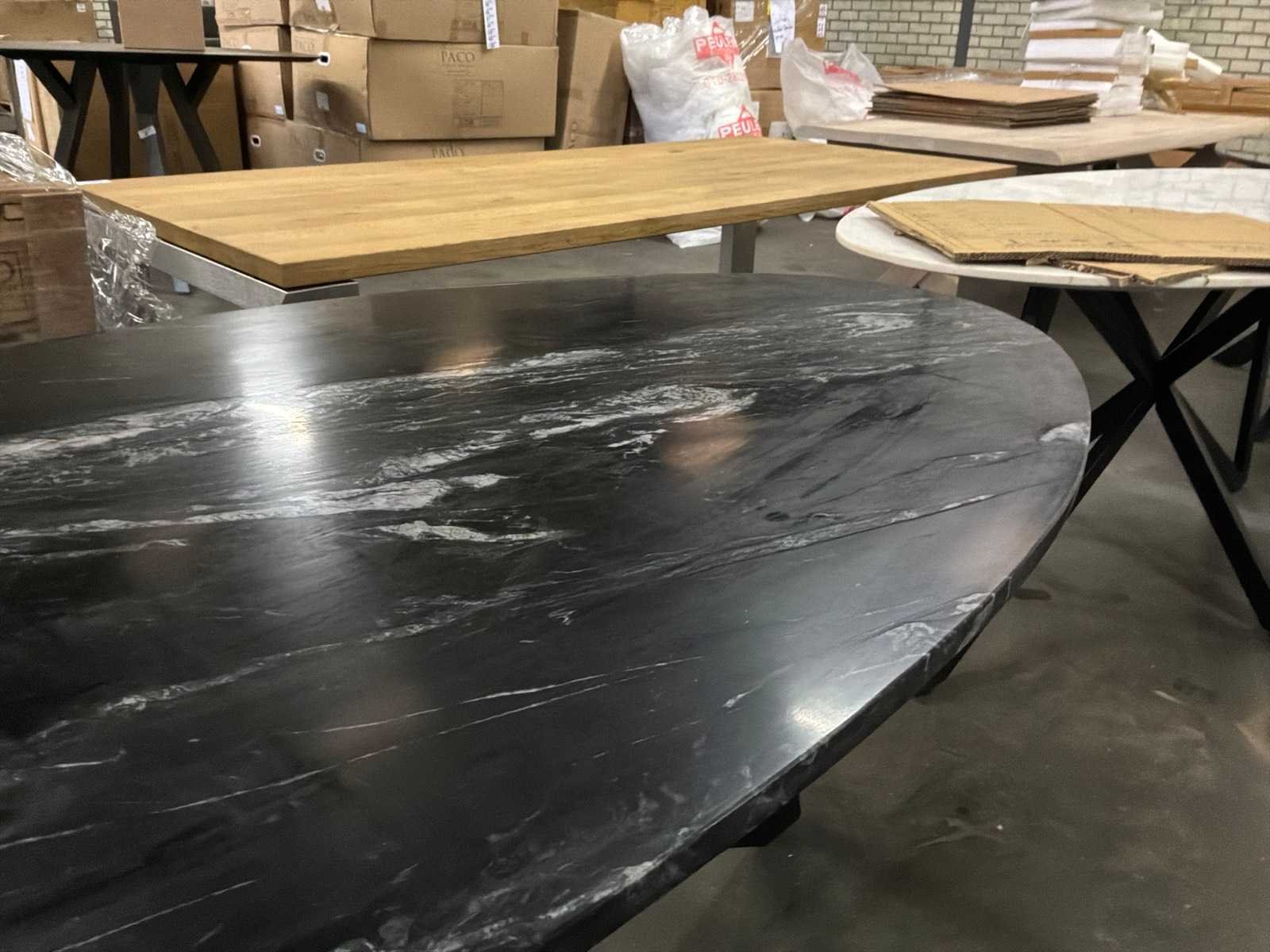 Let op! Zware uitvoering. Kavel bevindt zich in doos. 2 dozen. Model: Mondaire Kleur: Zwart Lengte: 90cm Breedte: 180cm Hoogte: 76cm Materiaal: Marmer