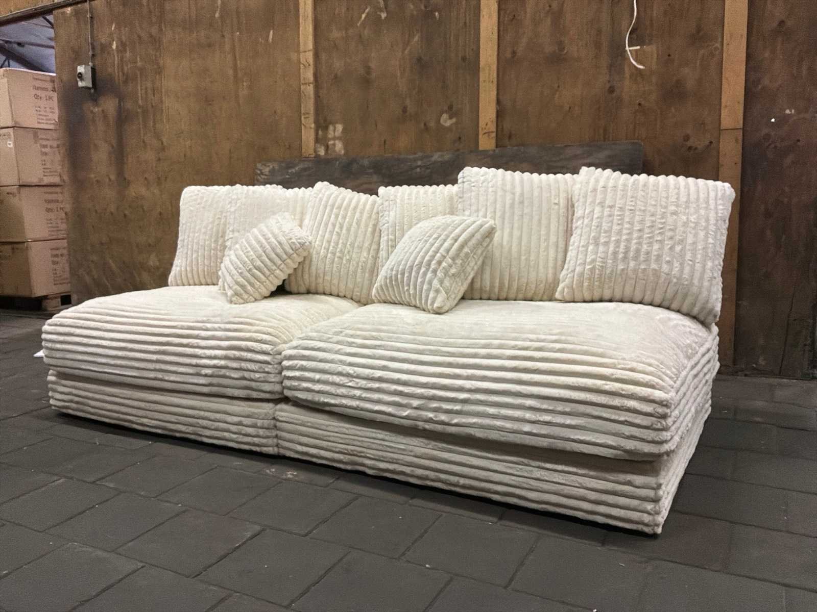 Model: Fluff Lengte: 110cm Breedte: 270cm Hoogte: 76cm Zithoogte: 50cm Diepte: 55cm Materiaal: Stof