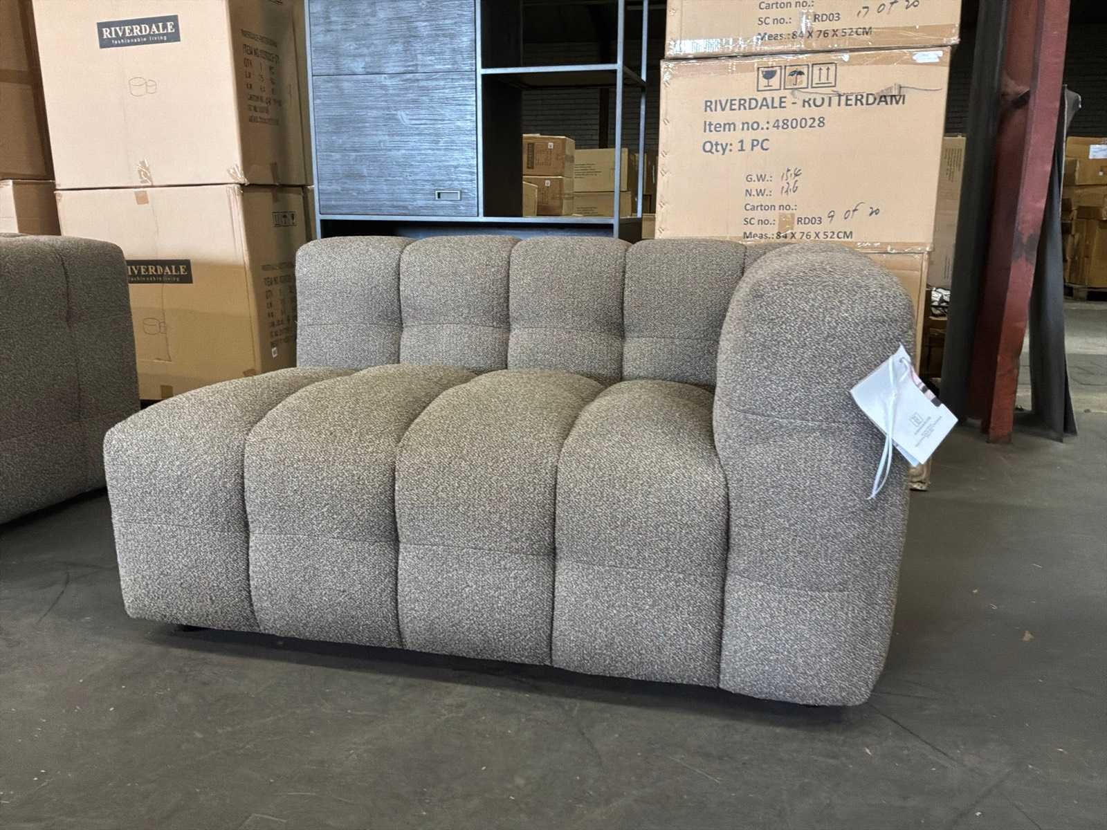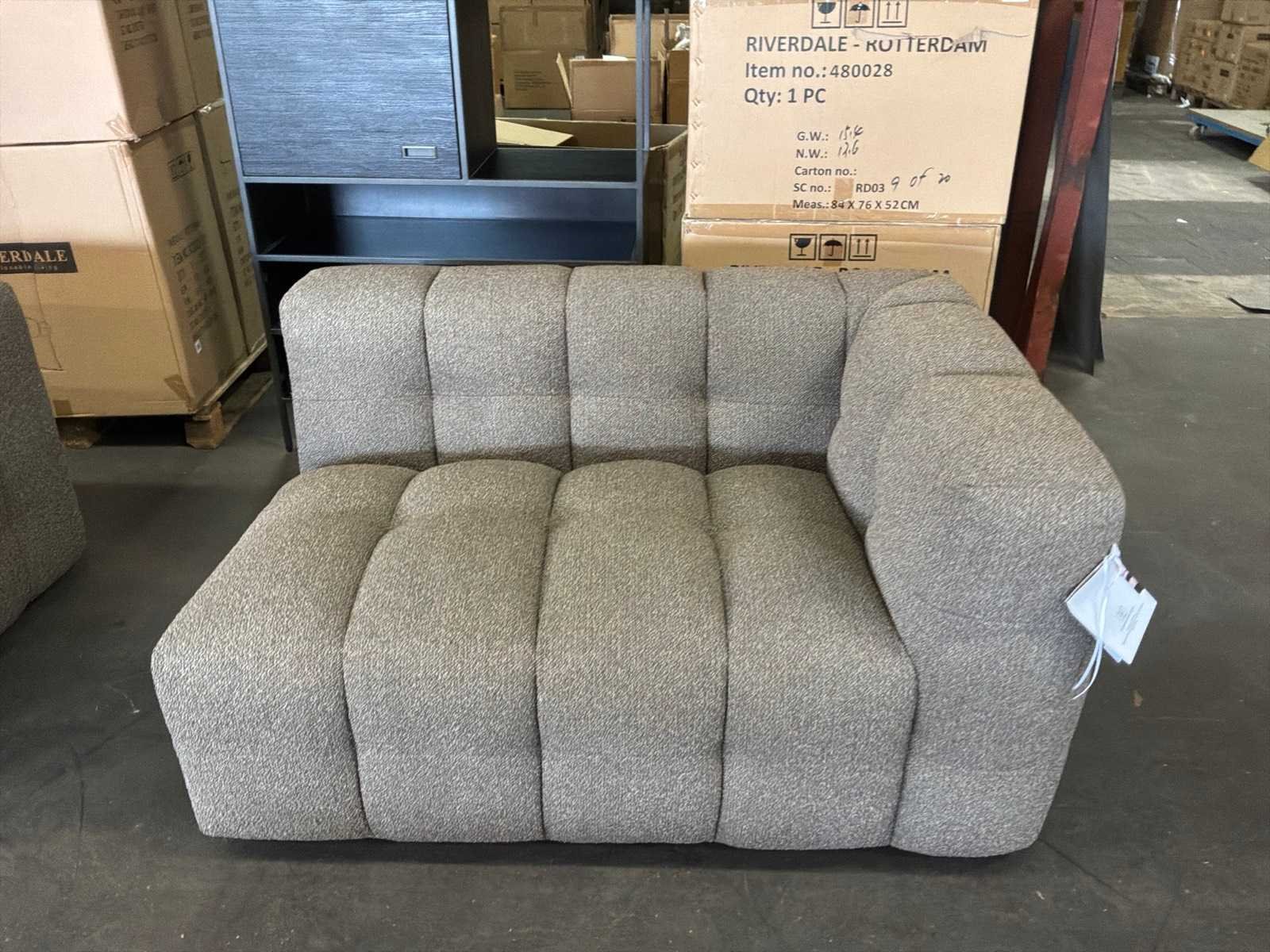 Merk: Rivièra Maison Model: Candyfloss Kleur: Bruin Lengte: 95cm Breedte: 133cm Hoogte: 68cm Zithoogte: 45cm Diepte: 60cm Materiaal: Stof