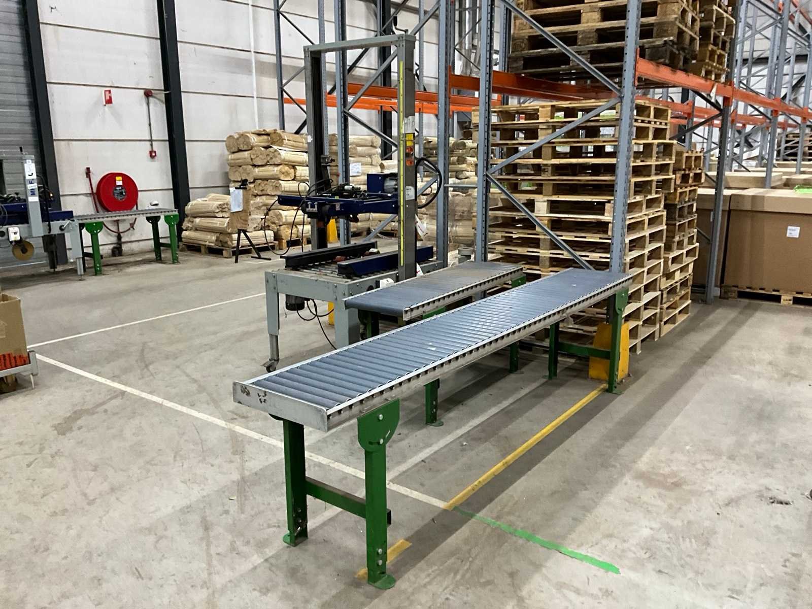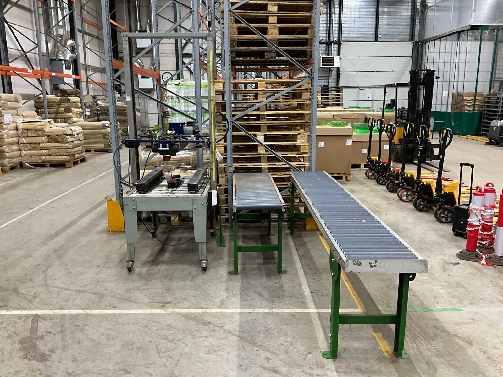 Verrijdbar; Zowel de boven- als onderkant van dozen; Doos afmetingen: Breedte: 120 - 480mm en hoogte tot circa 125cm; 600W; voorzien van 1x rollenbaan H74xB45xL150cm en 1x rollenbaan H75xB45xL300 Merk: YoungSunpack Type: MH-FJ-1A Bouwjaar: 2017 Serienummer: 170120CS1-161 Aansluiting: 230V Totale afmeting L: 1100mm Totale afmeting Breedte: 900mm Totale afmeting Hoogte: 1600mm