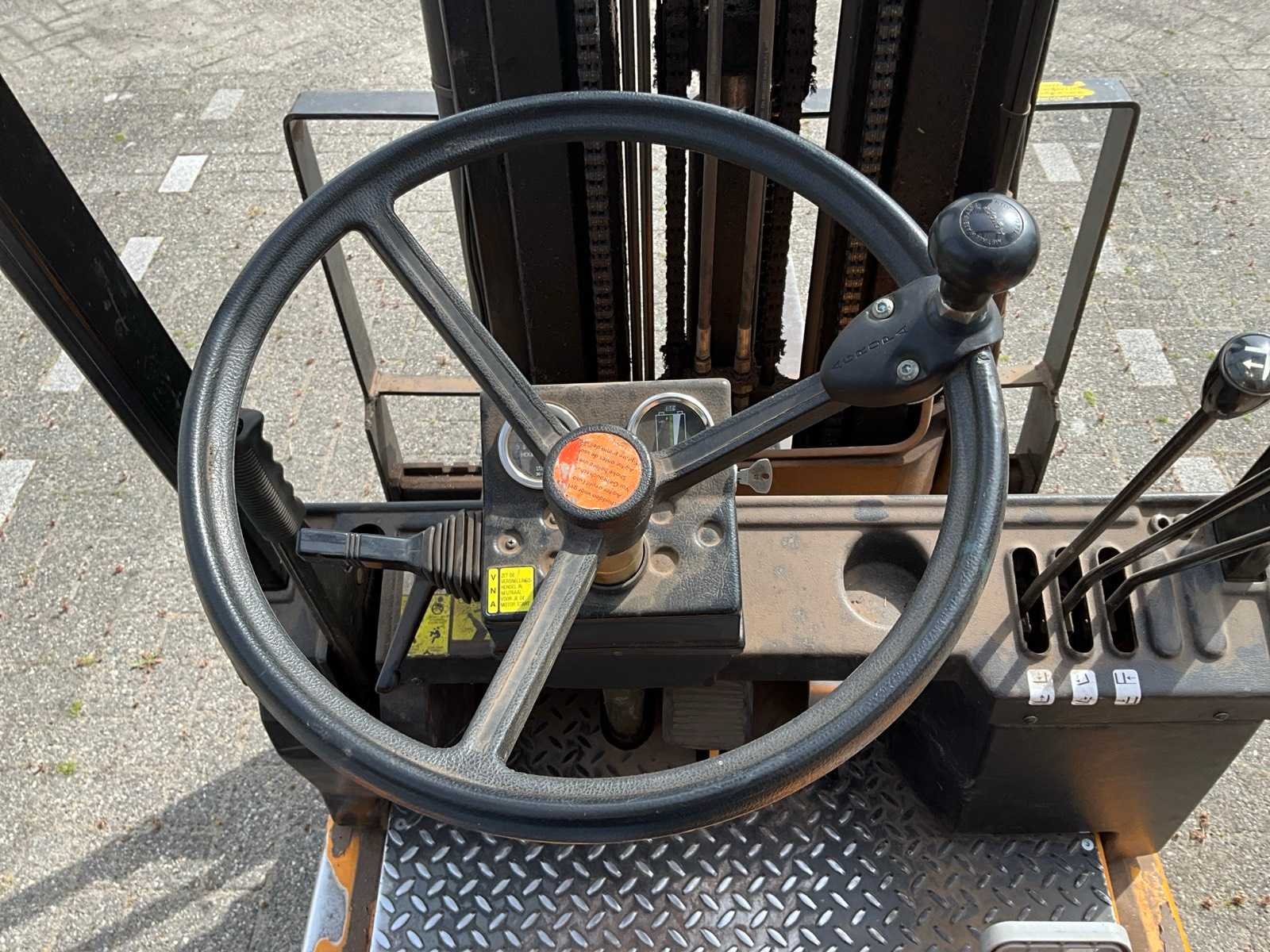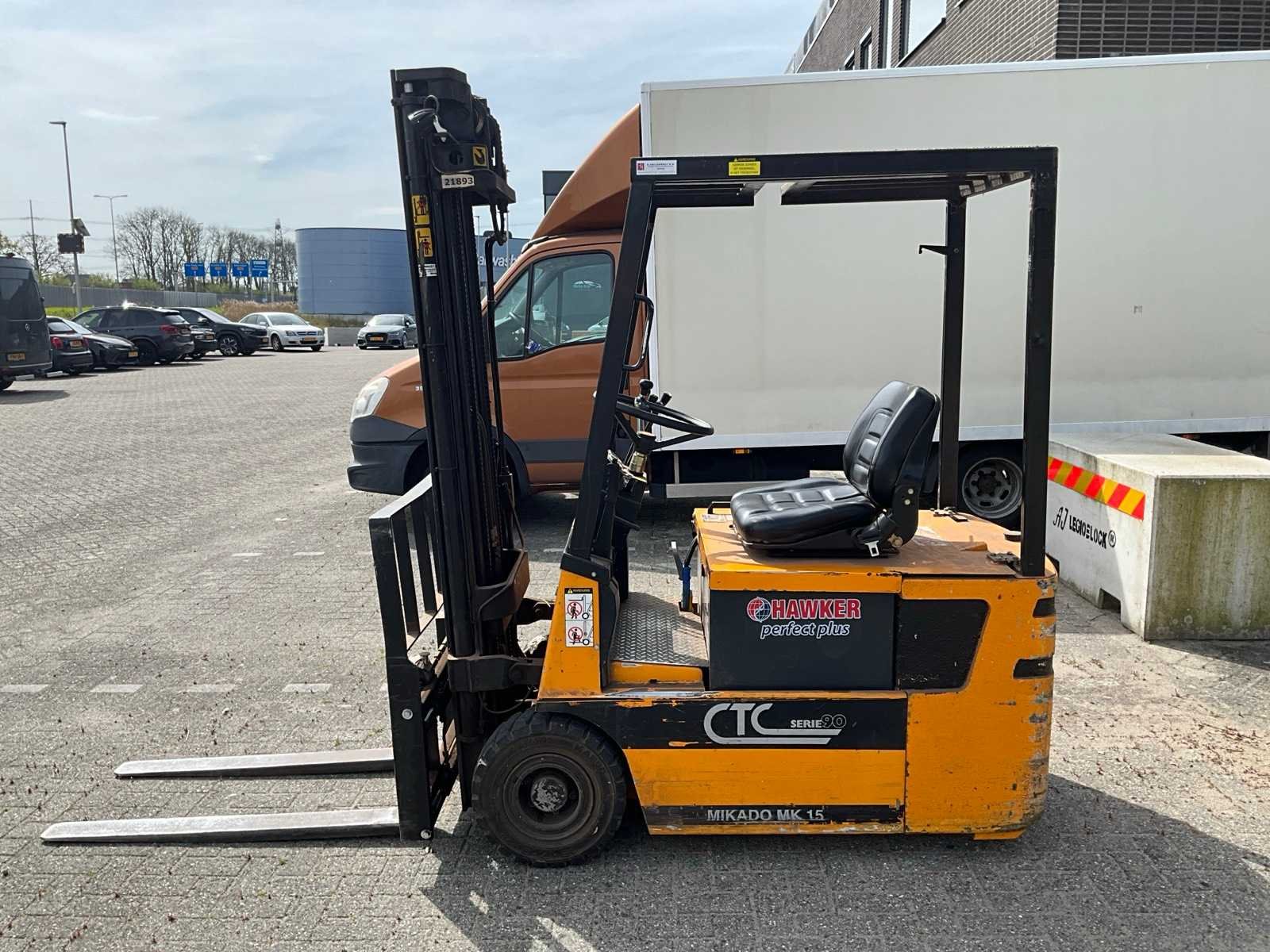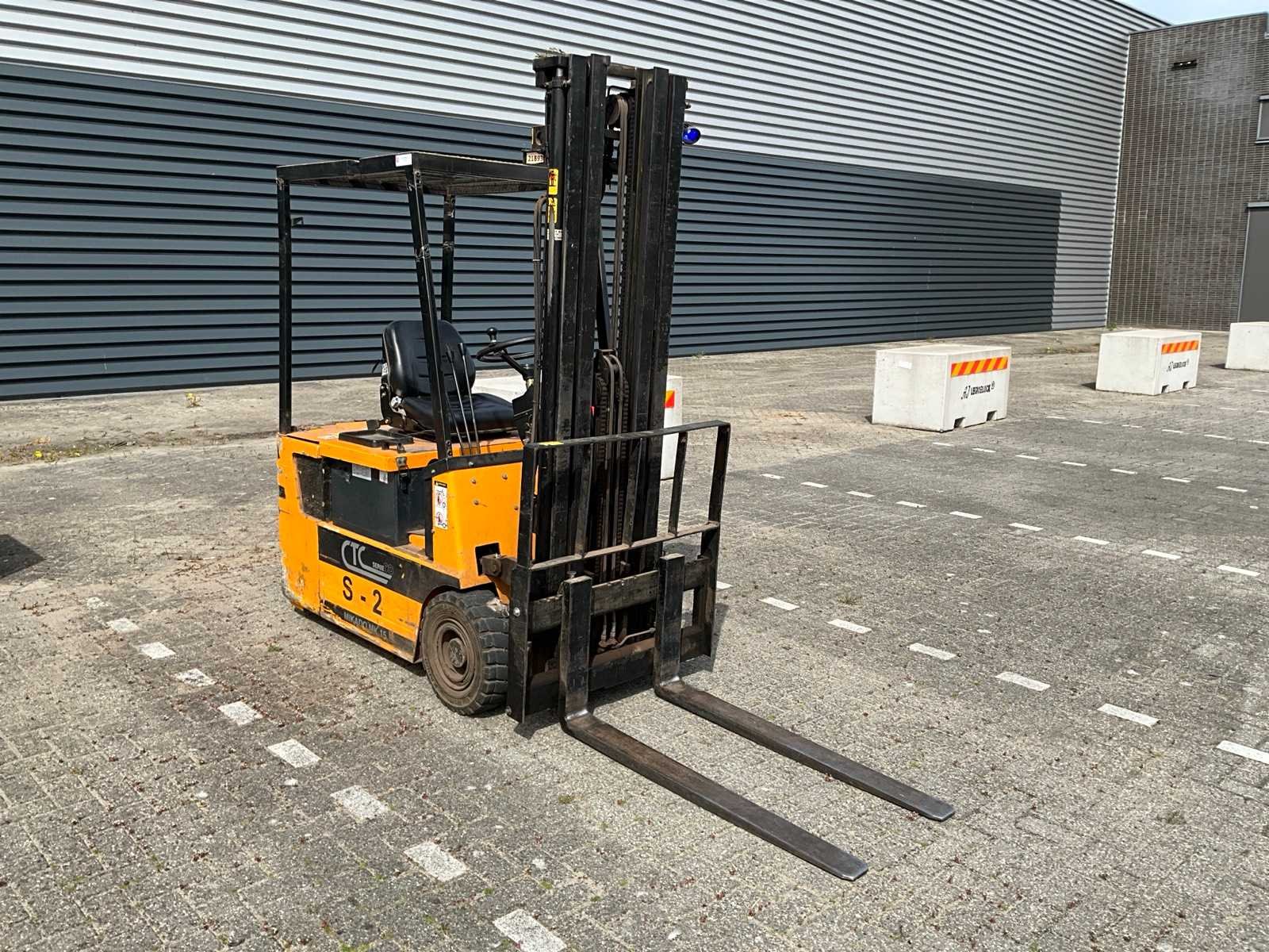 Voorzien van acculader en verlenglepelset 244cm Merk: CTC Type: MK 15 Bouwjaar: 1995 Brandstof: Elektrisch Mast: Triple Soort band: Volrubber banden Aantal wielen: 4 Afgelezen urenstand: 54823 Eigen gewicht: 2810kg Hefvermogen: 1150kg Lepellengte: 1180mm Hefhoogte: 5200mm Vol rubber banden: true Minimale doorrijhoogte: 2260mm