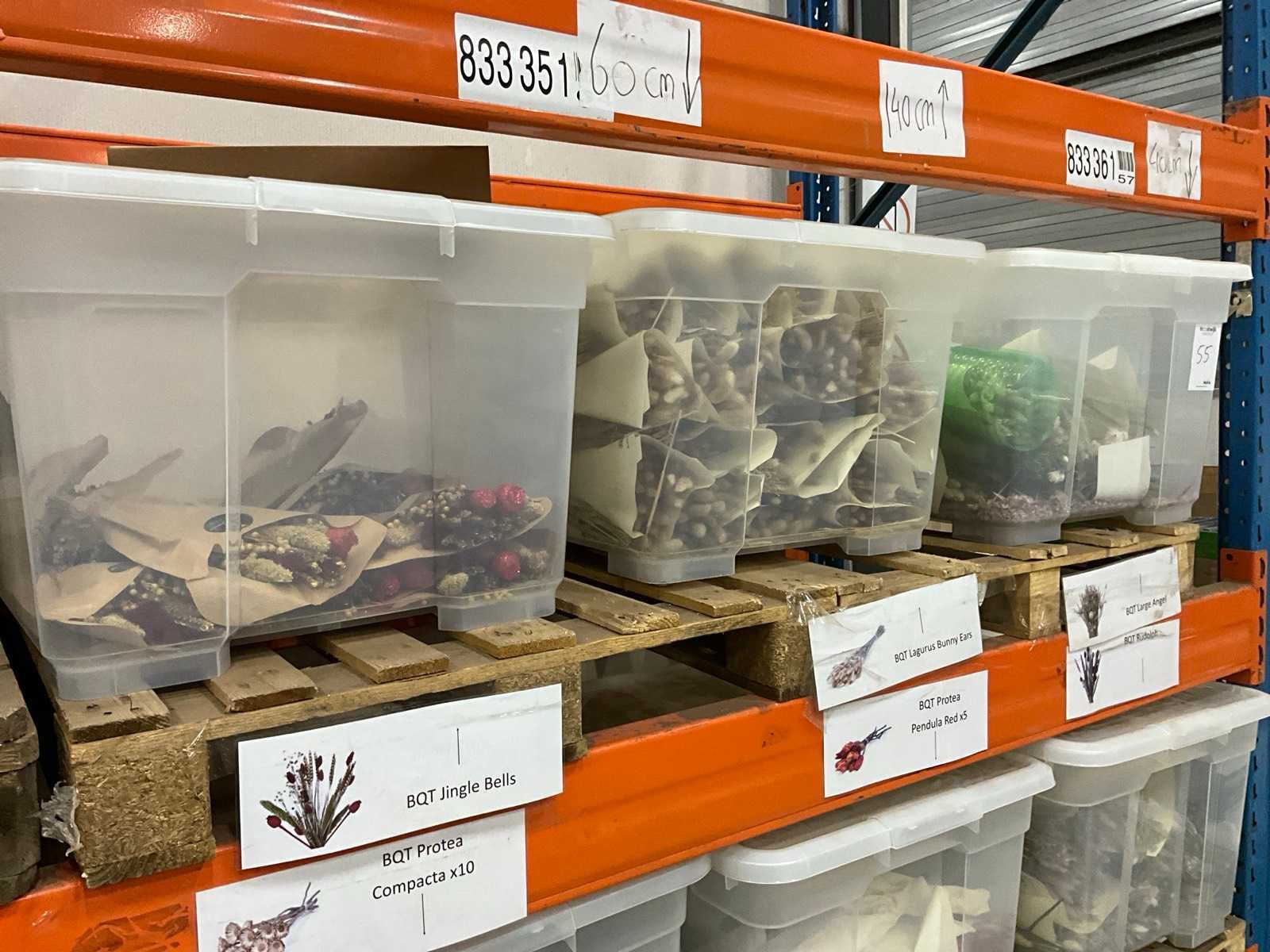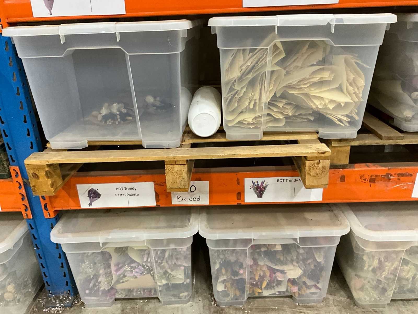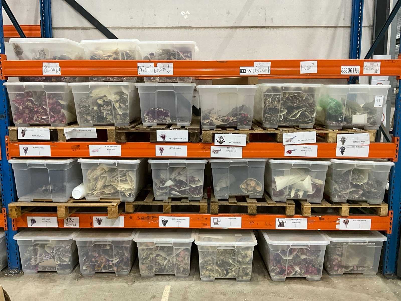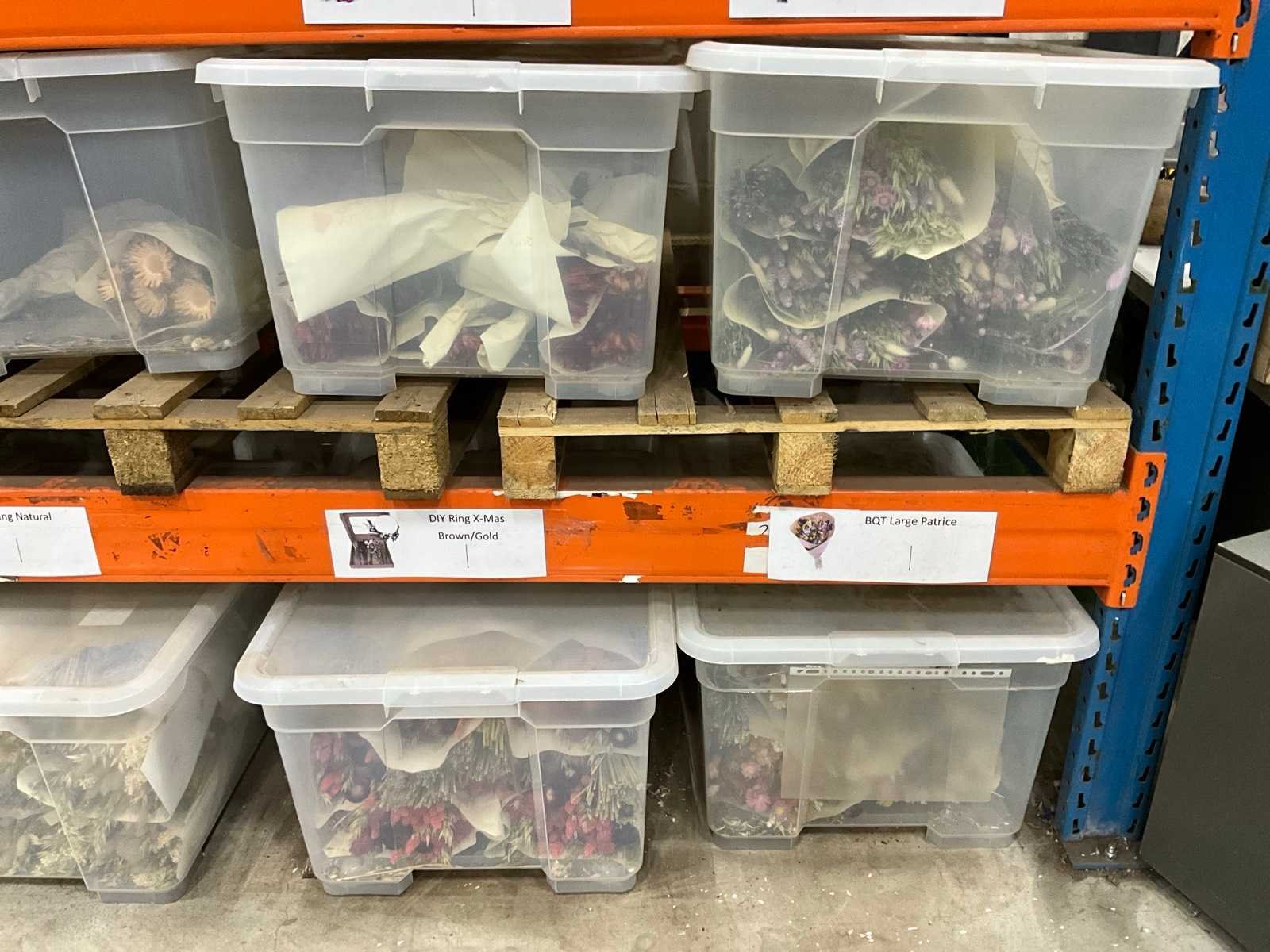 Betreft de inhoud van 1 sectie palletstelling; inclusief kunststof opbergboxen; bestaande uit diverse soorten