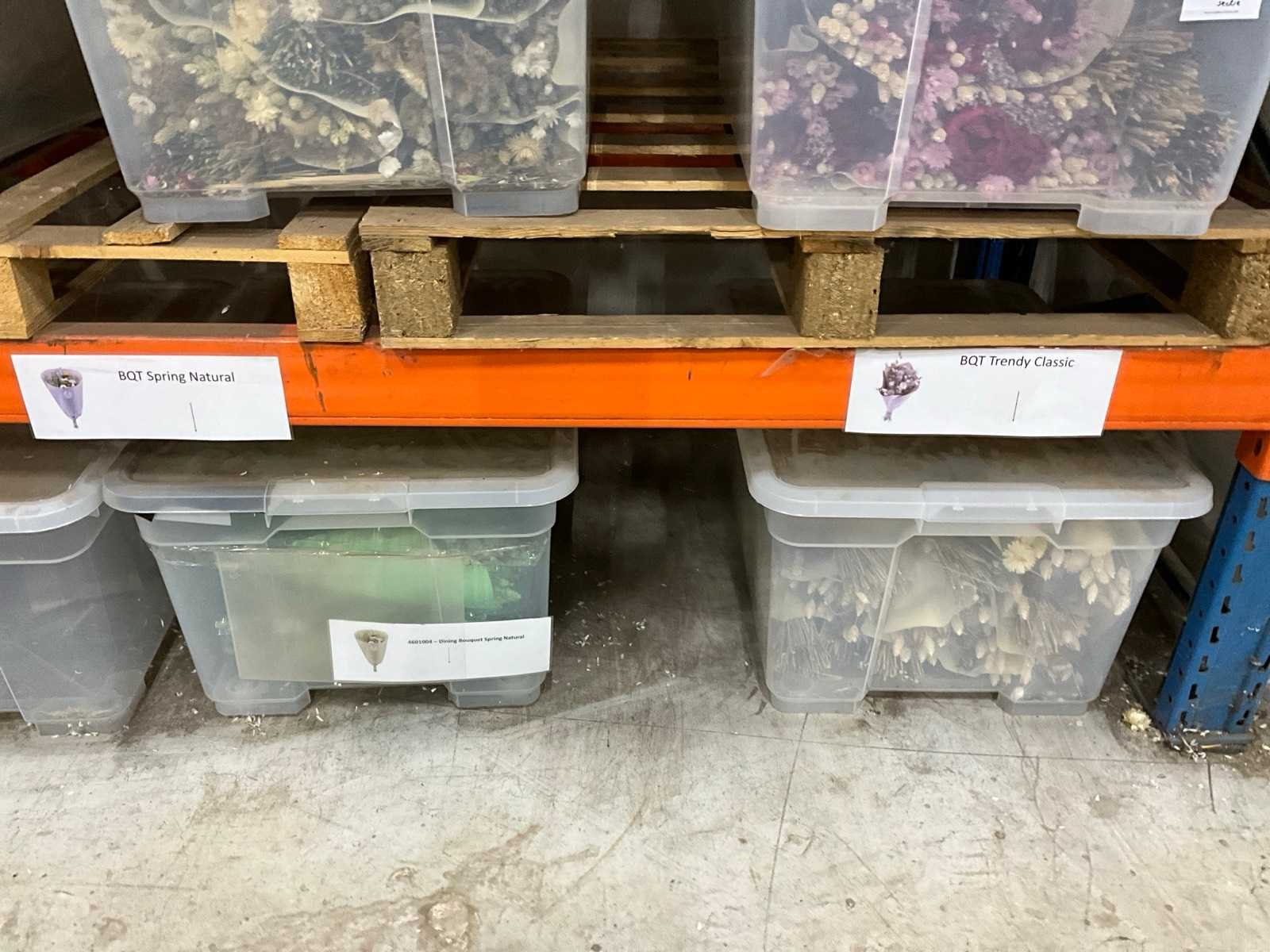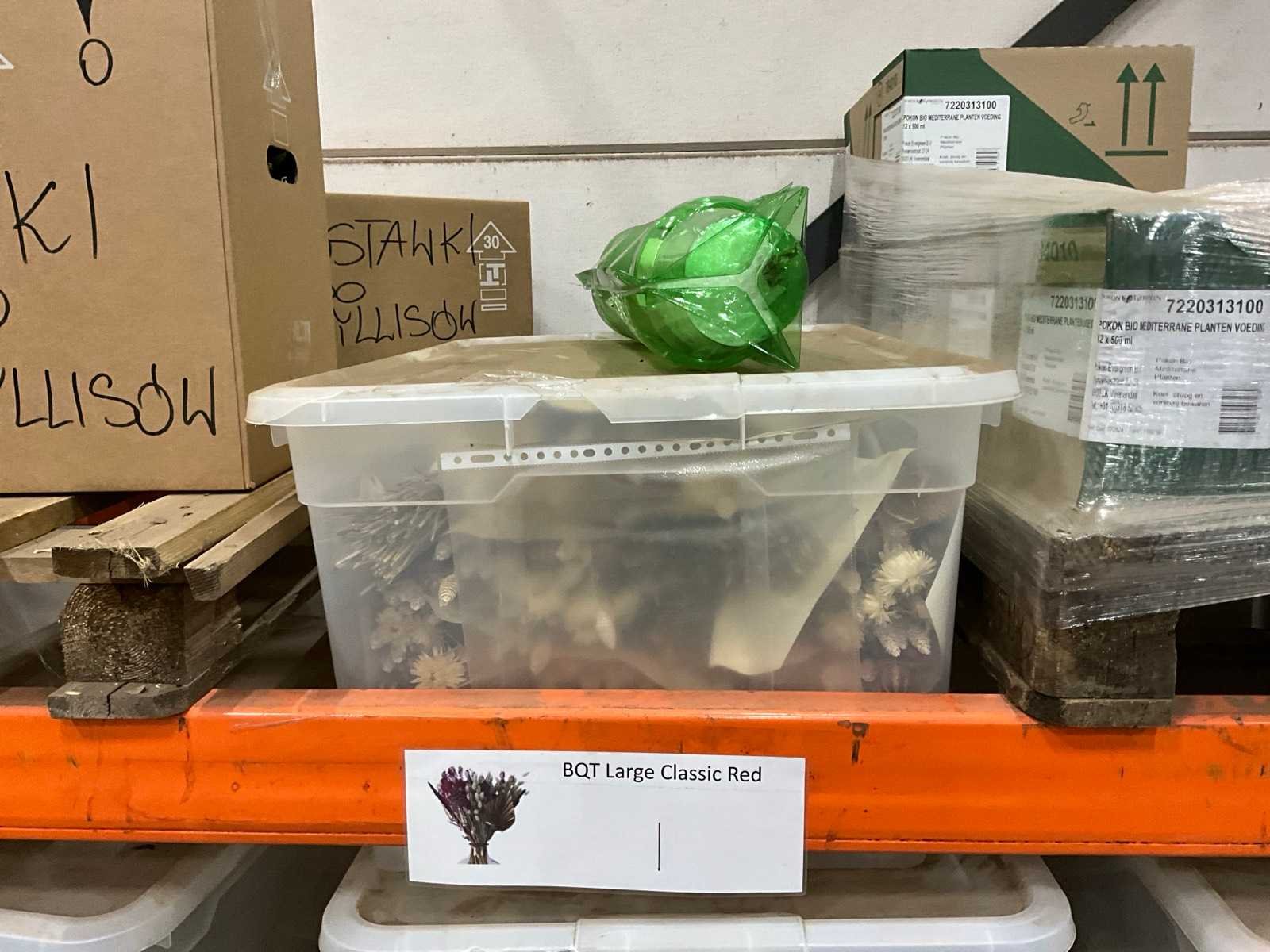 Betreft de inhoud van 1 sectie palletstelling; inclusief kunststof opbergboxen; bestaande uit diverse soorten
