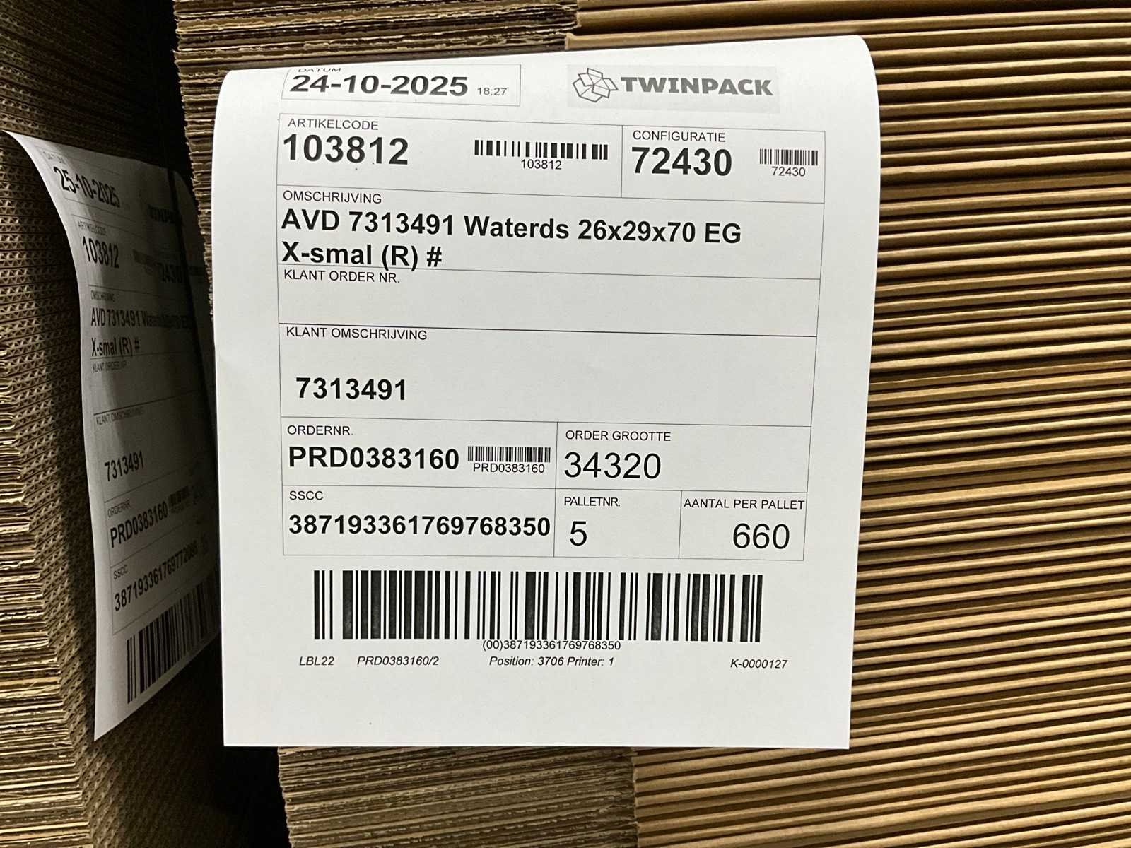 Op 2 pallets Merk: Twinpack Afmeting h: 700mm Afmeting l: 260mm Afmeting b: 290mm
