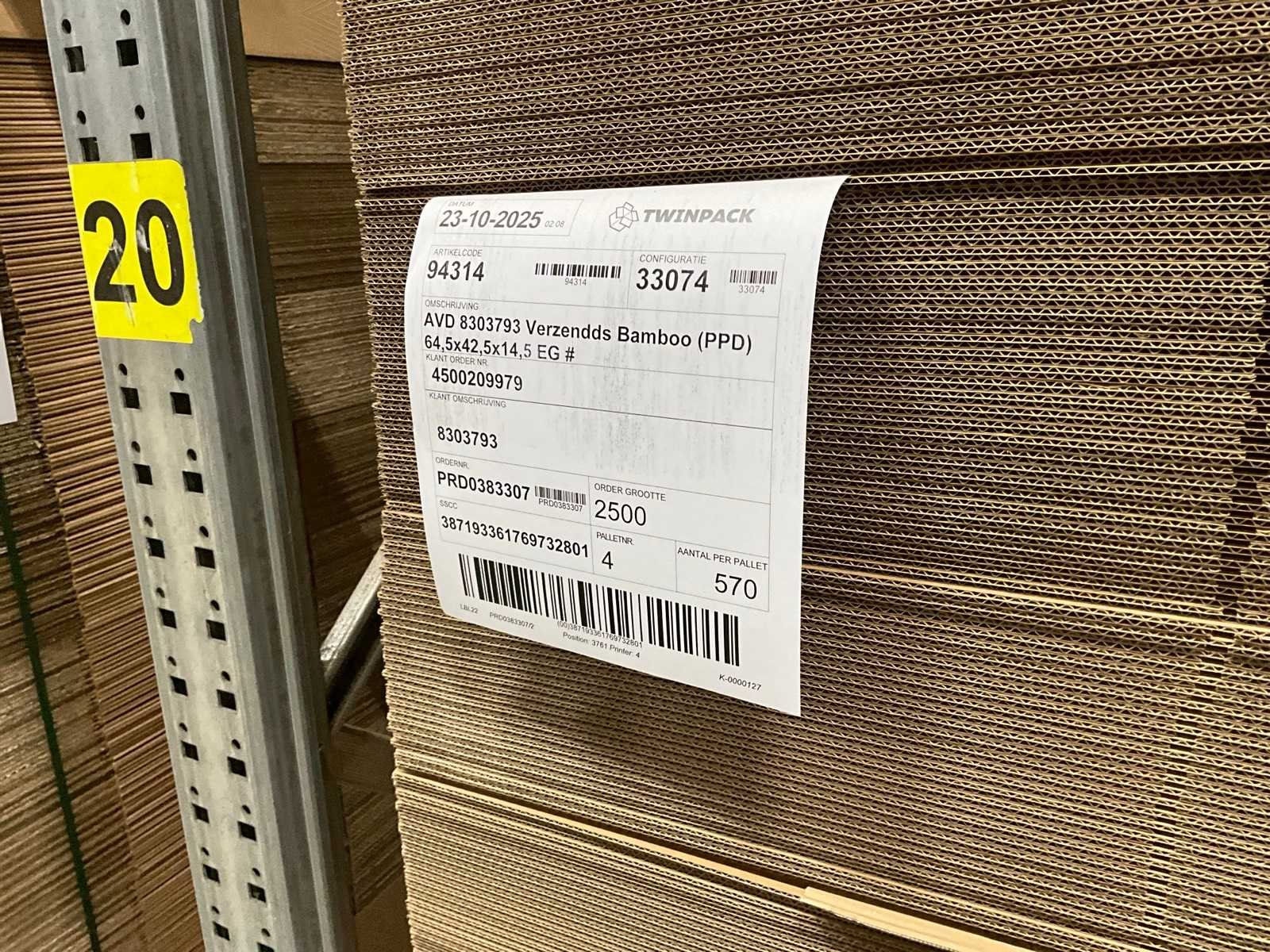 Op 4 pallets Merk: Twinpack Afmeting h: 145mm Afmeting l: 645mm Afmeting b: 425mm