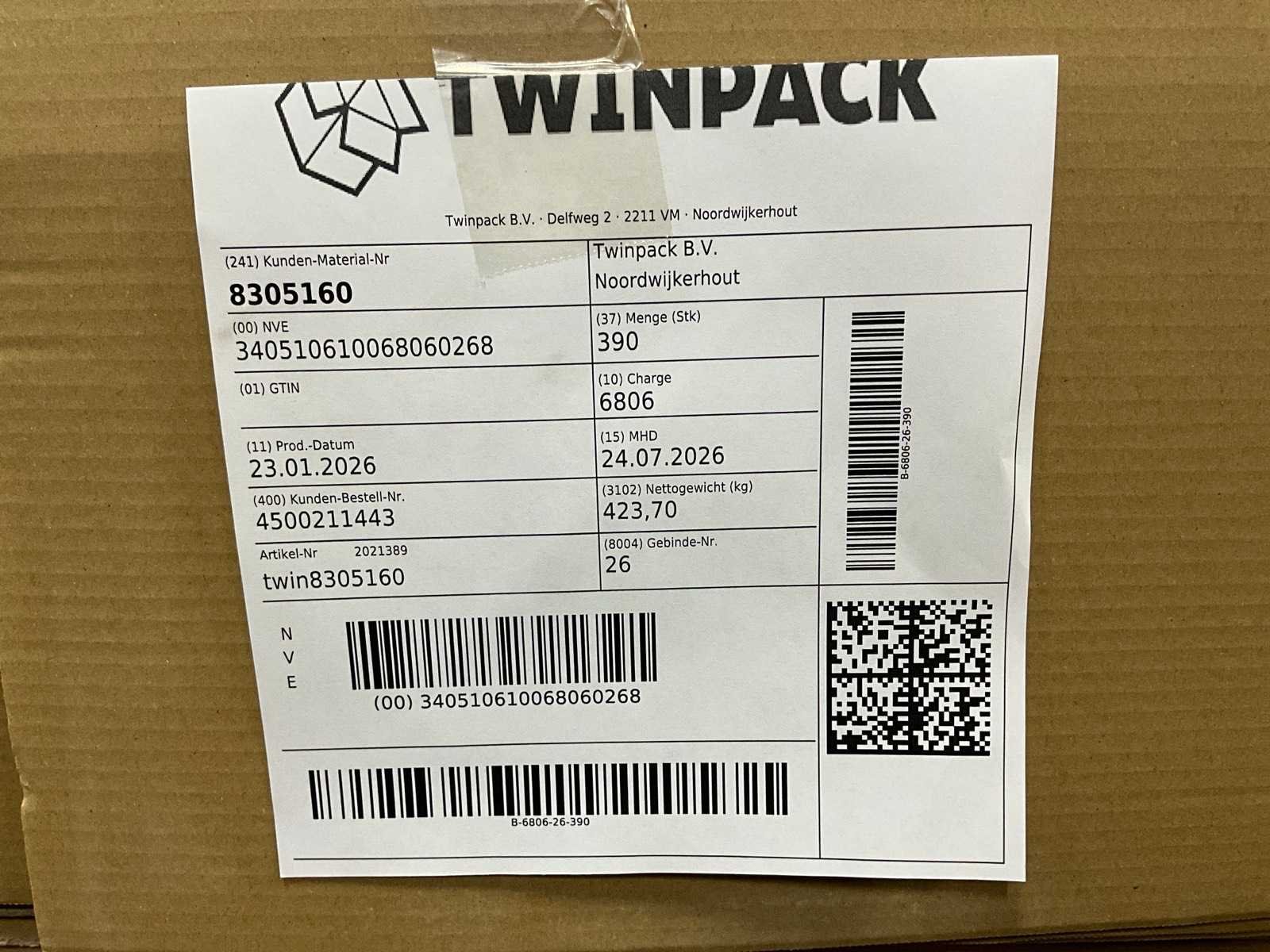 Op 17 pallets Merk: Twinpack Afmeting h: 1200mm Afmeting l: 300mm Afmeting b: 300mm