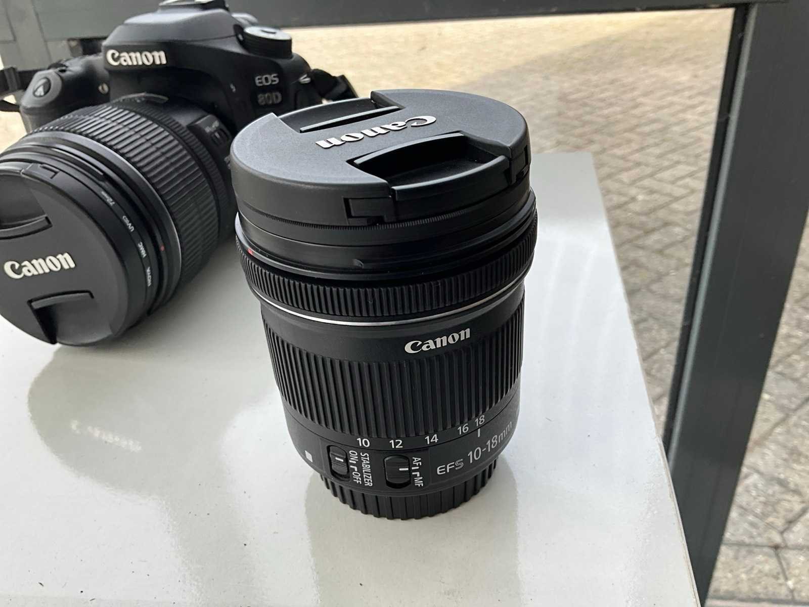 Bestaande uit: Canon EOS 80D camera, Canon EF-S 15-85MM zoomlens, Canon EFS 10-18mm image stabilizer, Canon EF Lens 50mm, Canon EFS 24mm, accu met lader, Lowepro cameratas en PrimaPhoto statief Merk: Canon Model: EOS 80D