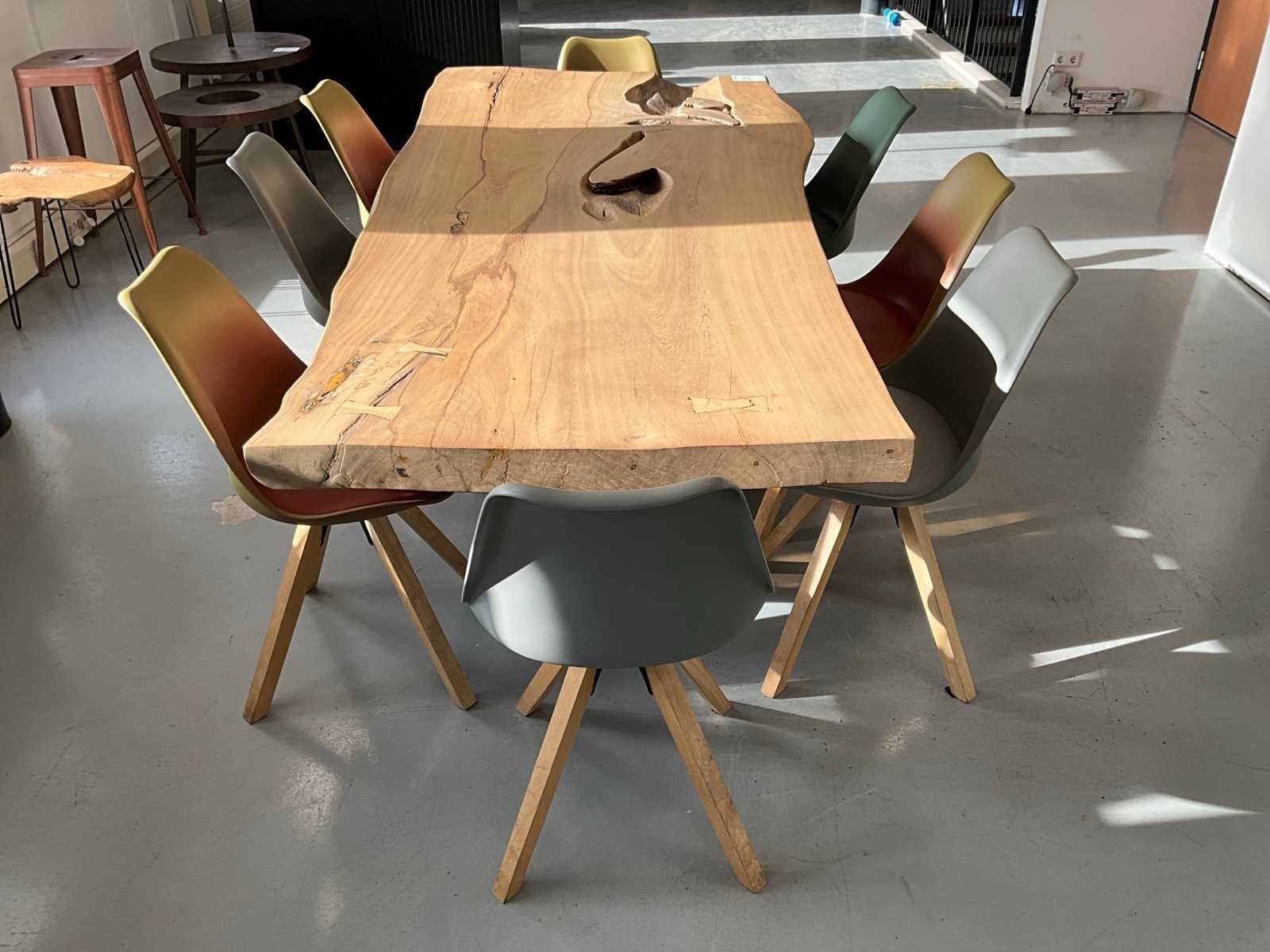 Met 11 stoelen Model: Boomstam Lengte: 235cm Breedte: 105cm Materiaal: Hout en metaal