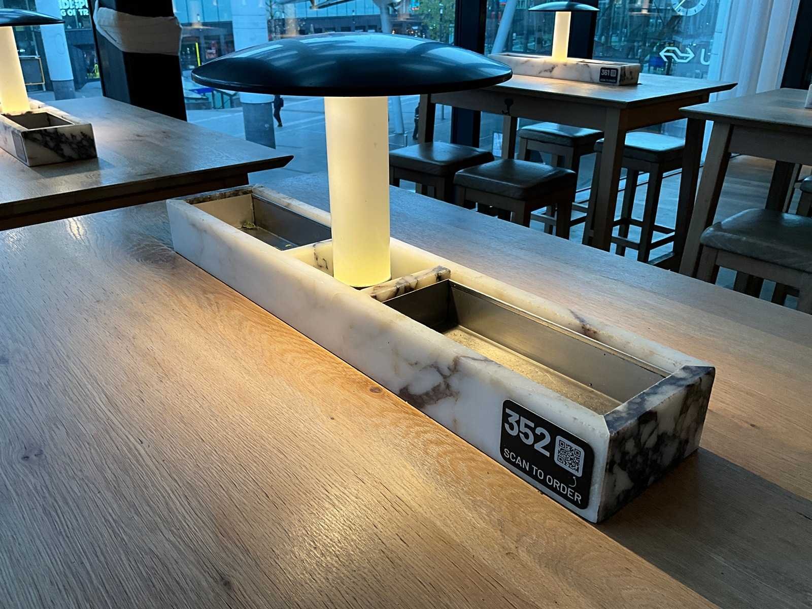 Bartafel met marmeren opbouw en verlichting. Reeds professioneel gedemonteerd en zorgvuldig getransporteerd naar de afhaallocatie. LET OP! Voor bovenstaande kunnen additionele kosten van toepassing zijn. LET OP! De LAATSTE foto’s tonen de bank(en) en/of krukken die bij de kavel geleverd worden. Deze kunnen afwijken van de bank(en) en krukken op de hoofdfoto’s. Merk: Hutten Totale afmeting L: 1200mm Totale afmeting Breedte: 800mm Totale afmeting Hoogte: 1050mm Hout: true
