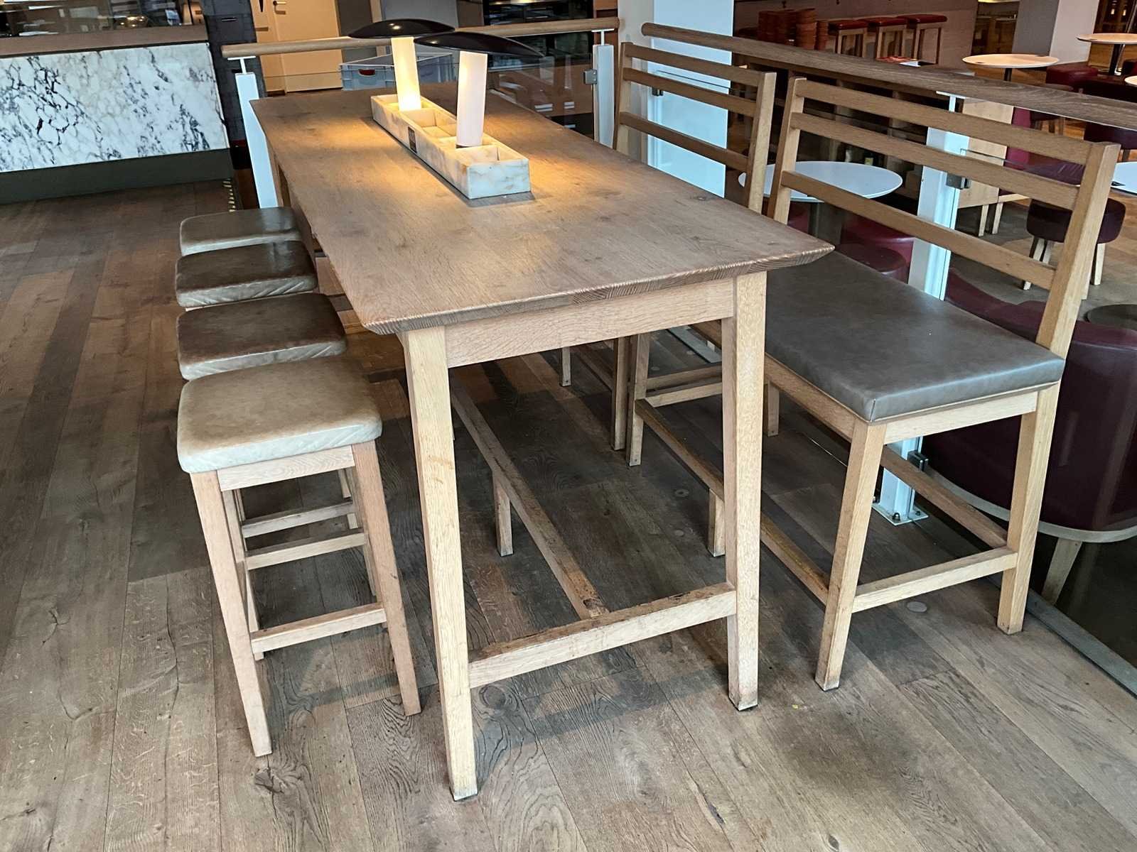 Bartafel met marmeren opbouw en verlichting. Afmeting banken: 120x50x112 cm, zithoogte 75 cm. Afmeting krukken 37x37x75 cm. Reeds professioneel gedemonteerd en zorgvuldig getransporteerd naar de afhaallocatie. LET OP! Voor bovenstaande kunnen additionele kosten van toepassing zijn. LET OP! De LAATSTE foto’s tonen de bank(en) en/of krukken die bij de kavel geleverd worden. Deze kunnen afwijken van de bank(en) en krukken op de hoofdfoto’s. Merk: Hutten Totale afmeting L: 2400mm Totale afmeting Breedte: 800mm Totale afmeting Hoogte: 1050mm Hout: true
