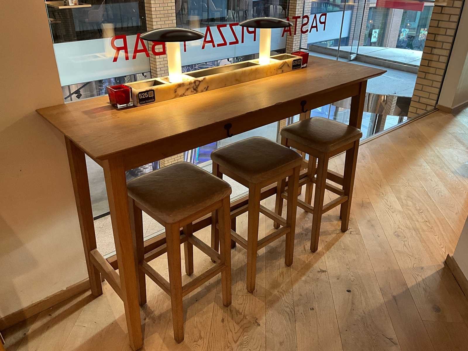 Bartafel met marmeren opbouw en verlichting. Afmeting barkrukken: 37x37x75 cm. Reeds professioneel gedemonteerd en zorgvuldig getransporteerd naar de afhaallocatie. LET OP! Voor bovenstaande kunnen additionele kosten van toepassing zijn. LET OP! De LAATSTE foto’s tonen de bank(en) en/of krukken die bij de kavel geleverd worden. Deze kunnen afwijken van de bank(en) en krukken op de hoofdfoto’s. Merk: Hutten Totale afmeting L: 1800mm Totale afmeting Breedte: 600mm Totale afmeting Hoogte: 1050mm Hout: true