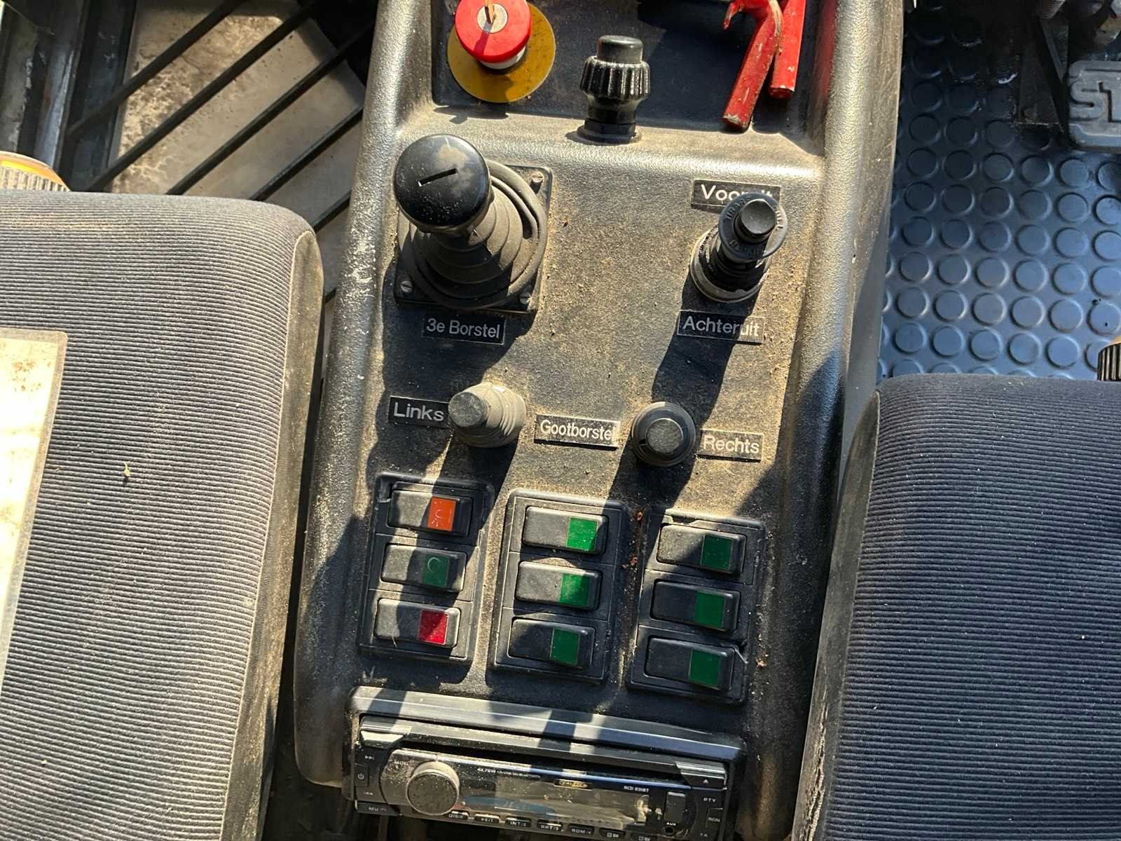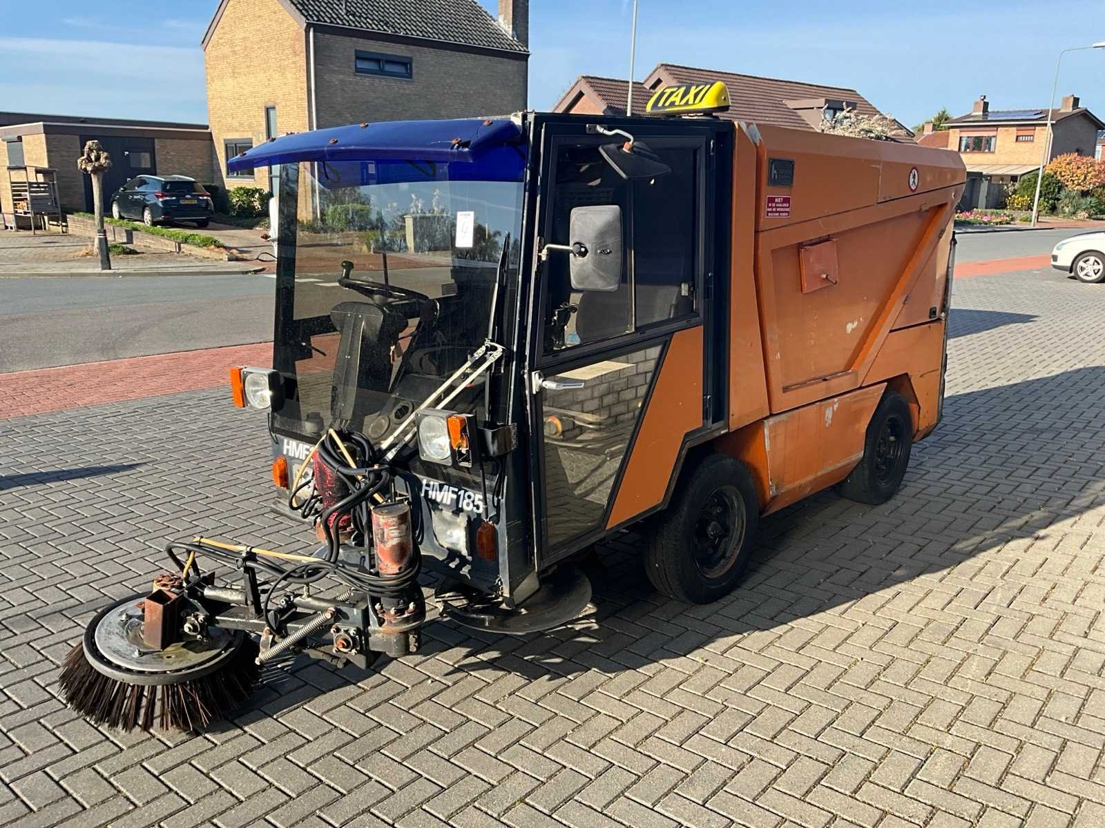 Staalborstel op hydraulische arm, 2x kantenborstel afwezig, zuigmond, automatisch smeersysteem, opvangbak hydraulisch kiepend Merk: Hofmans Type: HMF185 Bouwjaar: 1995 Serienummer: 251095 Afgelezen urenstand: 6363 Brandstofmotor aangedreven: true Brandstof: Dieswl Eigen gewicht: 2400kg Merk motor: Mercedes-benz Aantal cilinders: 4 Schoonwatertank: true Werkbreedte: 1400mm Totale afmeting L: 4500mm Totale afmeting Breedte: 1400mm Totale afmeting Hoogte: 2050mm