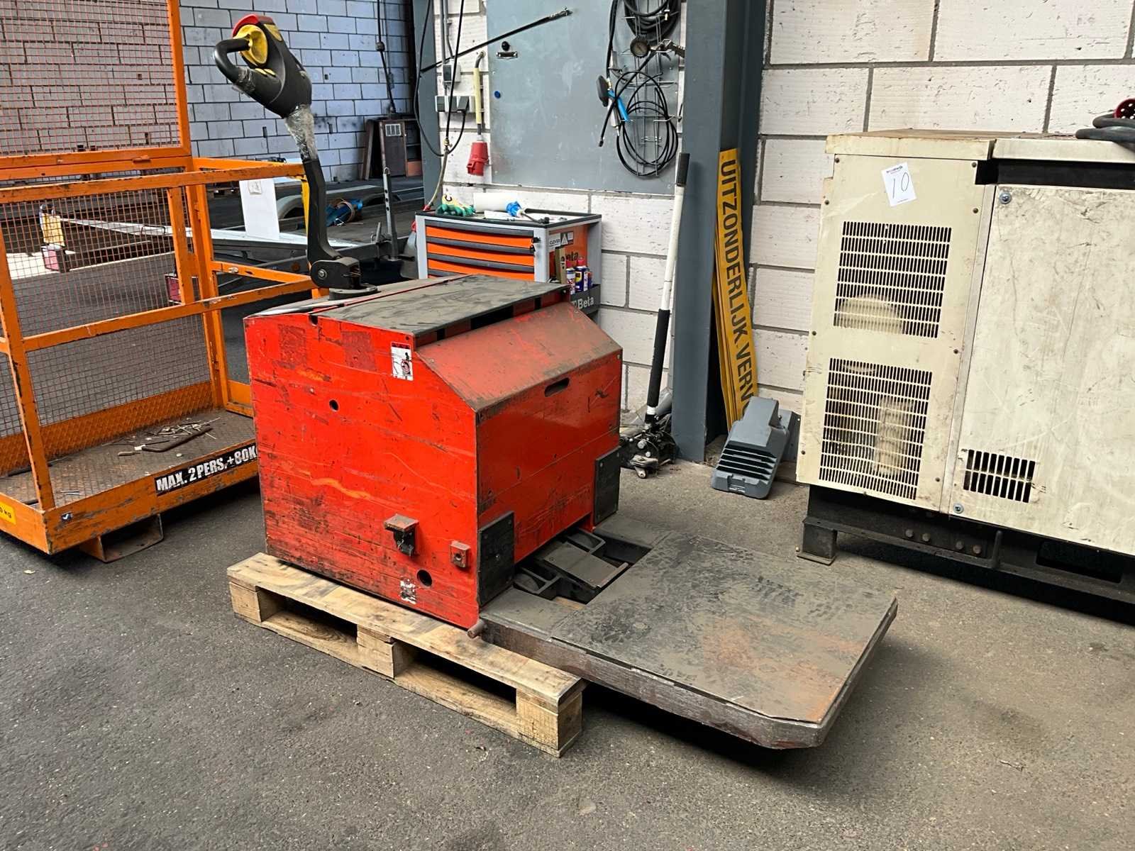 Let op: geen sleutel, geen hefplatform, 2x 12V accupakket Merk: Atl Type: LES75S Bouwjaar: 2008 Serienummer: 8-1799-1 Hefvermogen: 7500kg Eigen gewicht: 790kg Totale afmeting L: 1800mm Totale afmeting Breedte: 800mm Totale afmeting Hoogte: 1500mm