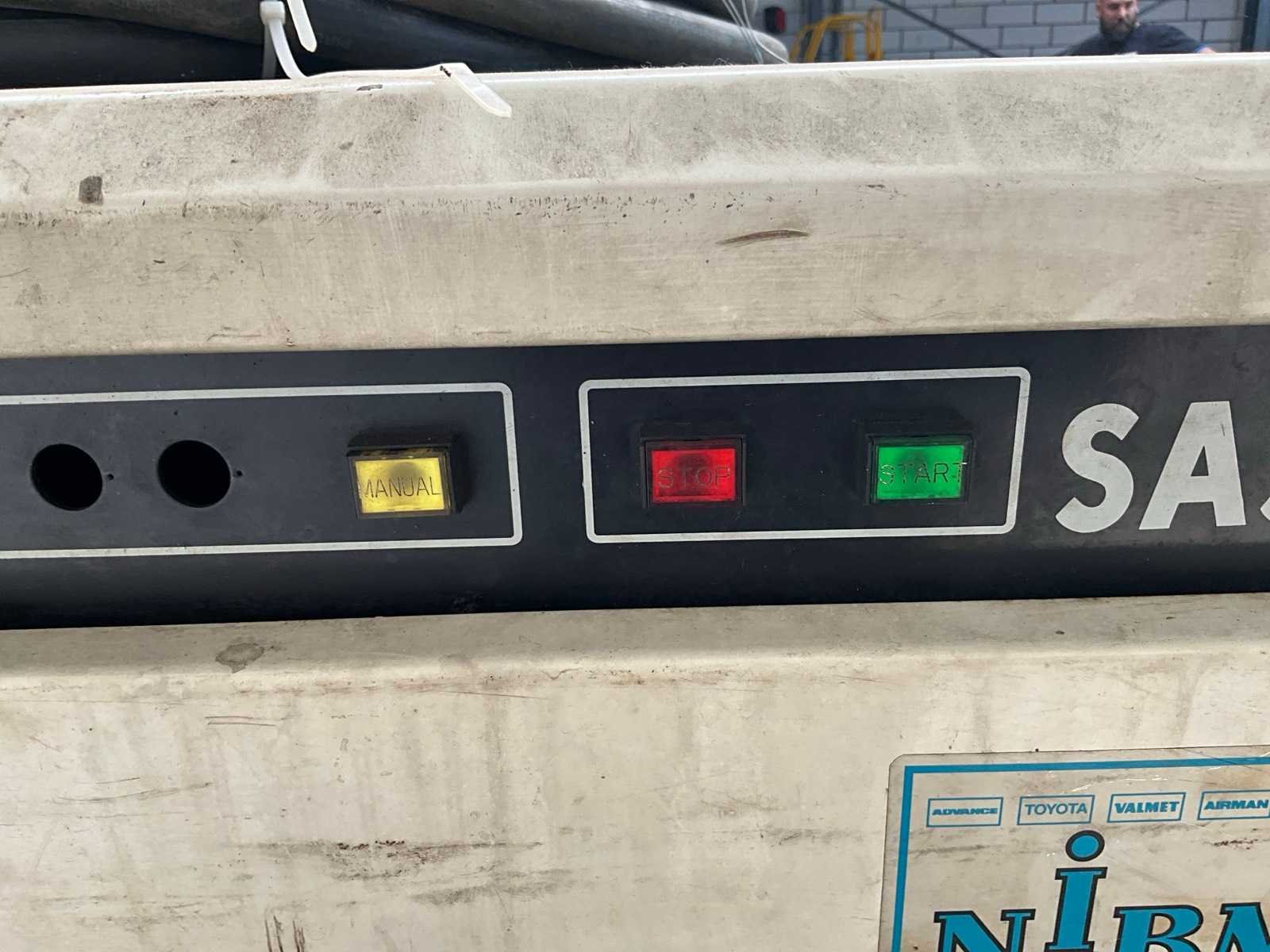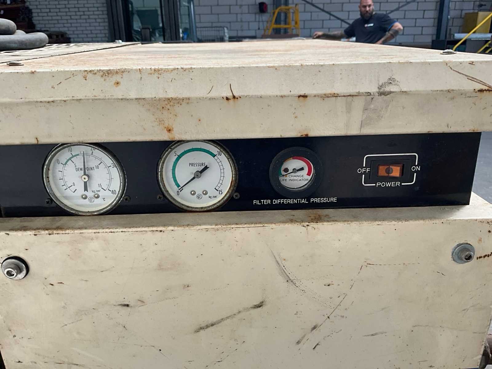 Luchtdroger model AC’S22B, 147kg, 3,7m3/min capaciteit; 63A 400V stekker, klauwkoppeling luchtuitlaat Merk: Airman Type: SAS22P-54 Serienummer: 252P-00708 Capaciteit.: 8.5bar Luchtstroom: 3000l/min Vermogen: 22kW Afgelezen urenstand: 36003hr Luchtdroger: true Aansluiting: 400V Eigen gewicht: 670kg Totale afmeting L: 2000mm Totale afmeting Breedte: 850mm Totale afmeting Hoogte: 1350mm