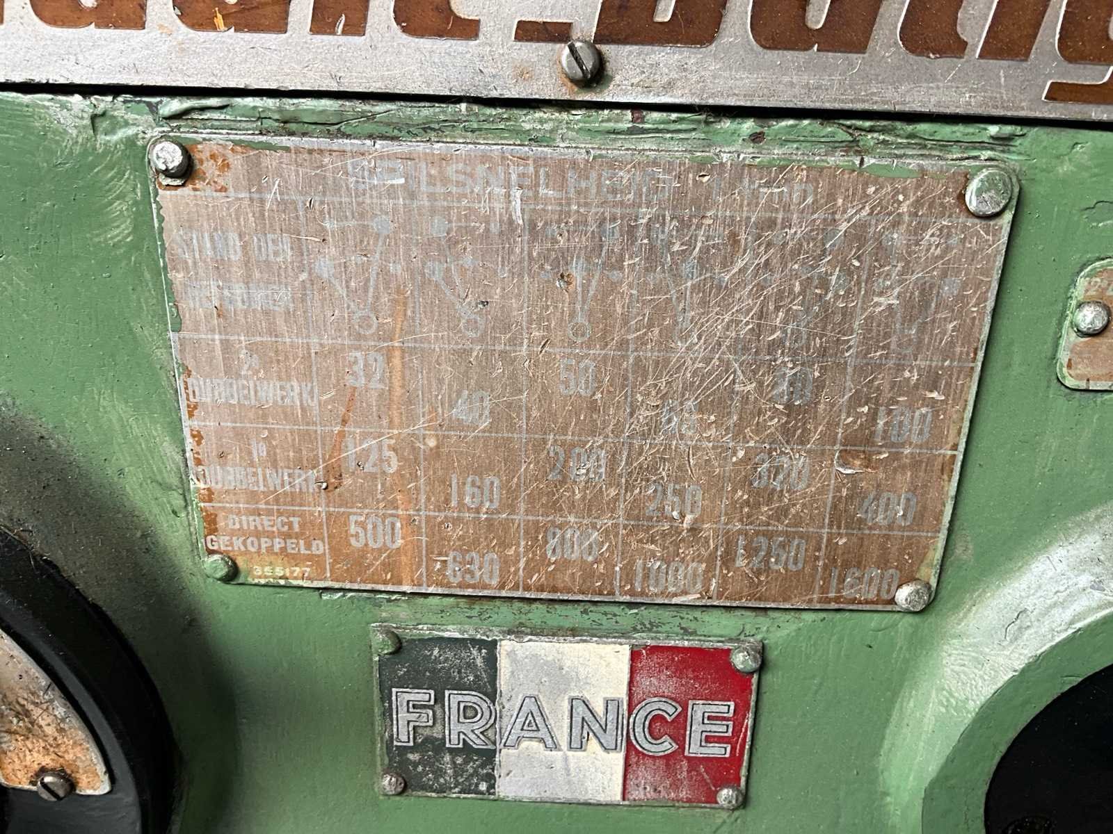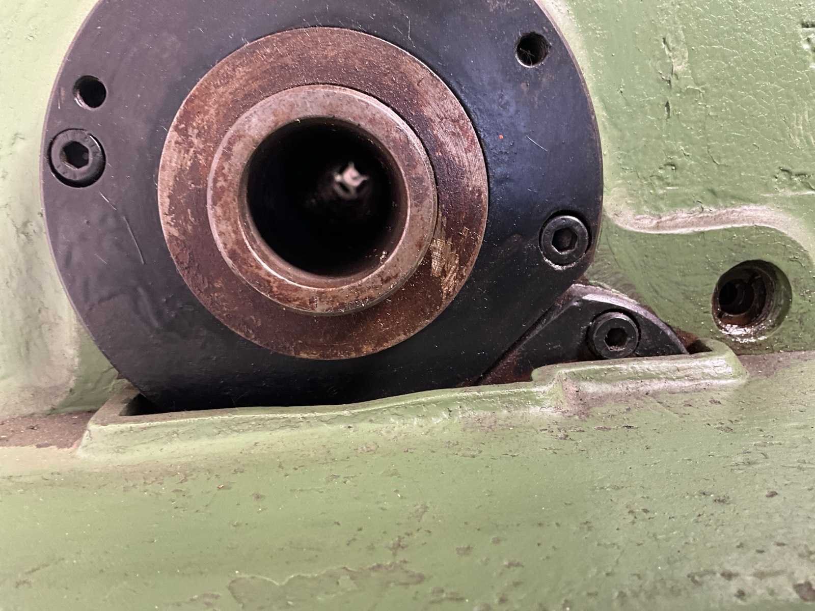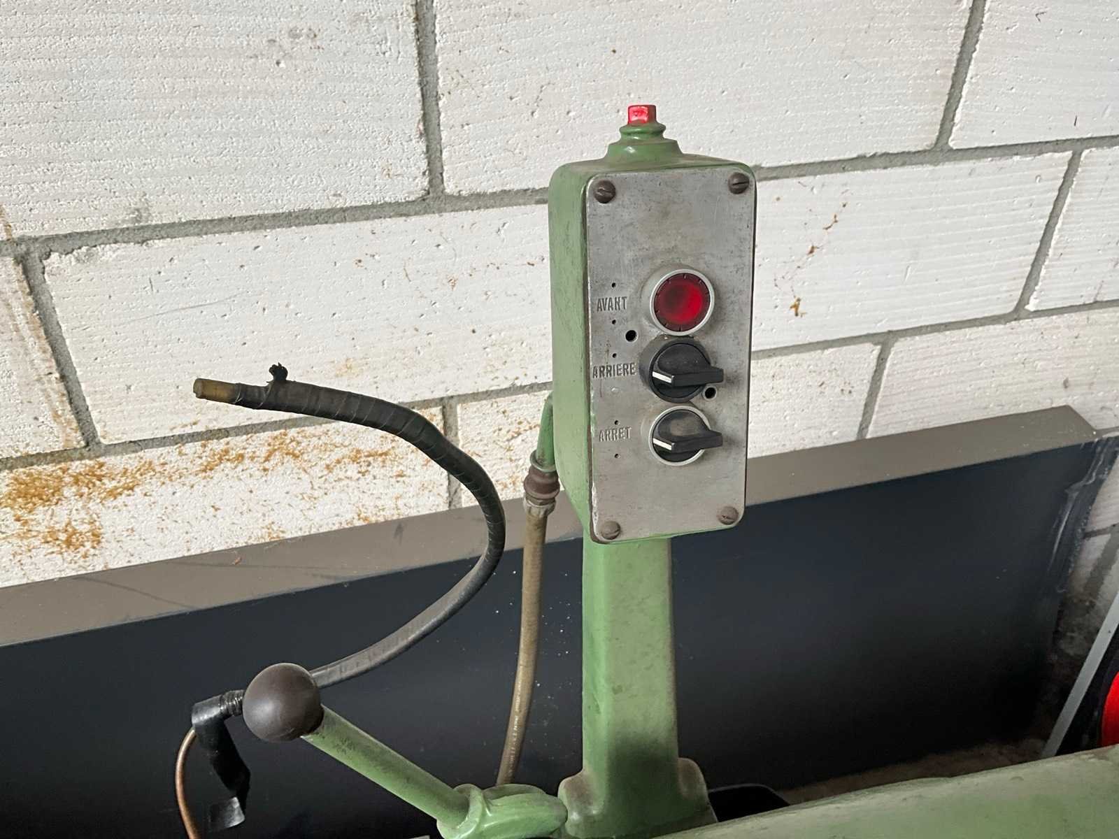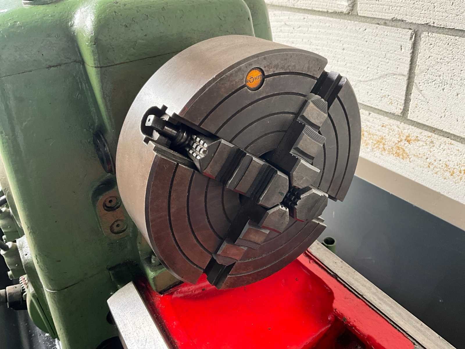 Klemklauwkop 250mm doorsnede, automatische schroefdraad snijder Merk: H. Ernault Batignolles Draailengte: 1000mm Holle spil Ø: 33mm Aantal snelheden: 18 Snelheid van n =: 32rpm Snelheid tot n =: 1600rpm Aantal gereedschapwisselstations: 1 Koelmiddelpomp: true Aansluiting: 400V Afmeting l: 750mm Afmeting b: 2500mm Afmeting h: 1350mm