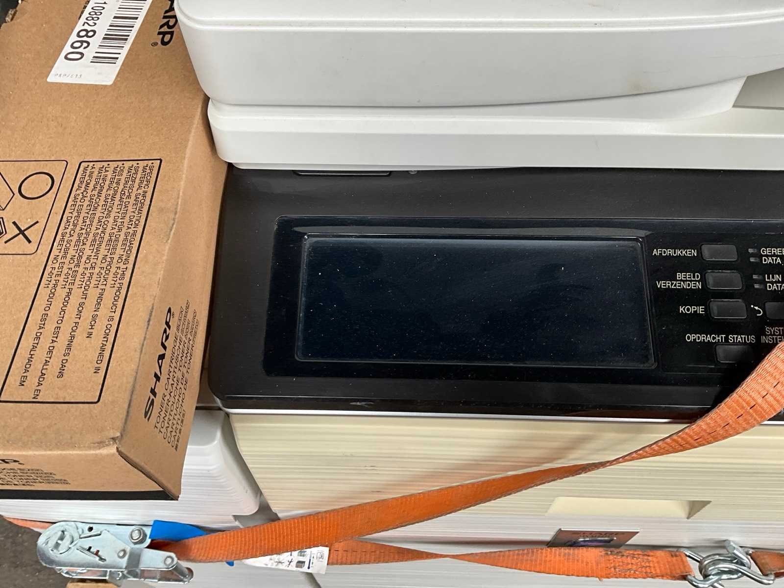 4x papier lade, 2x toner in doos, Sharp MX-FN10 saddle stitch finisher, Sharp MX-FXX2 facsimile expansion kit Merk: Sharp Model: MX-M363U Kleurenprinter: true Lengte: 70cm Breedte: 120cm Hoogte: 120cm Serienummer: 95023306 Met voedingskabel: true