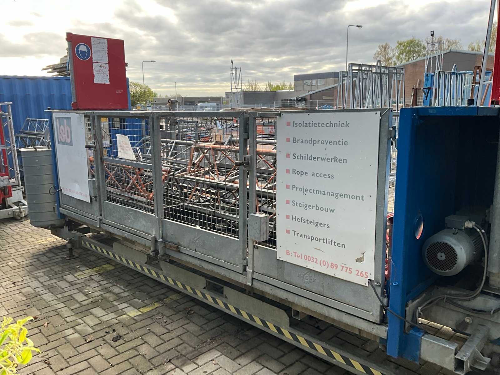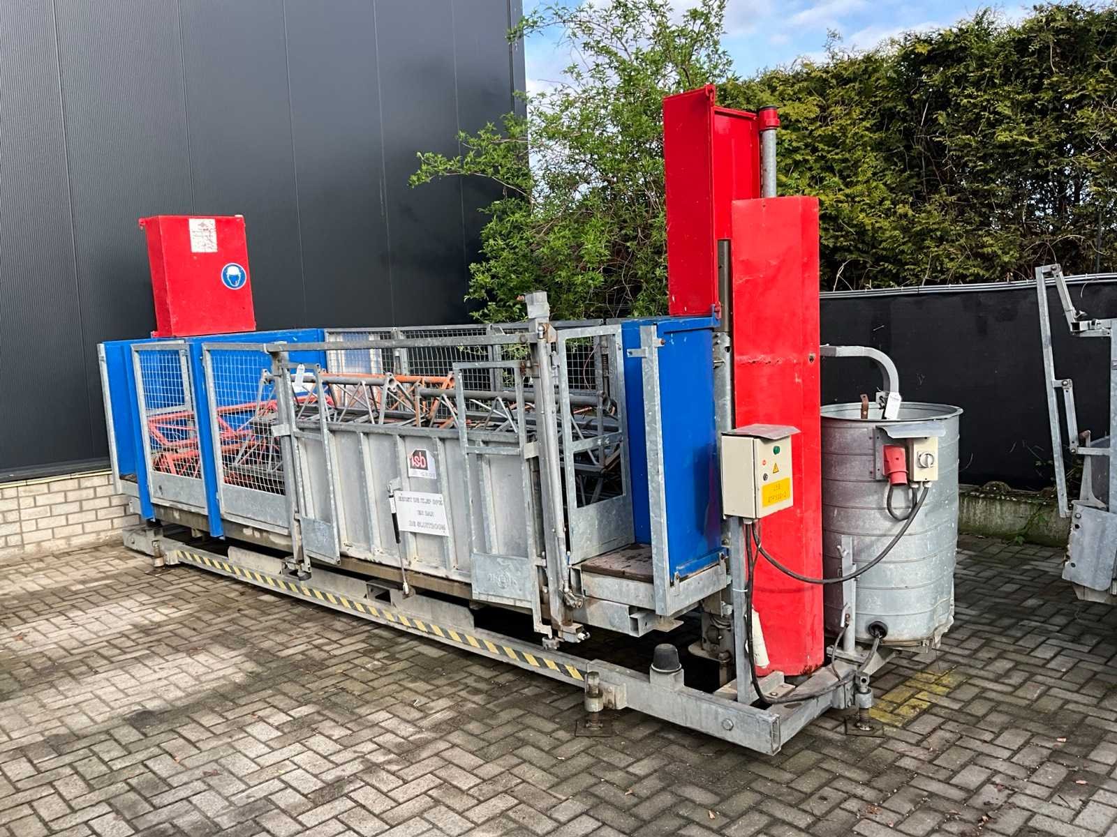 Afstand ongetuigde top 3m; hefsnelheid 12m/min; motorvermogen 2x 4,8 kw; dubbele mast; gegalvaniseerd staal; woking condition; Merk: HEK Type: GTP 1500 Bouwjaar: 1999 Serienummer: 9908038 Max. belasting: 1500kg Hefhoogte: 12m Plateau afm. l: 4000mm Plateau afm. b: 1500mm Aantal mastdelen: 12 Aansluiting: 400V Motorvermogen (kW): 4.8kW
